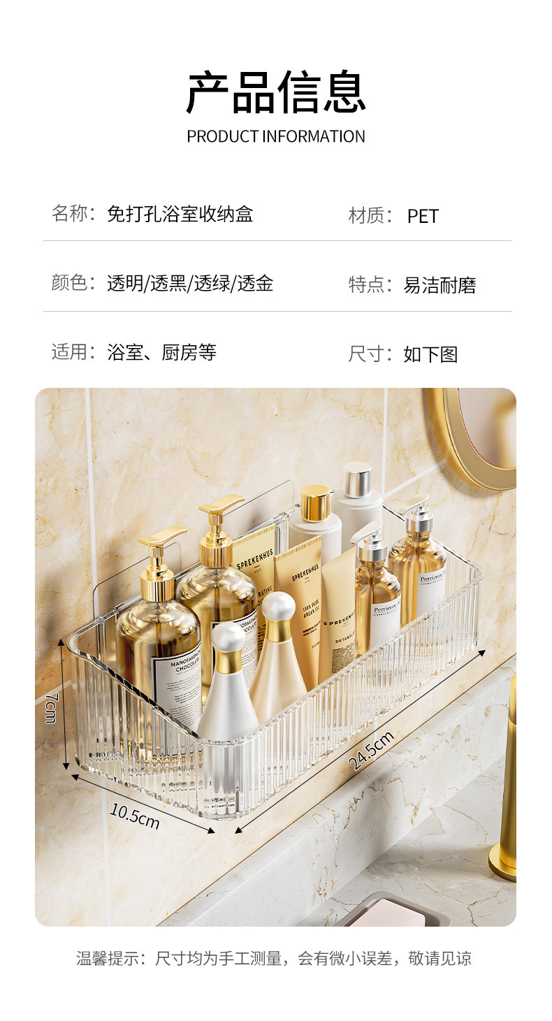 超值俩件【防水防潮❗️免打孔】卫生间收纳盒子壁挂免打孔日用餐厨托盘洗漱台收纳轻奢浴室置物架。ja