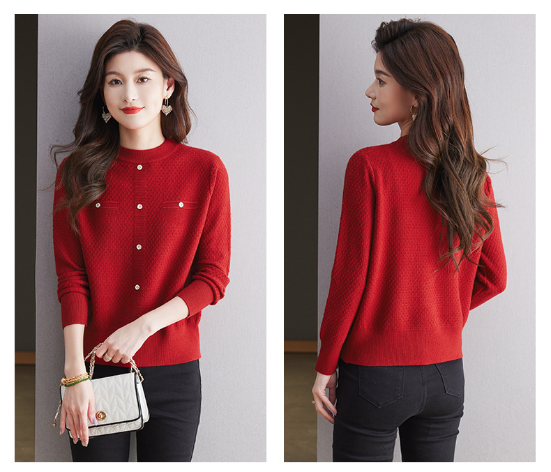 CC-27-24192小香风半高领毛衣女秋冬季2024新款好看洋气短款内搭针织打底衫厚