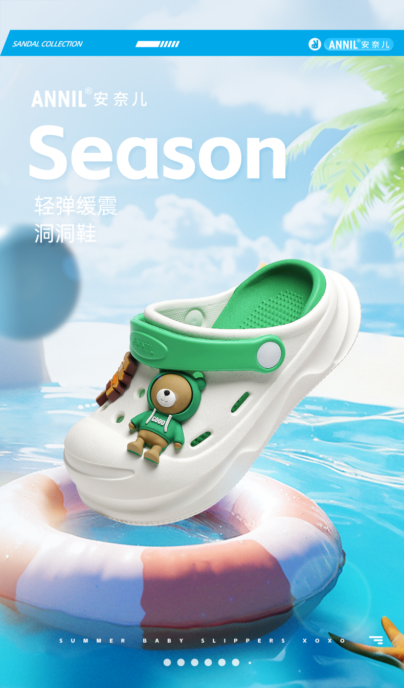 ANNIL/安奈儿夏季男女童休闲防滑洞洞鞋包头平底软底卡通凉鞋2025夏款HM5207334