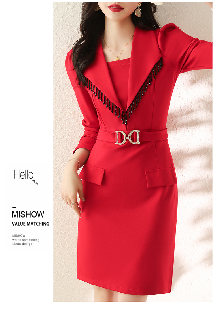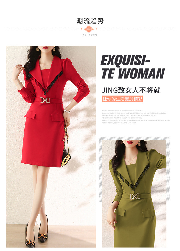 长袖连衣裙春装新款,收腰显瘦气质时尚大方简约个性包臀裙HR-WH25689