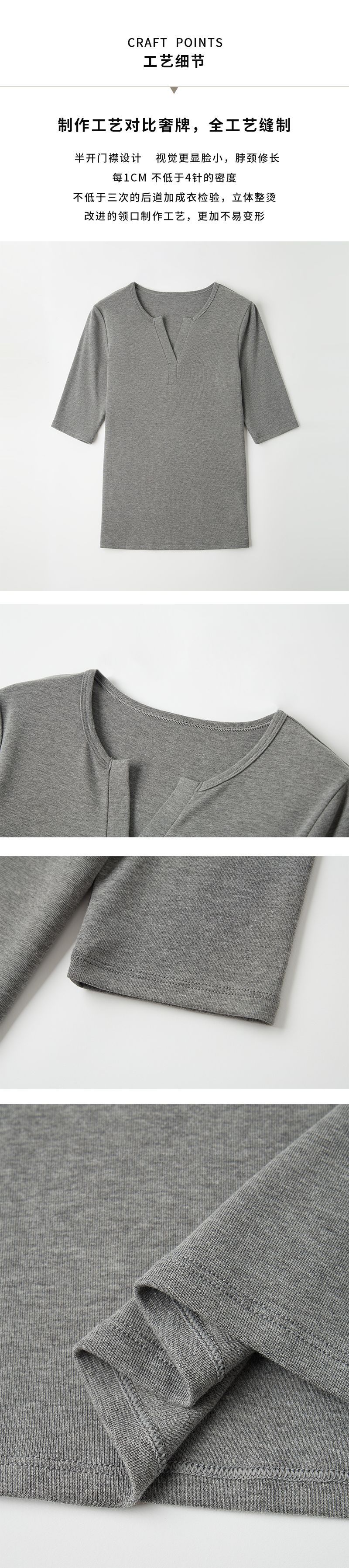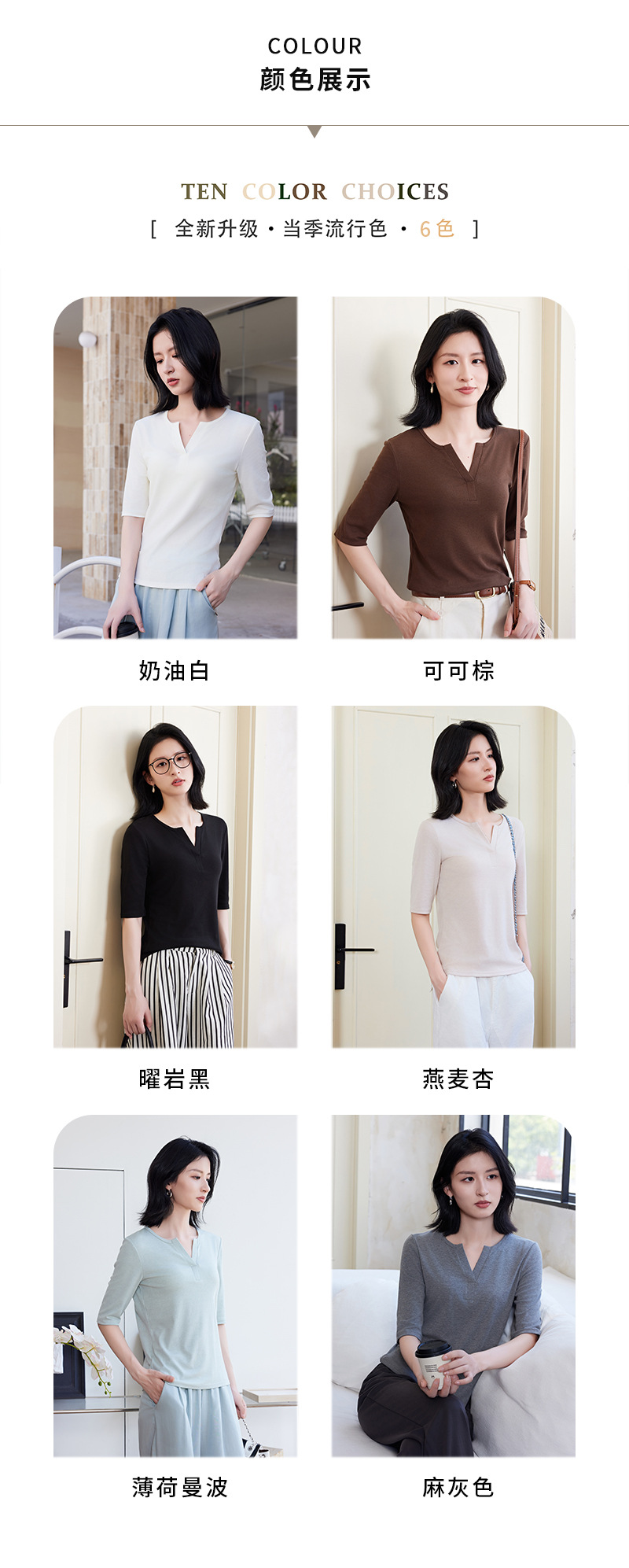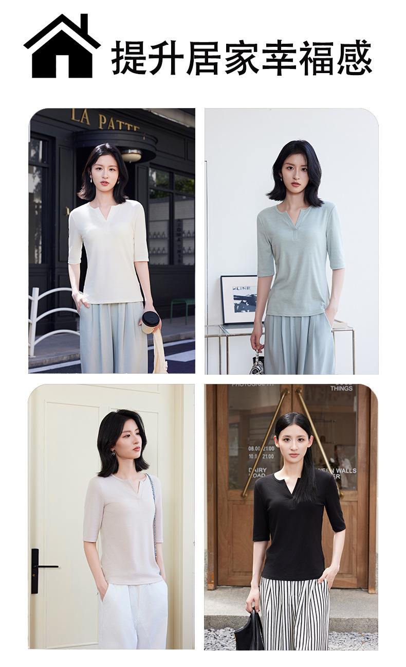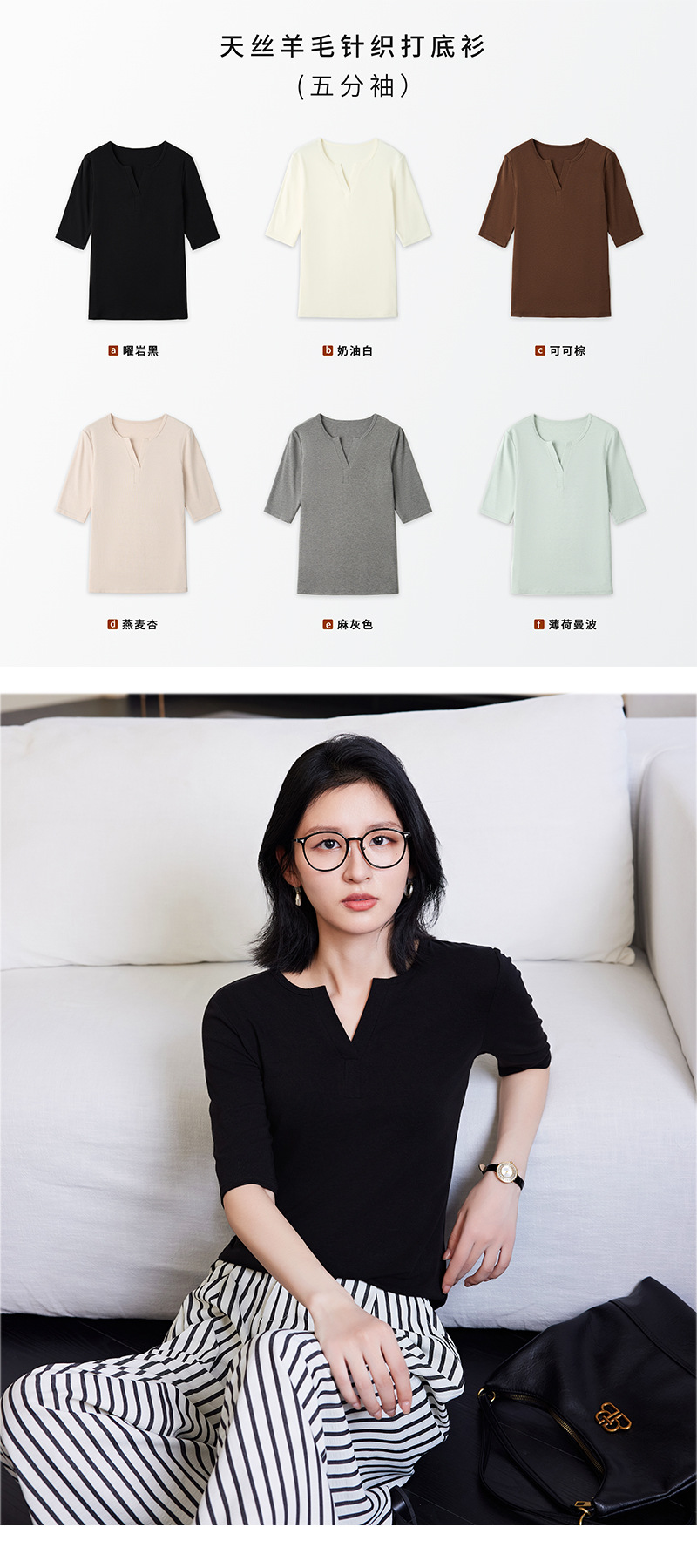 百媚生 天丝羊毛棉半开门襟五分袖袖针织衫19785133