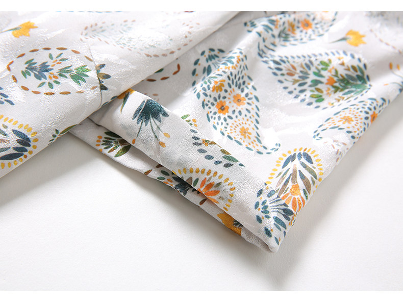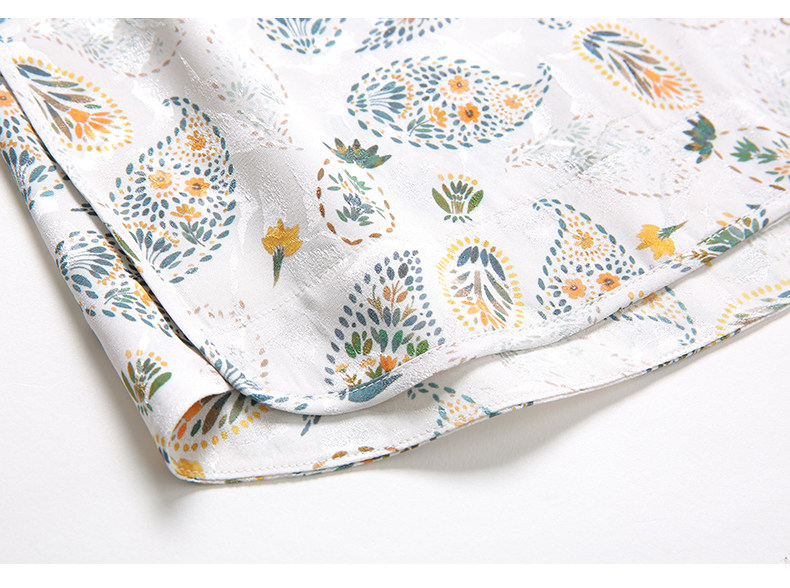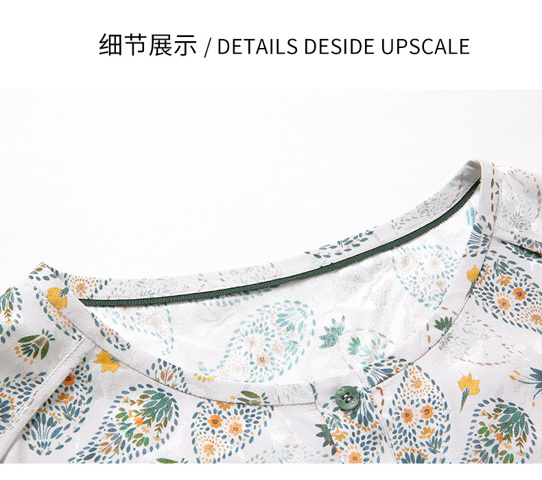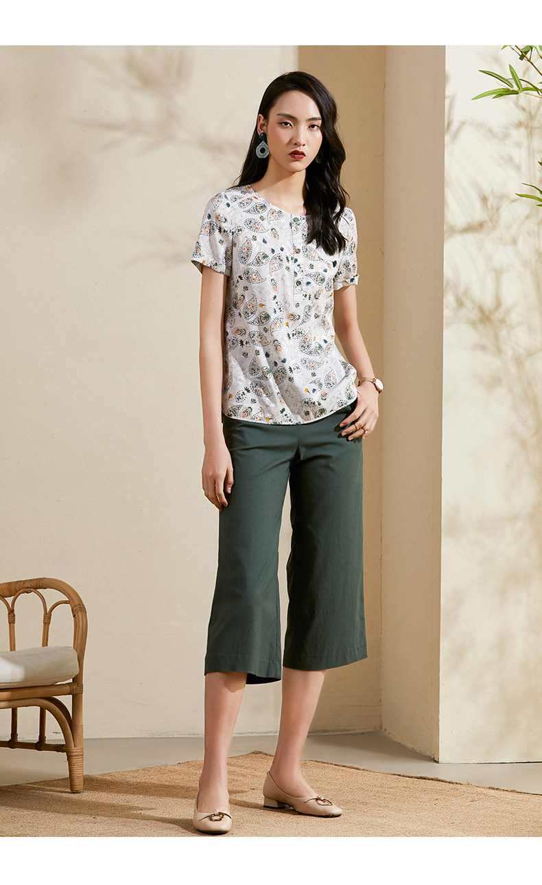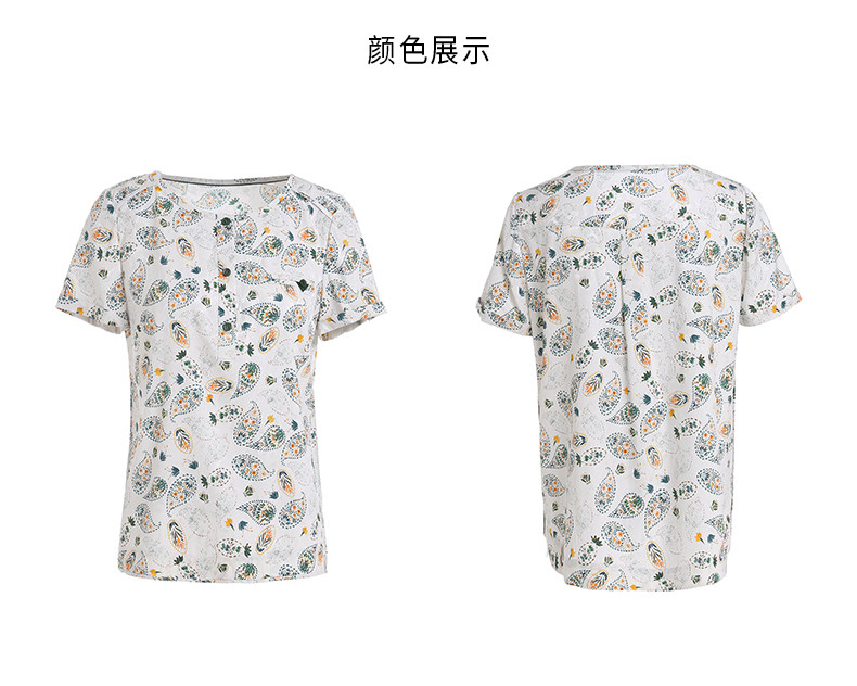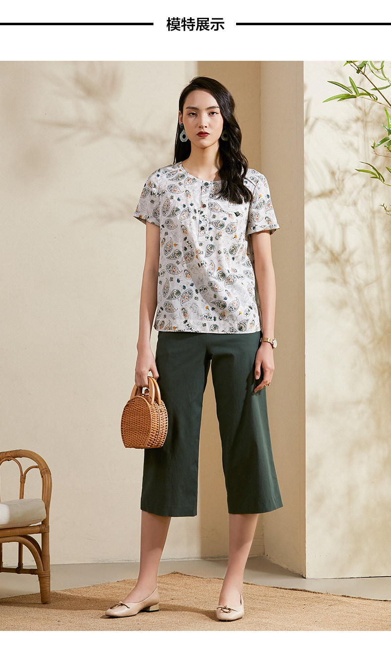 乔万尼桑蚕丝上衣女夏新款印花圆领短袖真丝衬衫宽松显瘦洋气衬衣ES2C133
