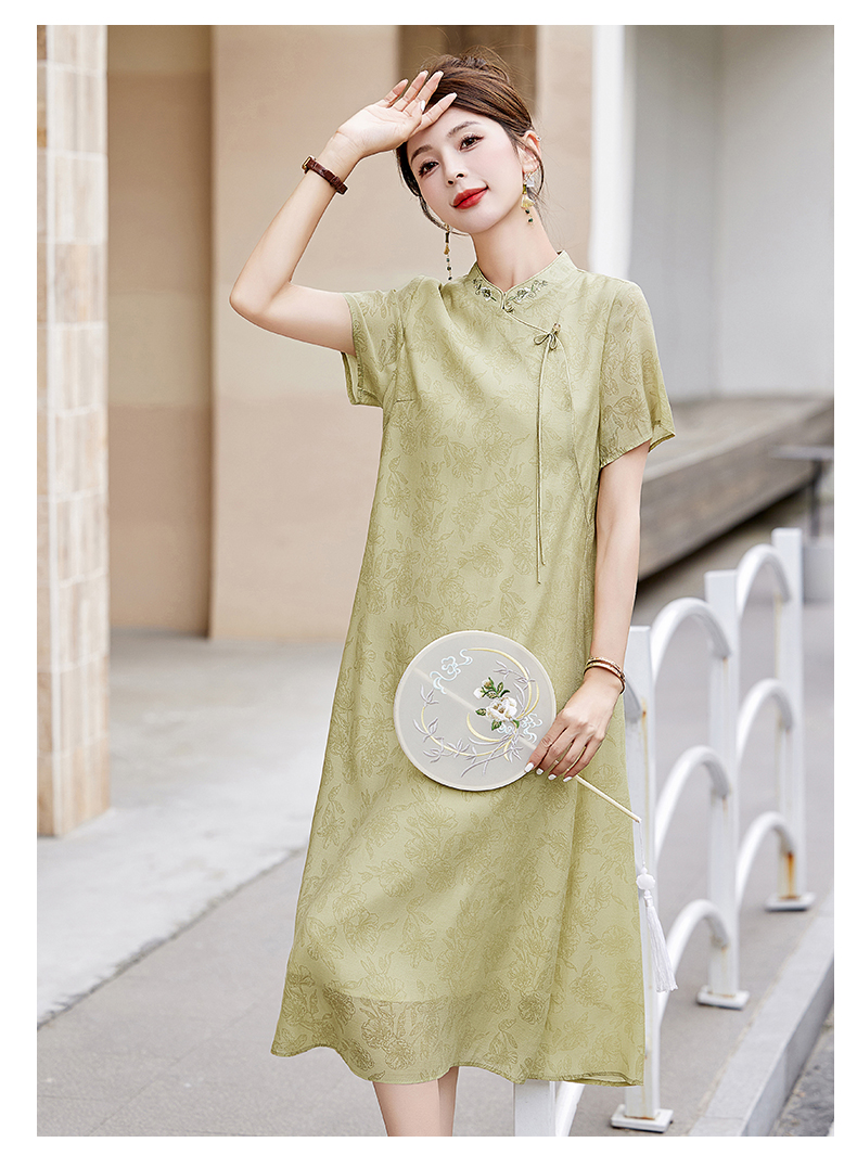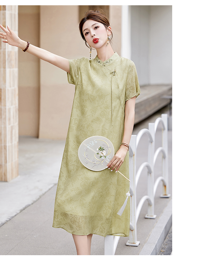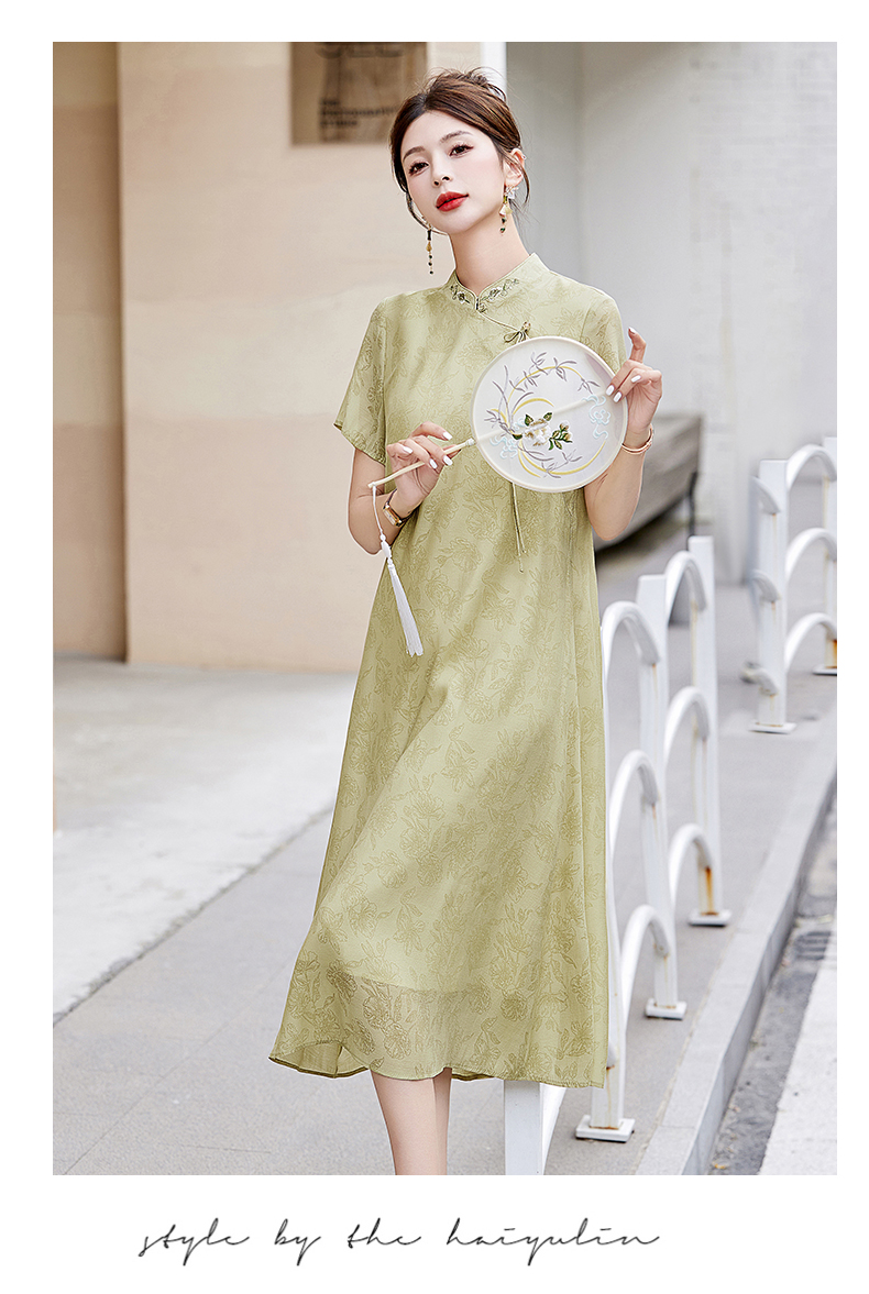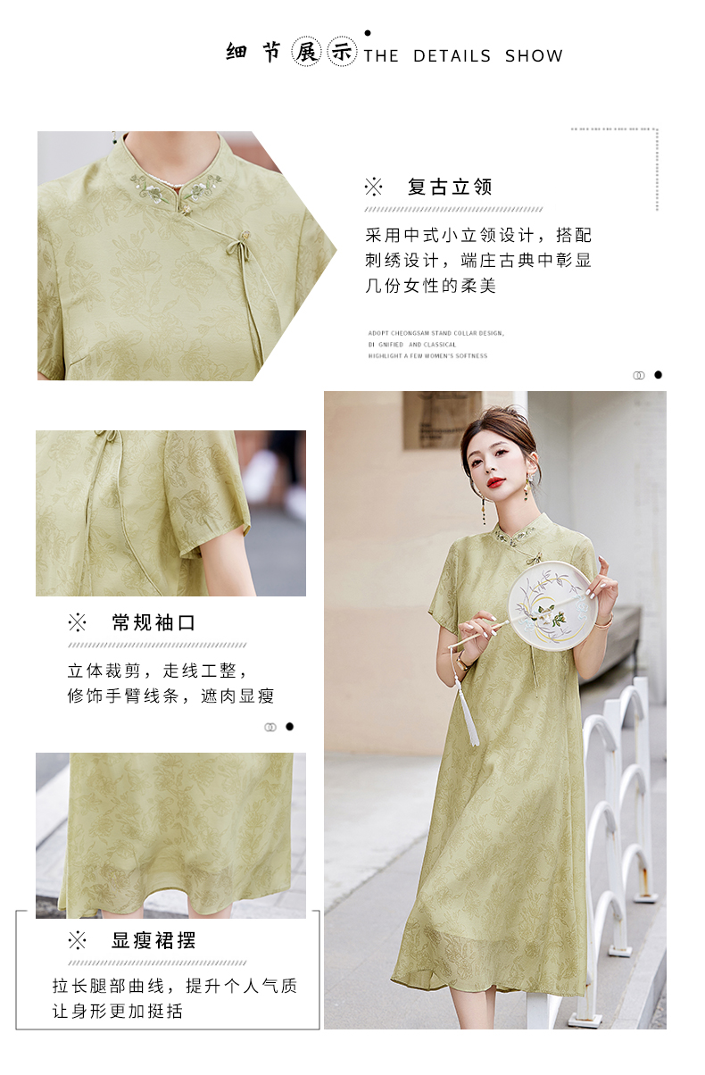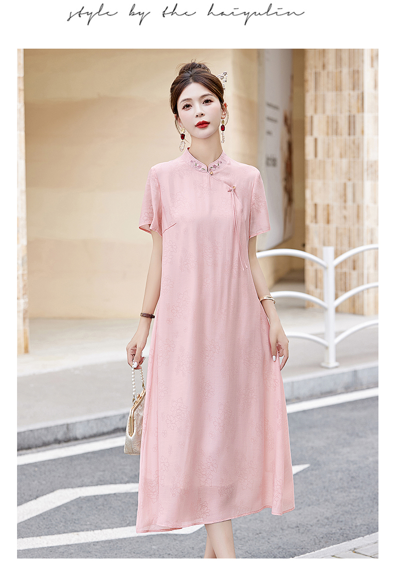 气质时尚新中式风简约,大方刺绣立领印花连衣裙HR-NYMYZ1005-1