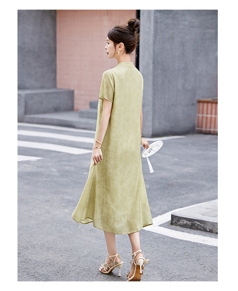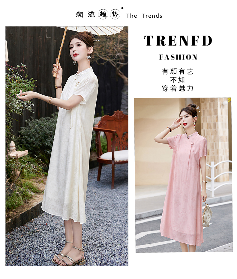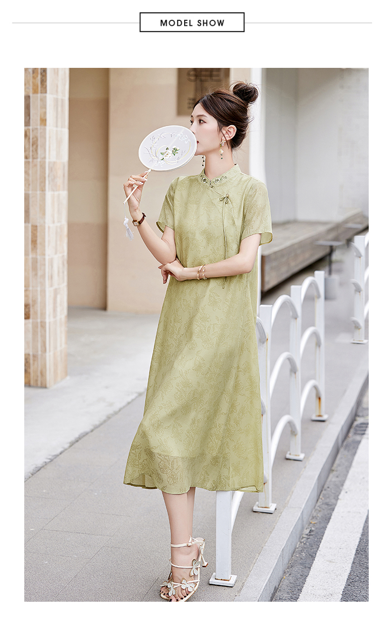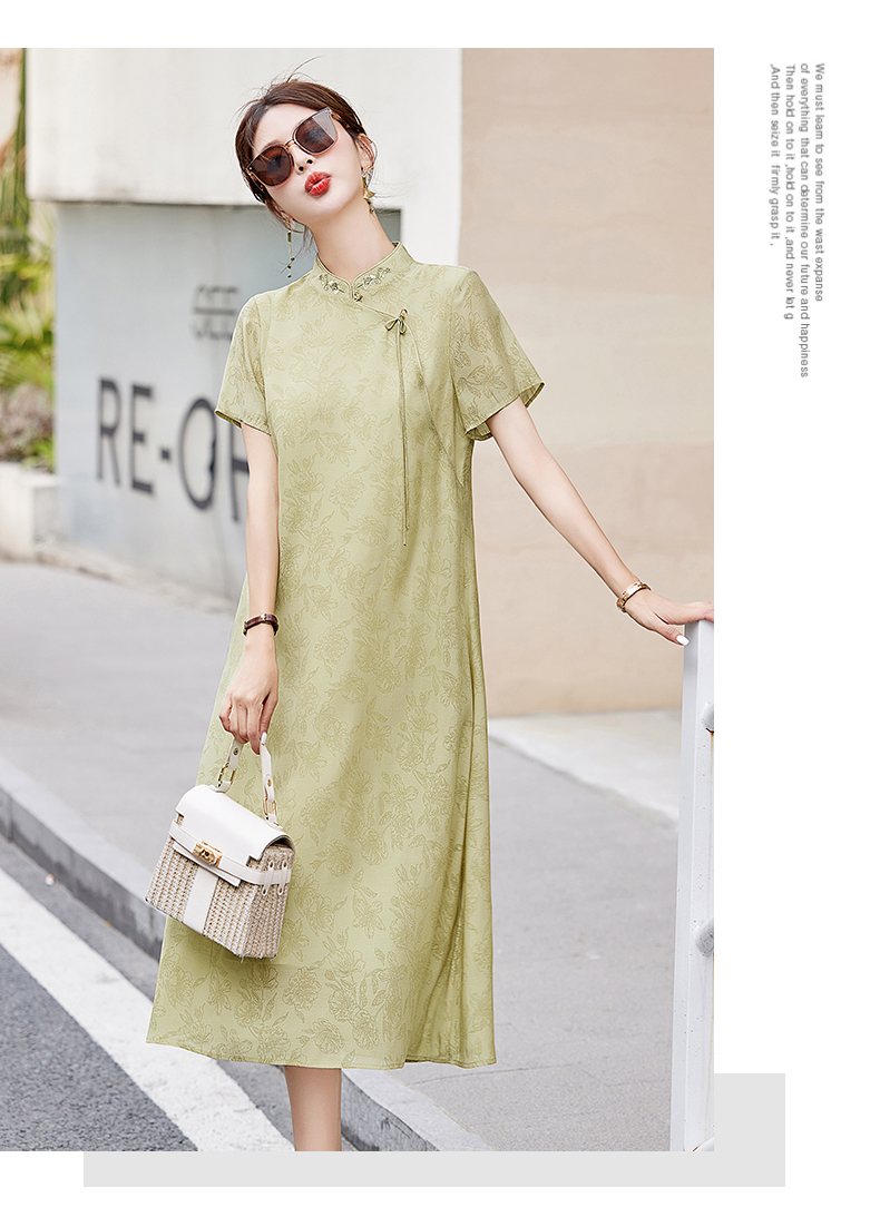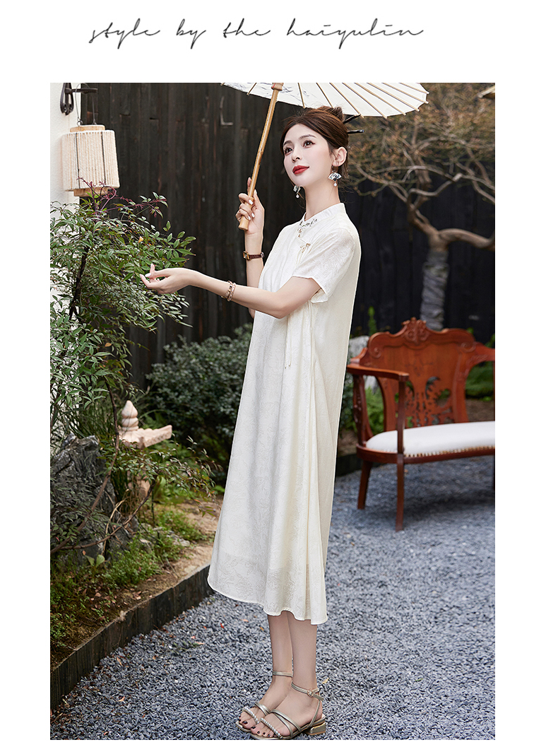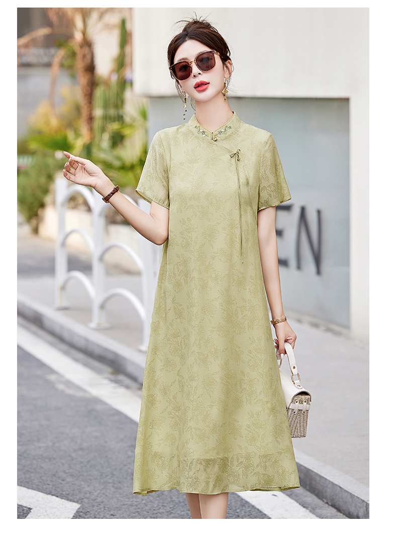 气质时尚新中式风简约,大方刺绣立领印花连衣裙HR-NYMYZ1005-1