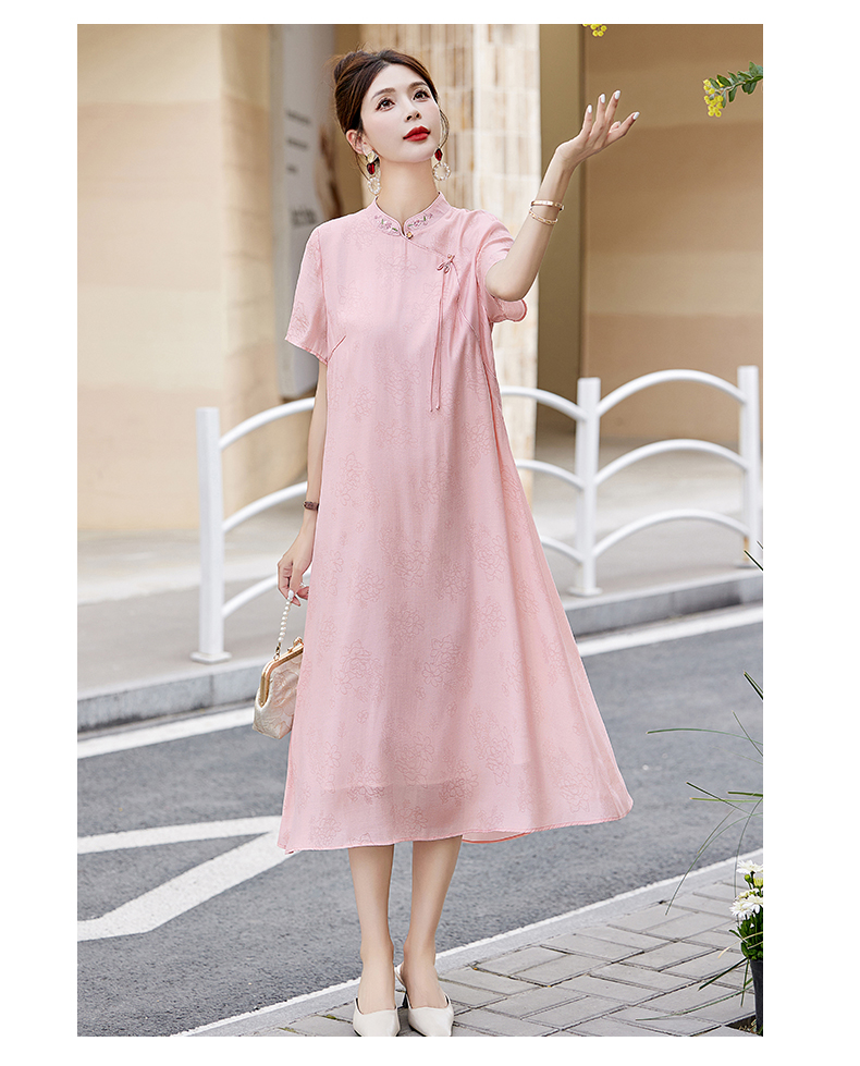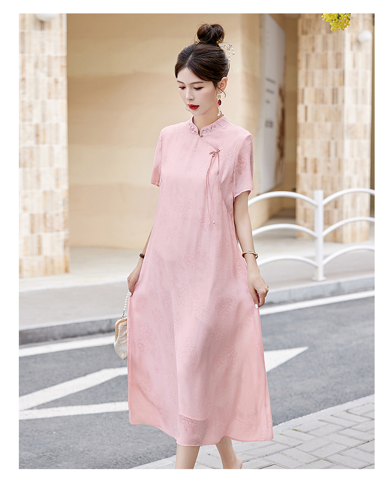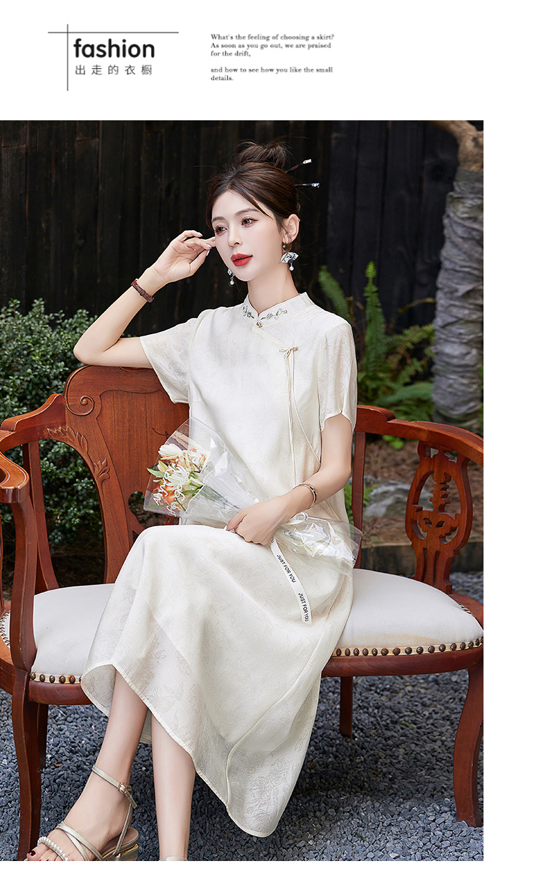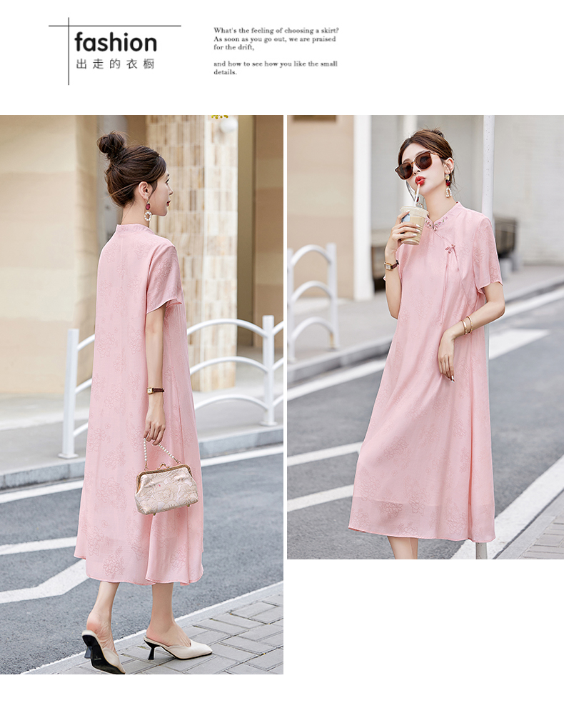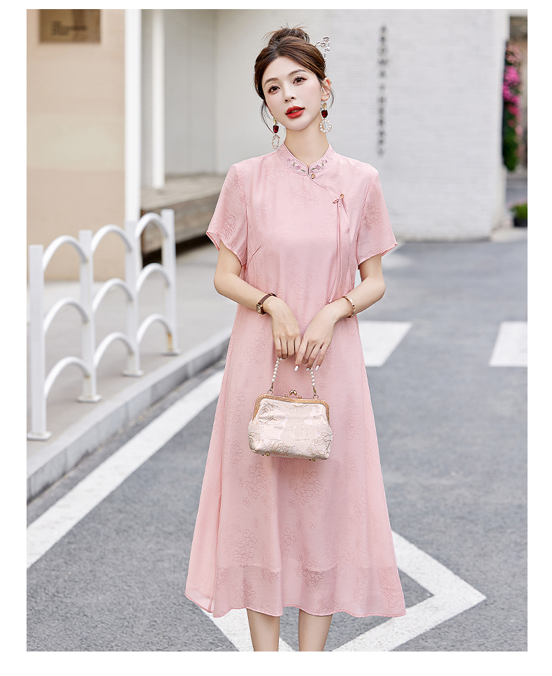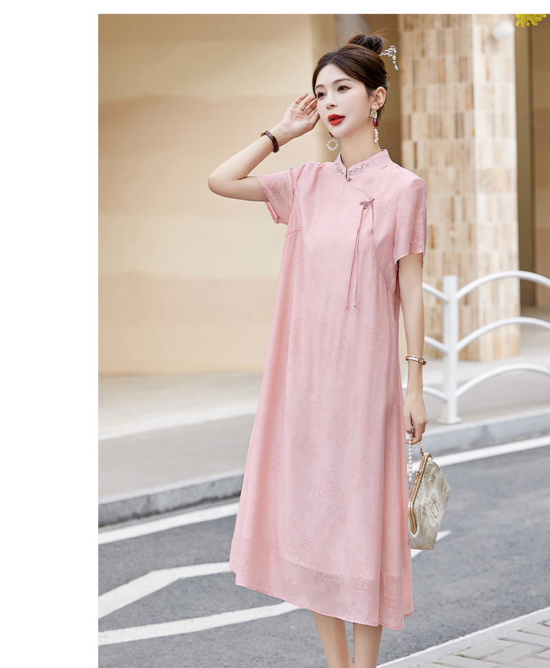 气质时尚新中式风简约,大方刺绣立领印花连衣裙HR-NYMYZ1005-1