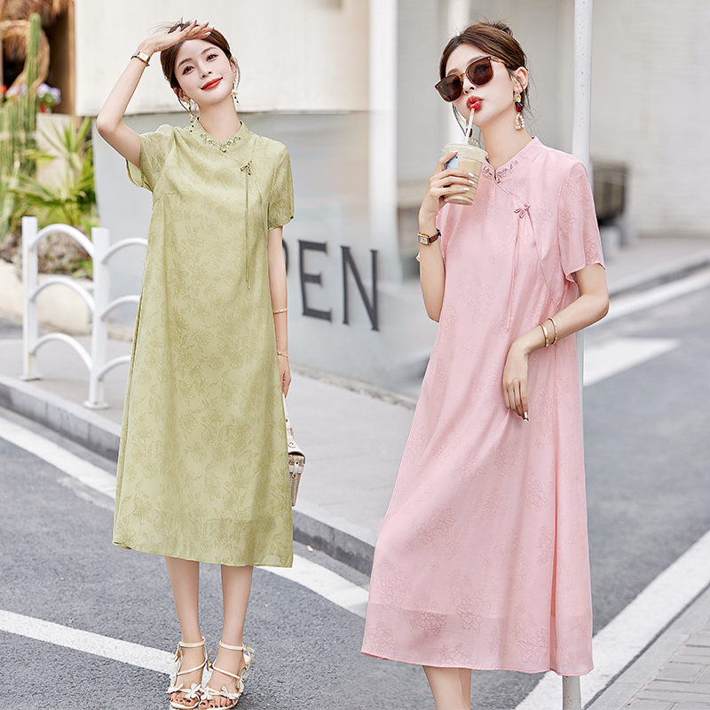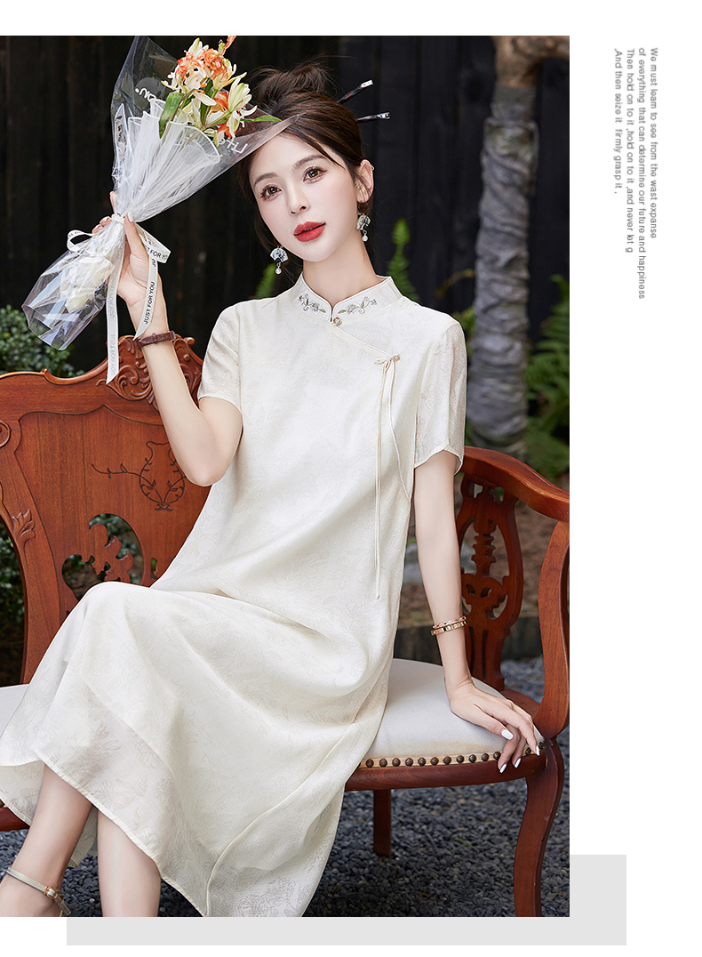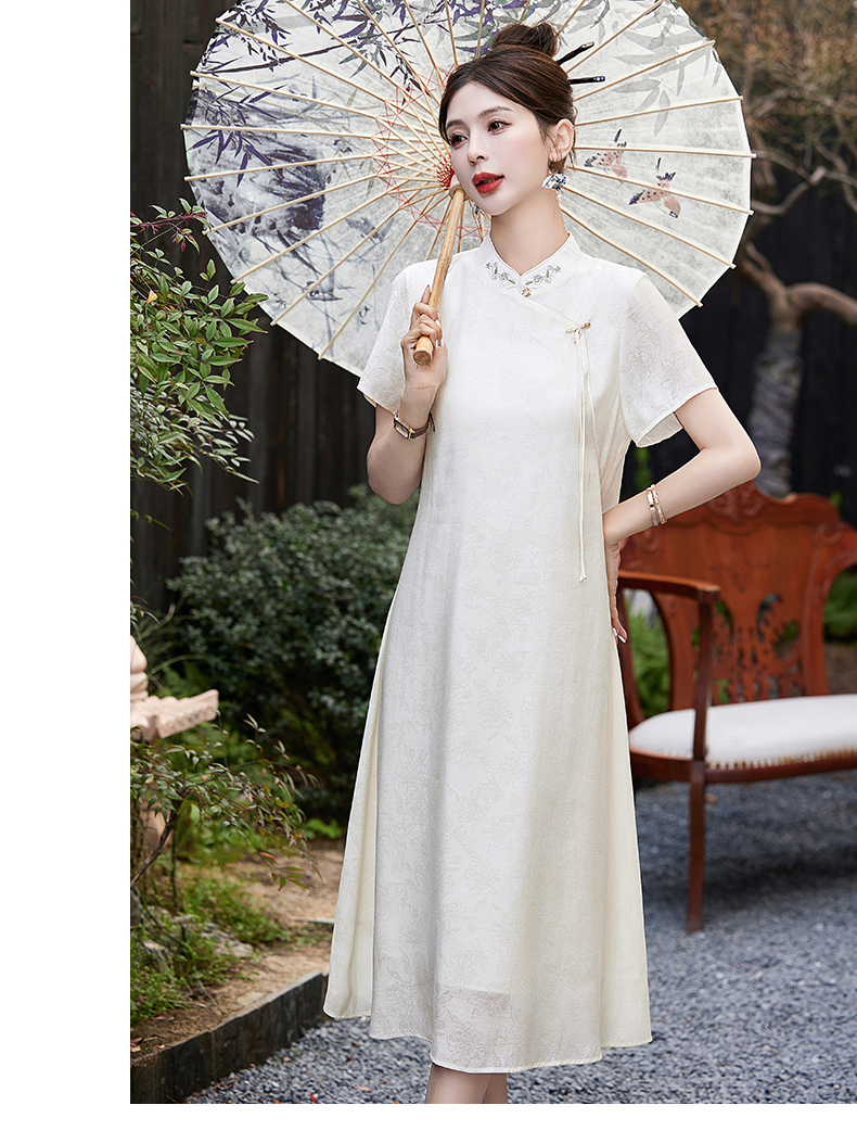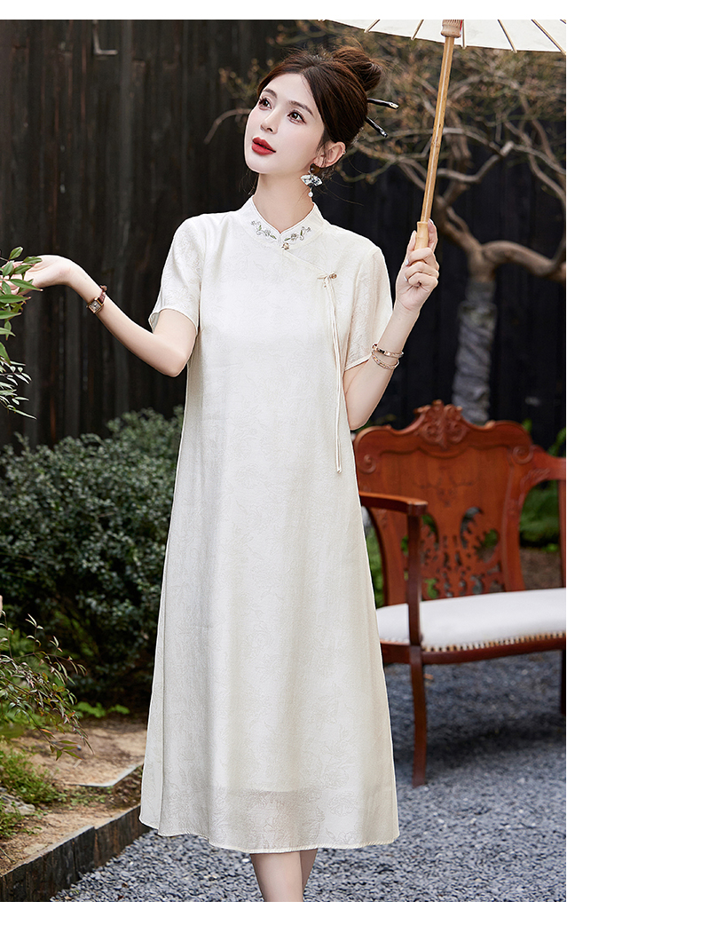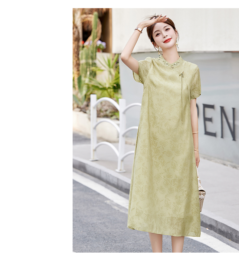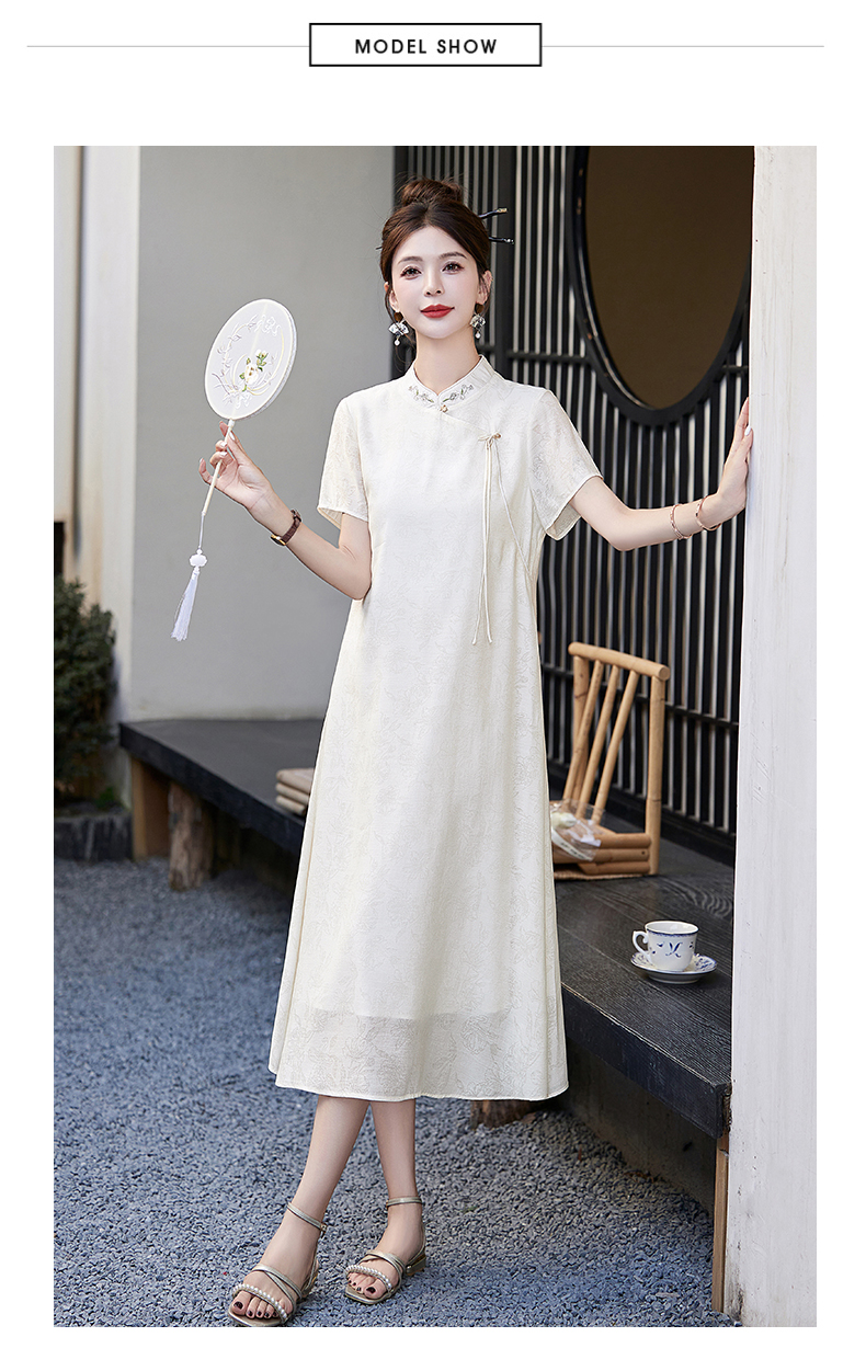 气质时尚新中式风简约,大方刺绣立领印花连衣裙HR-NYMYZ1005-1