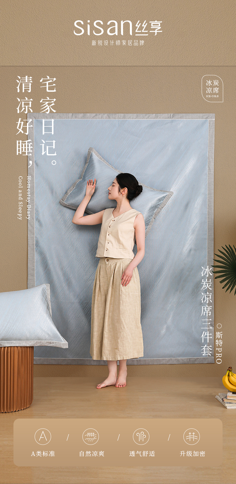丝享Air-Cold冰炭凉斯特PRO夏季凉席冰席枕头套三件套