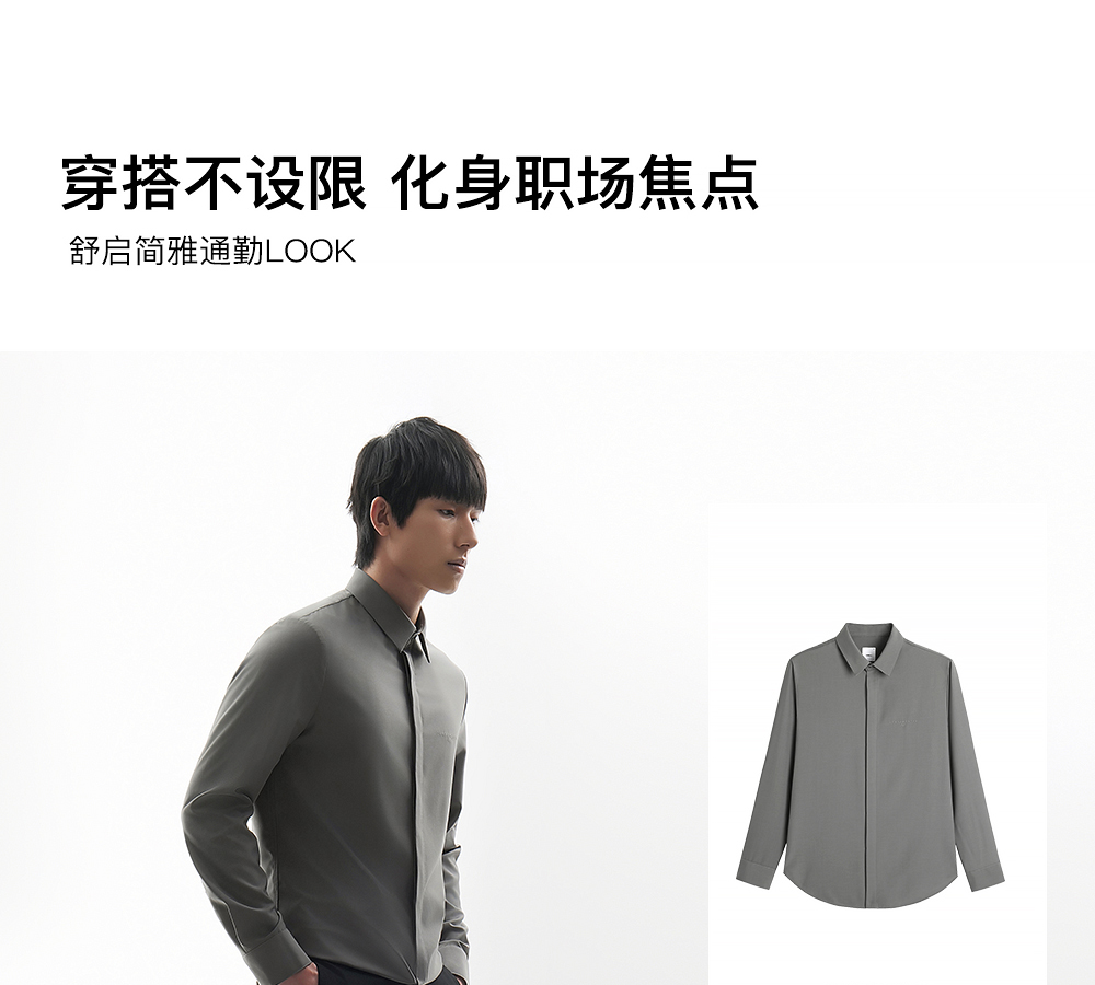 HIM漢崇 高级感职场商务正装男士舒适简约斯文长袖衬衫 2026春季