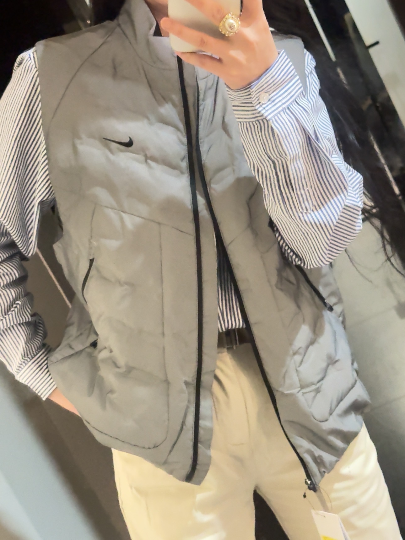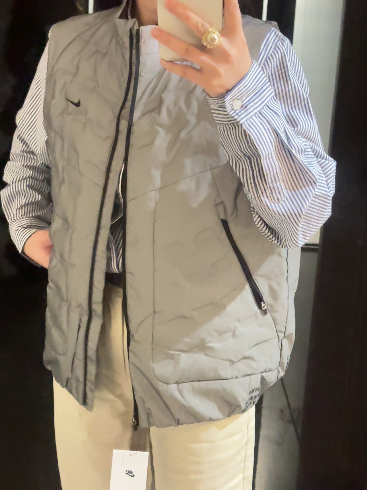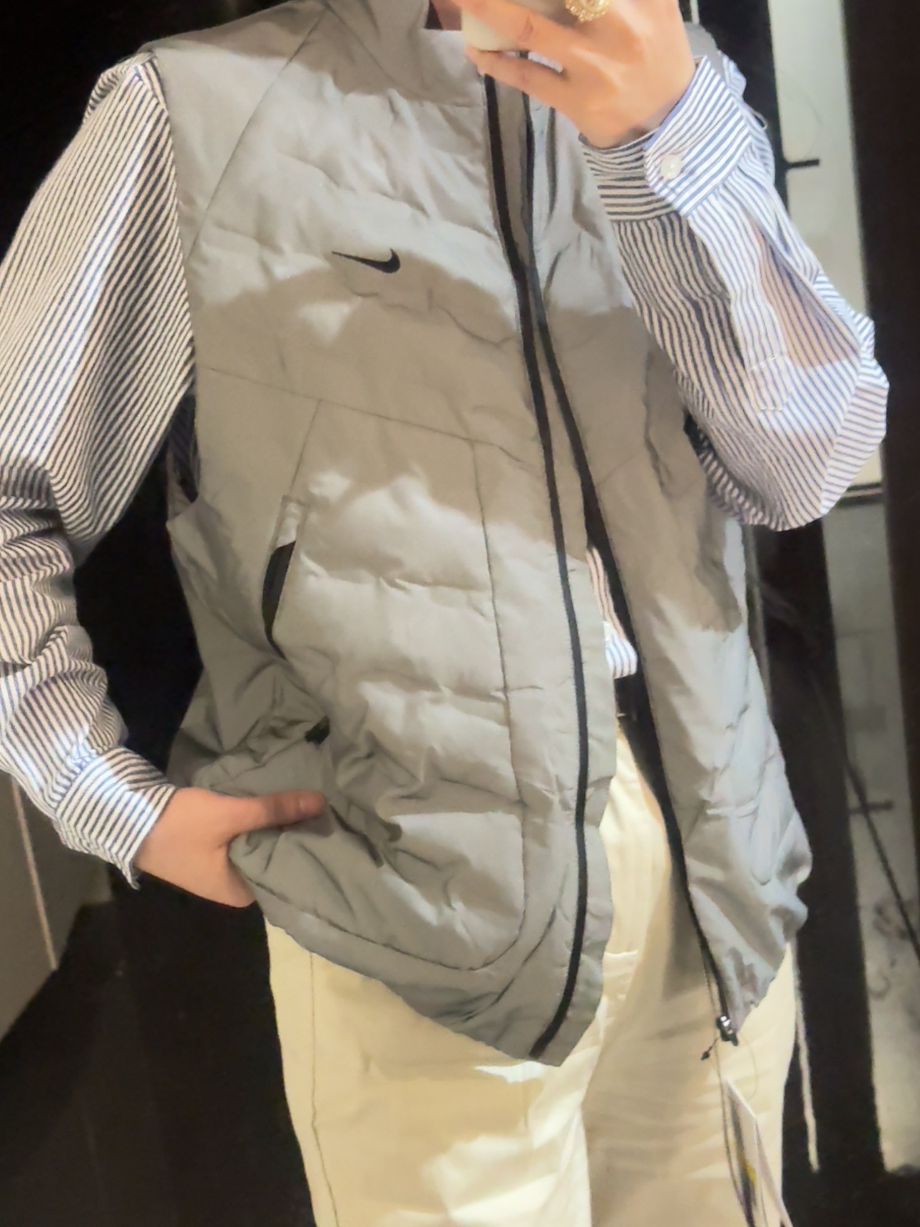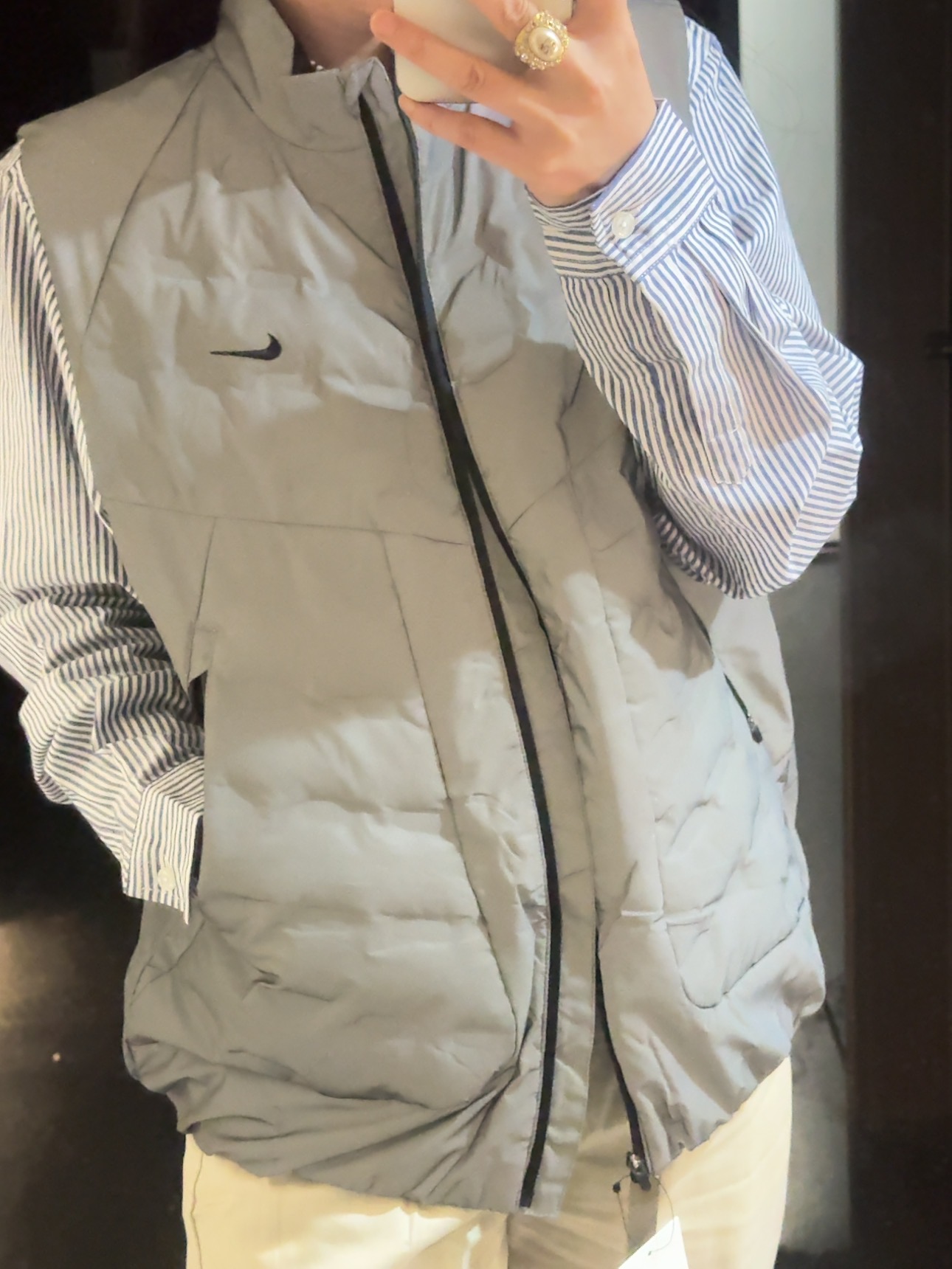 ‼️ ‼️得物1500‼️ ‼️Ni&K THERMA-FIT ADV Running Division 休闲运动舒适保暖户外无袖马甲 男款 反射银。这是一件耐家(N&K)男女同款 棉马甲 采用立领无袖设计,搭配黑色拉链和两侧ykk拉链口袋,左胸位置有耐家标志性的黑色Swoosh Logo,彰显品牌身份。