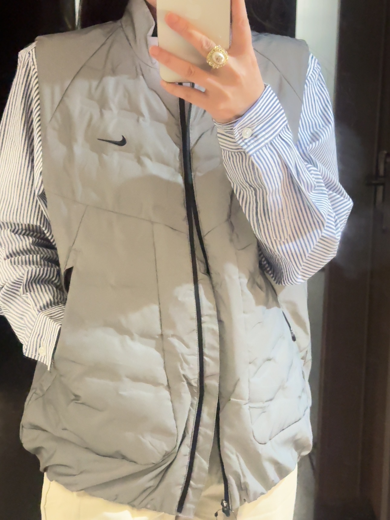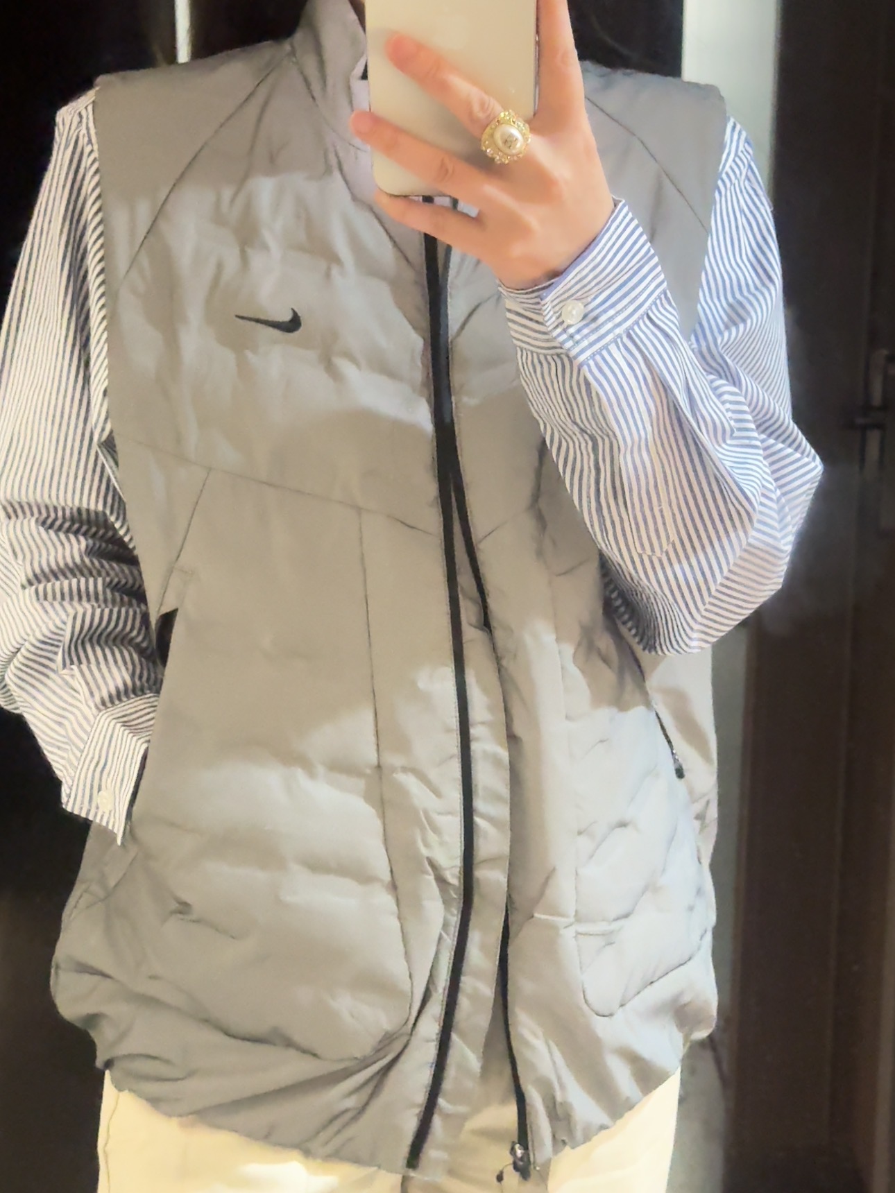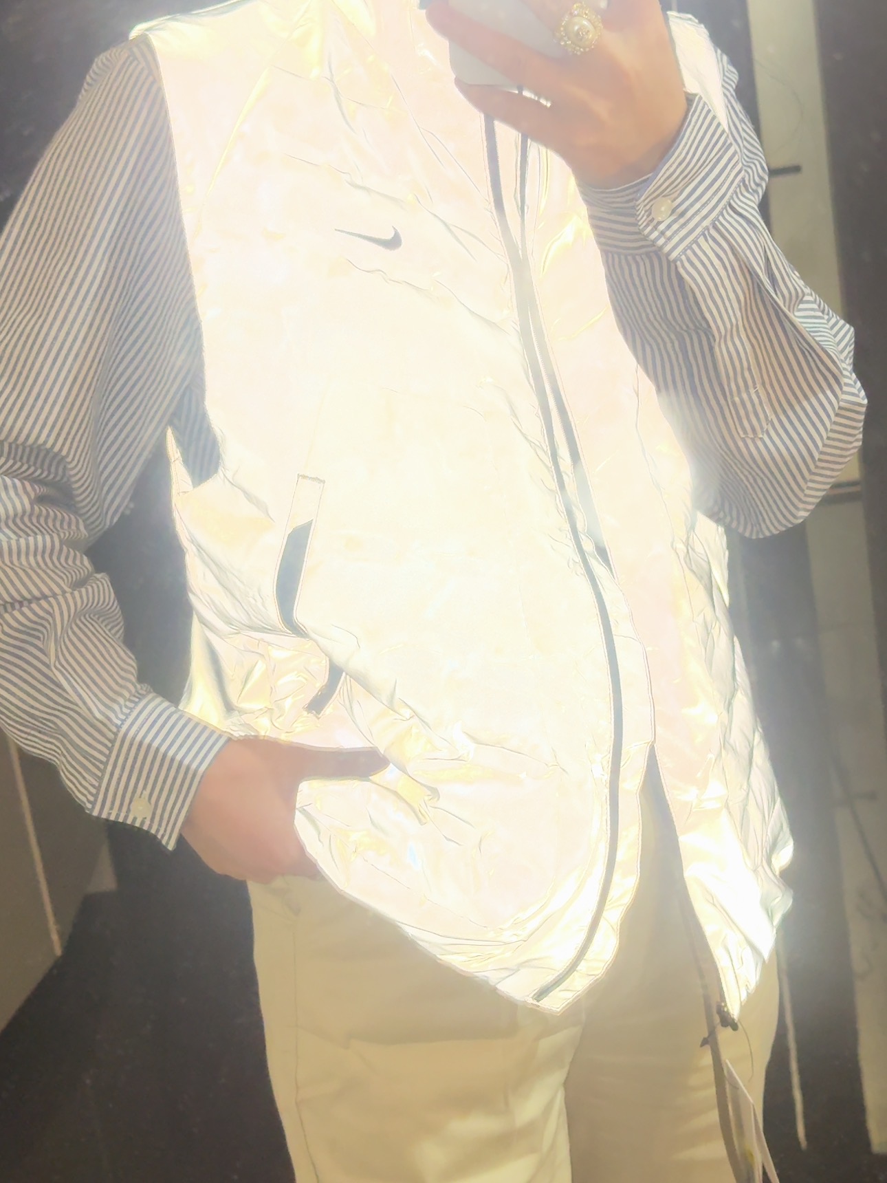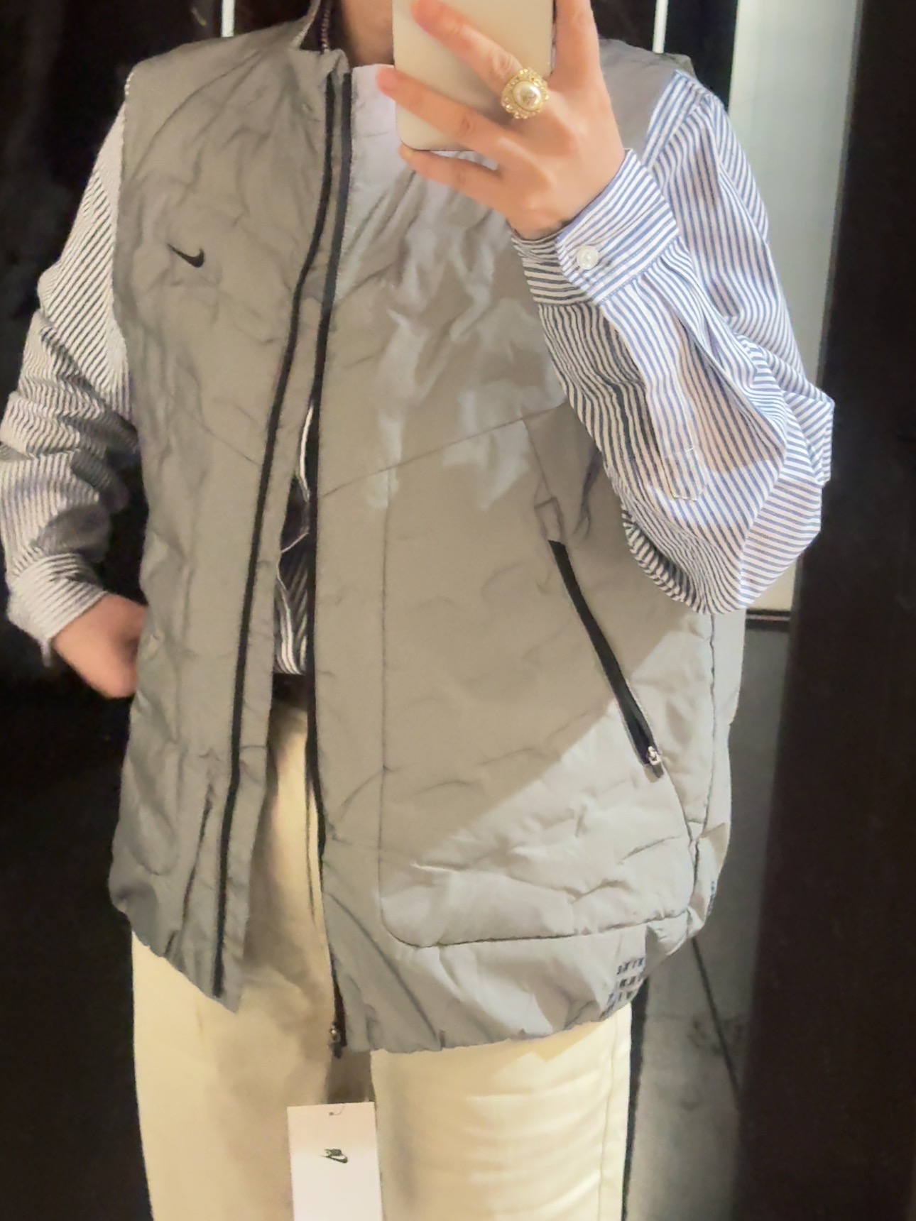 ‼️ ‼️得物1500‼️ ‼️Ni&K THERMA-FIT ADV Running Division 休闲运动舒适保暖户外无袖马甲 男款 反射银。这是一件耐家(N&K)男女同款 棉马甲 采用立领无袖设计,搭配黑色拉链和两侧ykk拉链口袋,左胸位置有耐家标志性的黑色Swoosh Logo,彰显品牌身份。