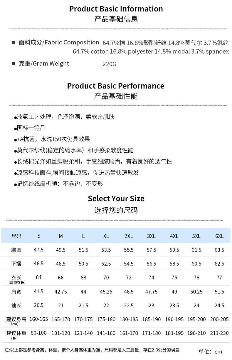 面料:64.7%棉 16.8%聚酯纤维 14.8%莫代尔 3.7%氨纶