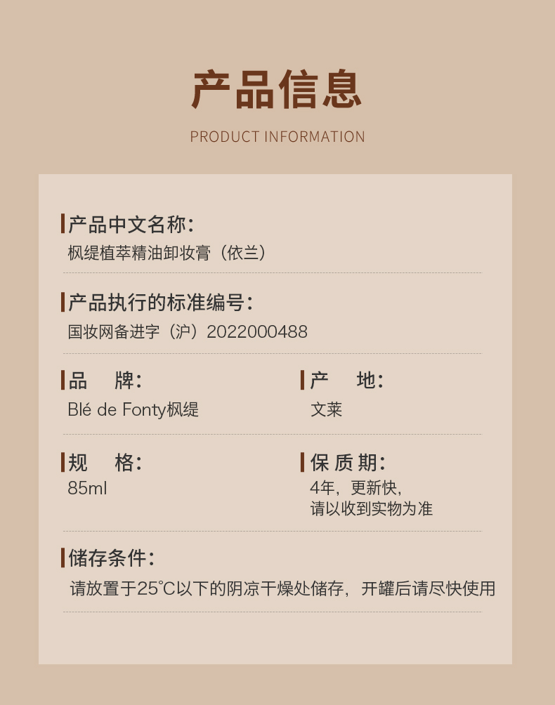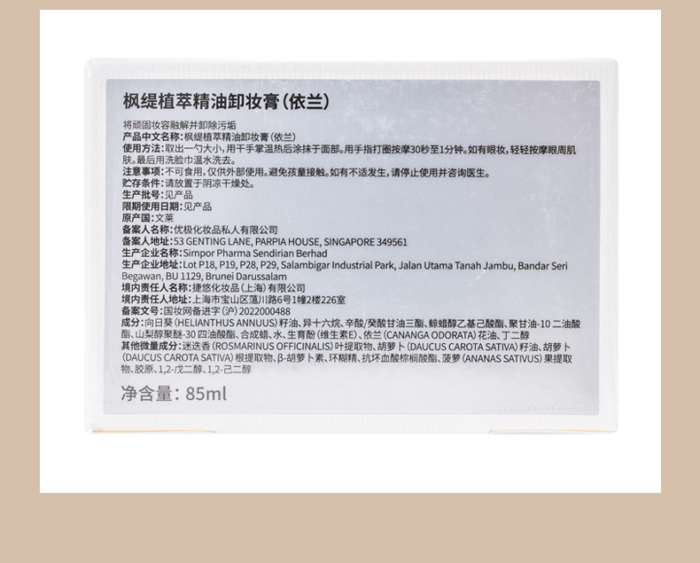 【品牌直发】枫缇植萃精油卸妆膏(依兰)85ml