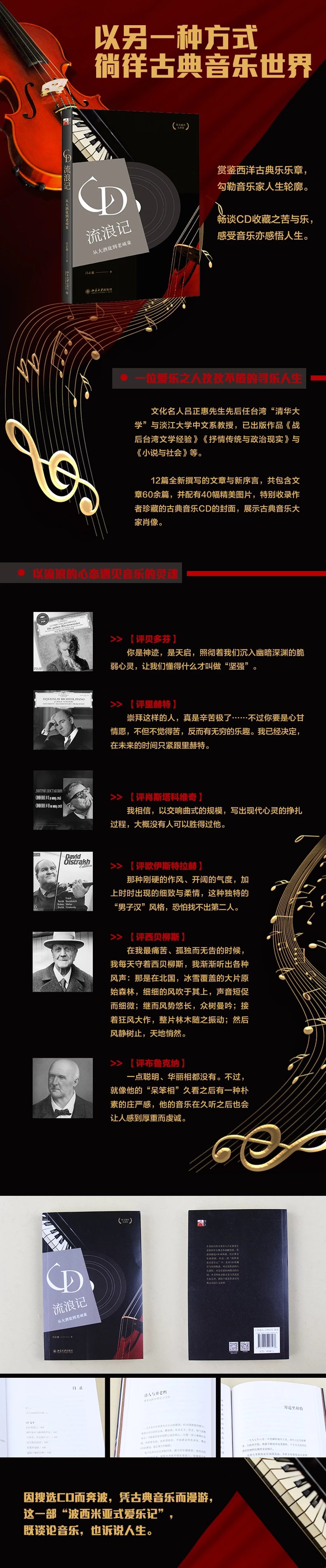 本书共收录了60余篇文章,并配有40幅精美图片,包括作者所收集的古典音乐CD的封面、西洋音乐家肖像等,以求完整地展现出一位爱乐之人孜孜不倦的寻乐人生。
