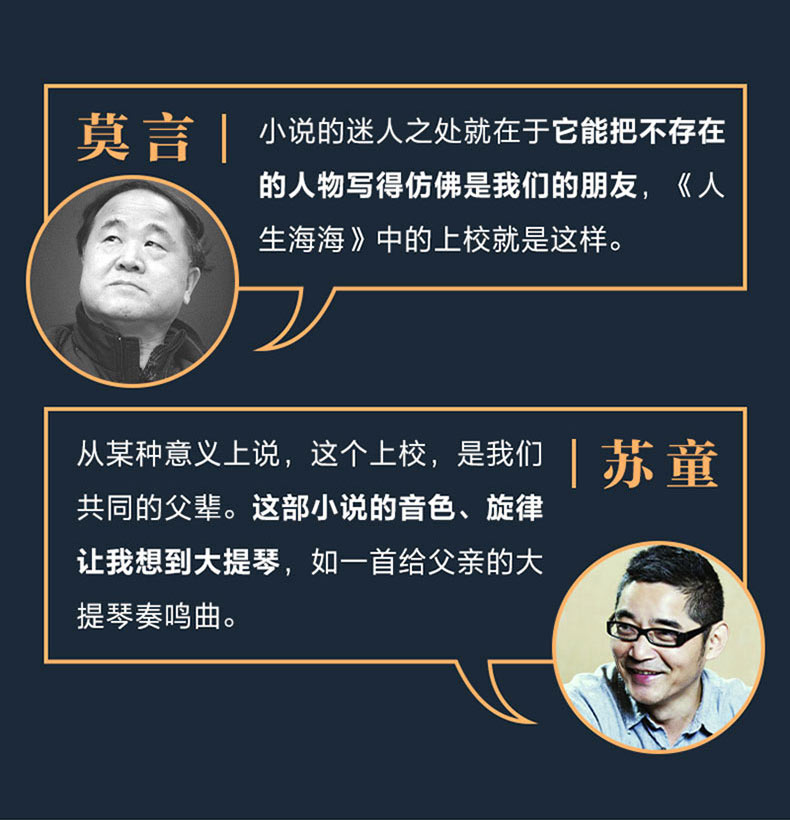 --【莫言】“小说的迷人之处就在于它能把不存在的人物写得仿佛是我们的朋友,《人生海海》中的上校就是这样。”