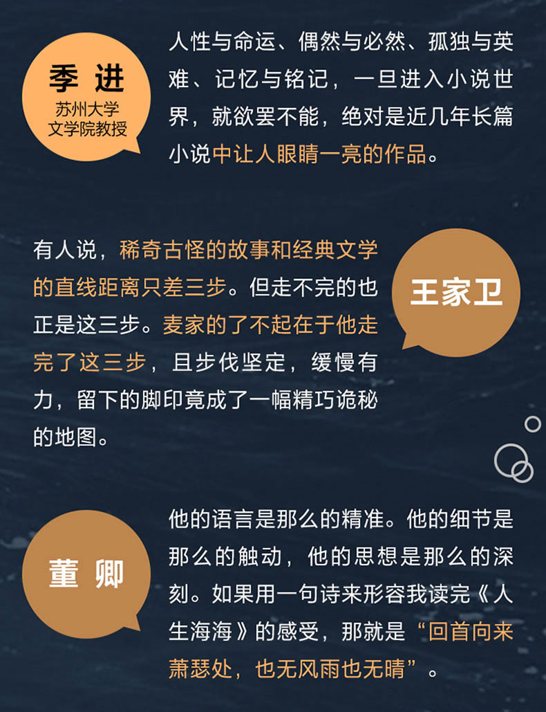 · 郭冰茹(中山大学中文系教授)评《人生海海》:“英雄也好,凡人也罢,每个人的内心都是一部密码,解或不解,都是传奇。”