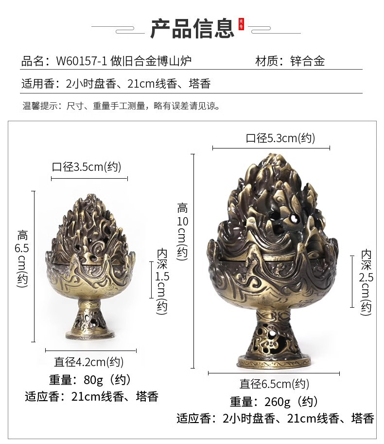 【博山炉合金香炉】 倒流香塔香无粘粉祥云国风家用室内香薰