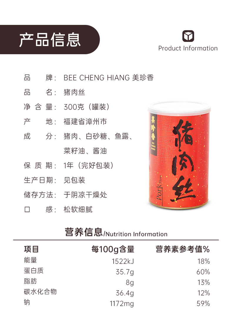 美珍香猪肉丝300g佐餐拌粥寿司保留肉质纤维嚼劲美味健康零食送礼