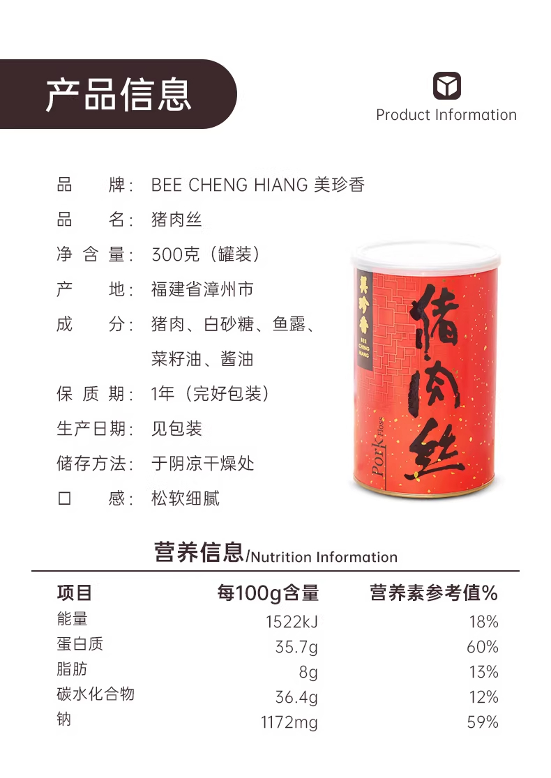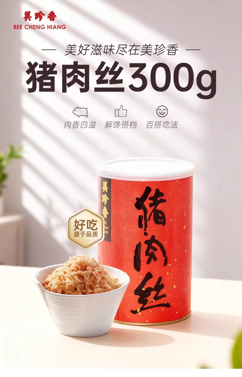 美珍香猪肉丝300g佐餐拌粥寿司保留肉质纤维嚼劲美味即食零食送礼