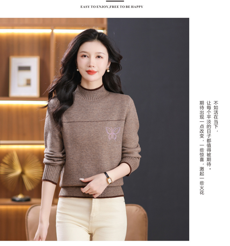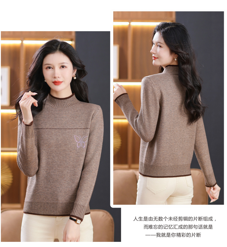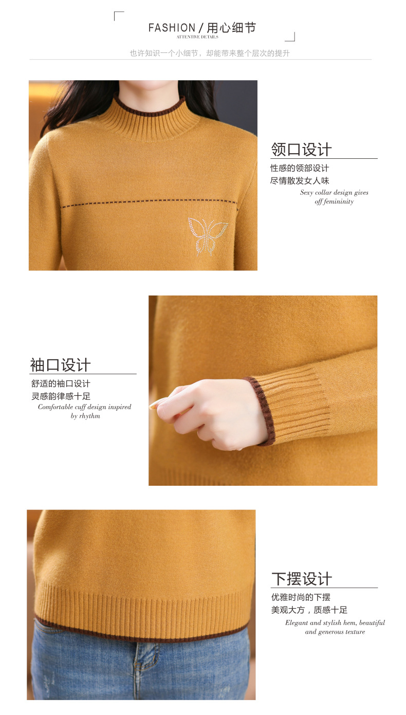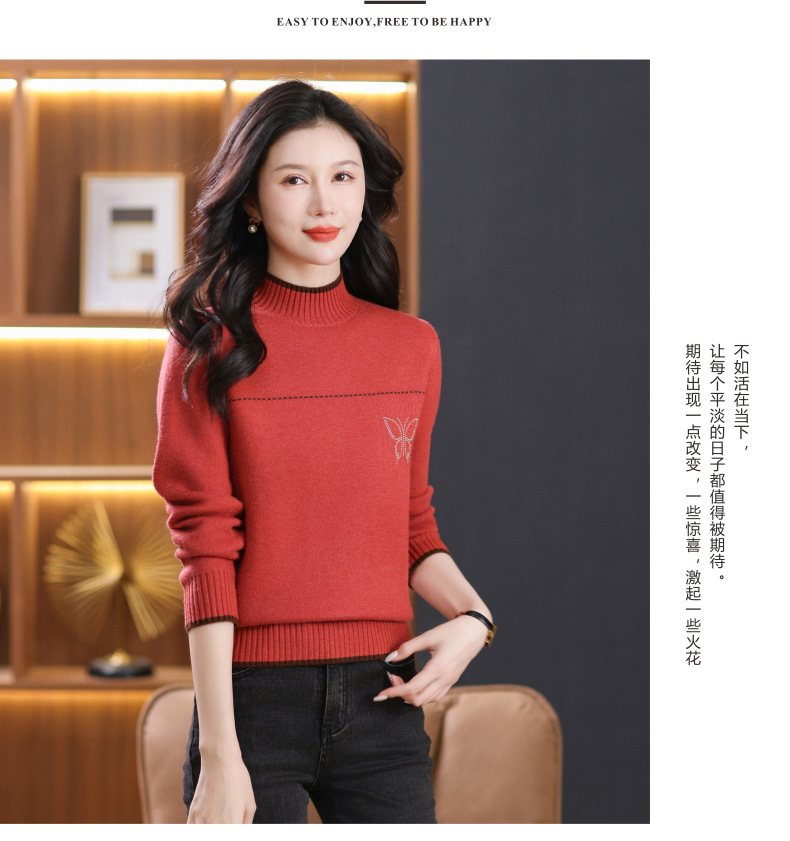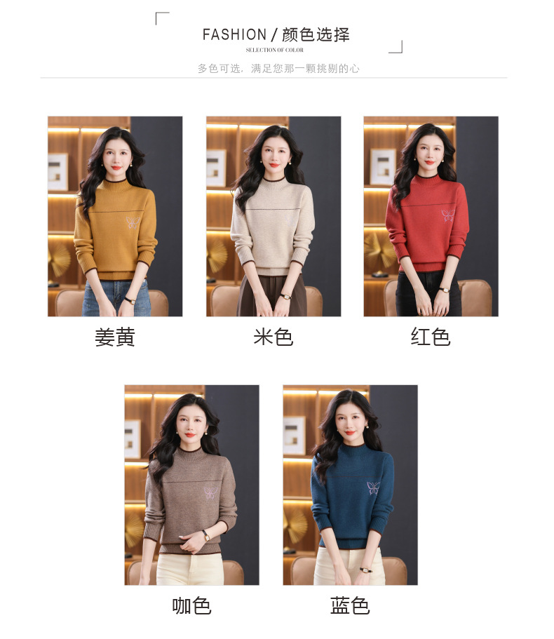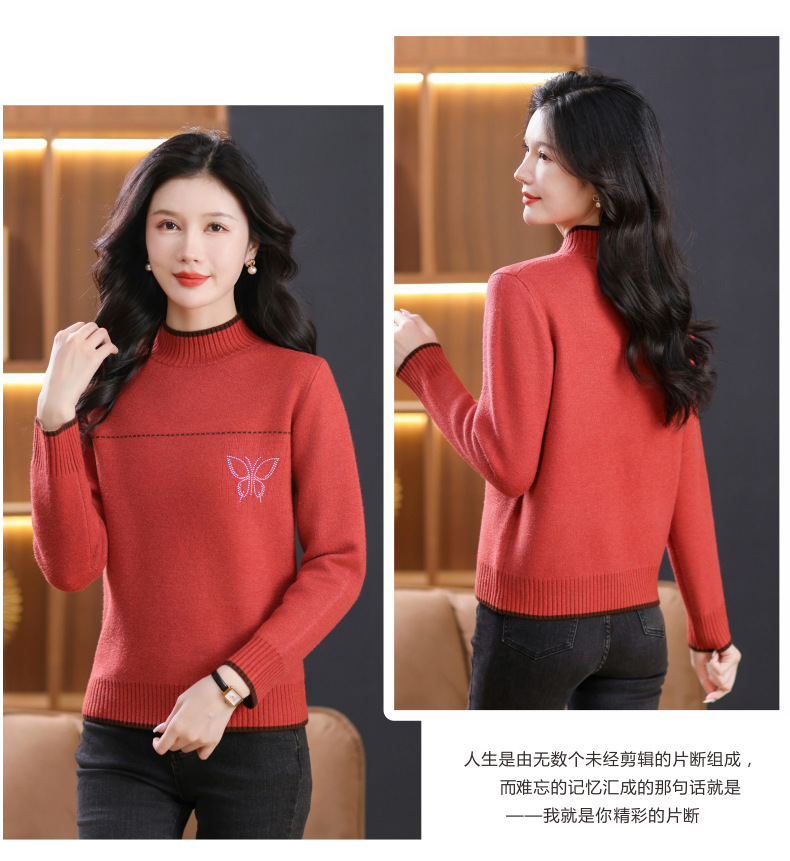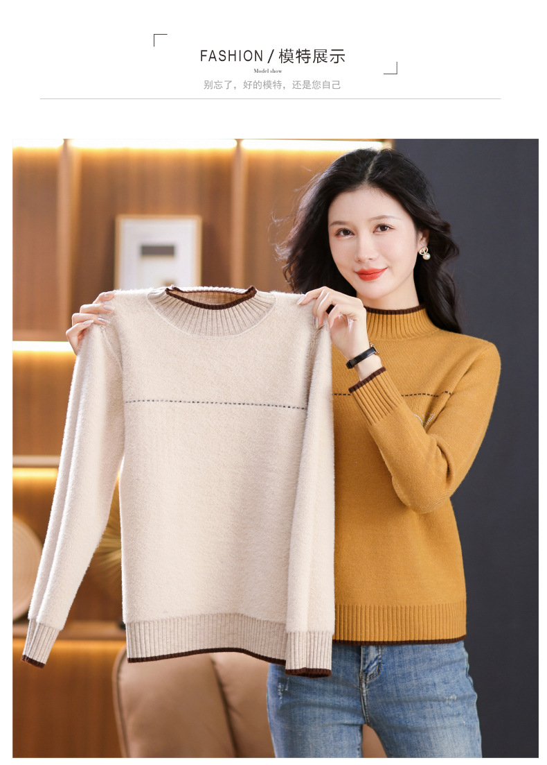 半高领加绒毛衣加厚,洋气宽松一体绒针织内搭打底衫CC-101-26037