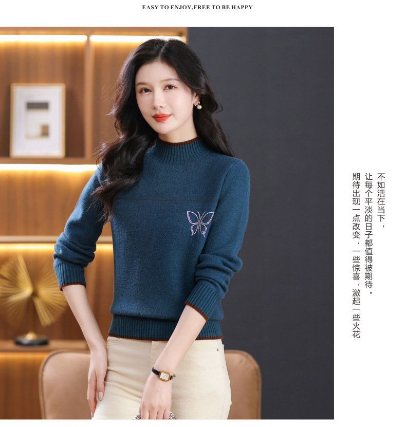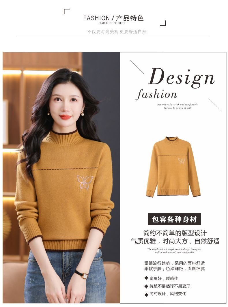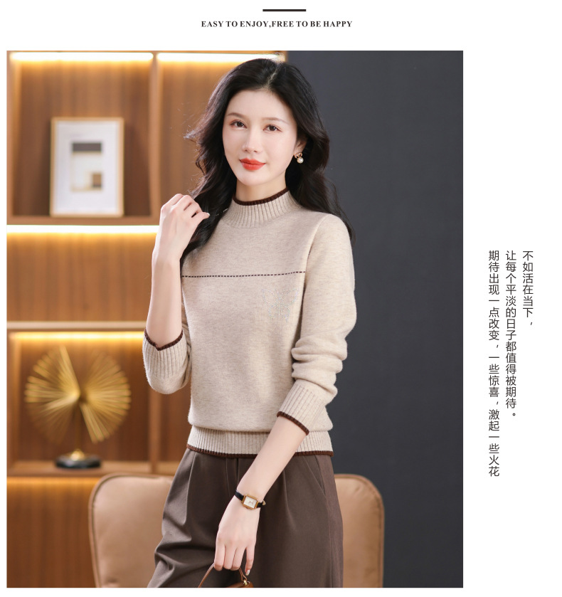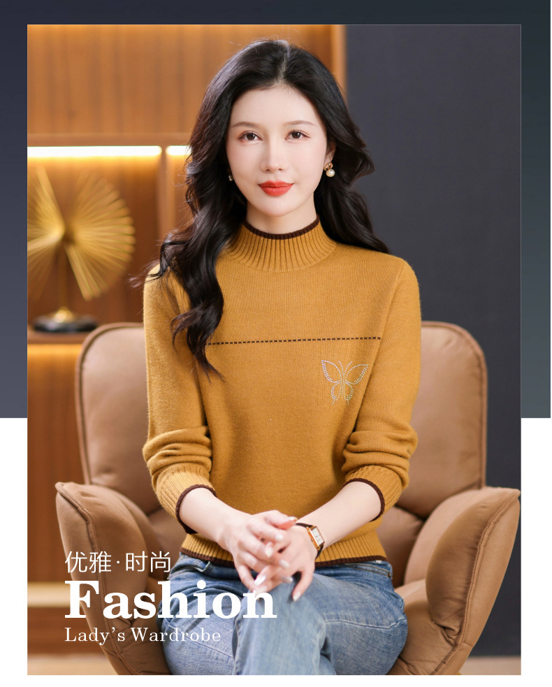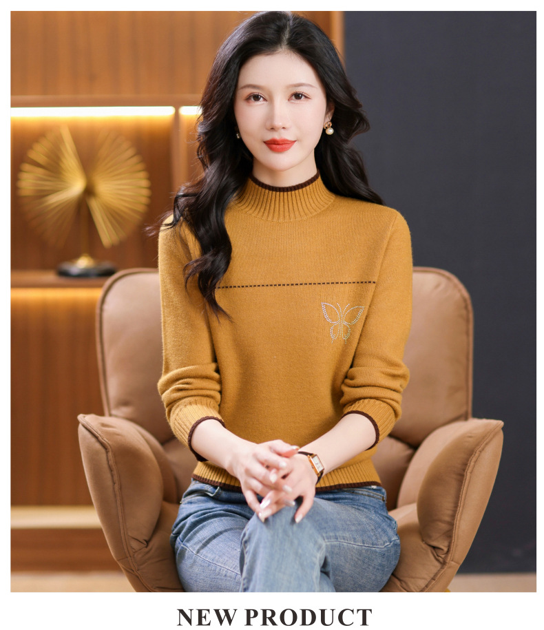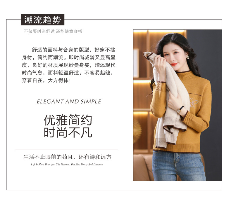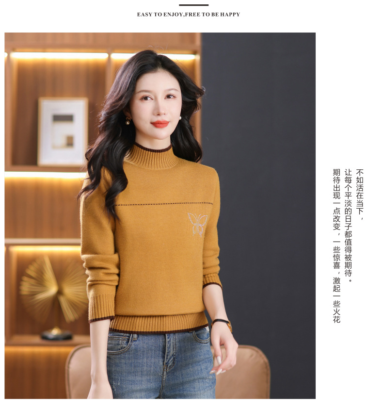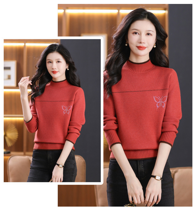 半高领加绒毛衣加厚,洋气宽松一体绒针织内搭打底衫CC-101-26037