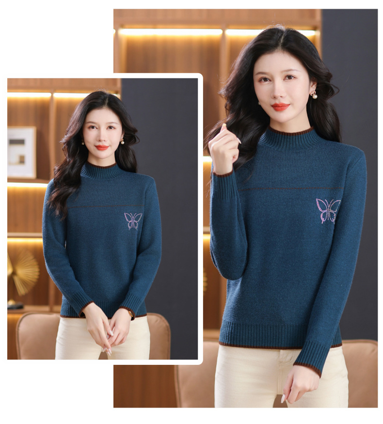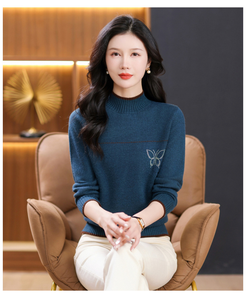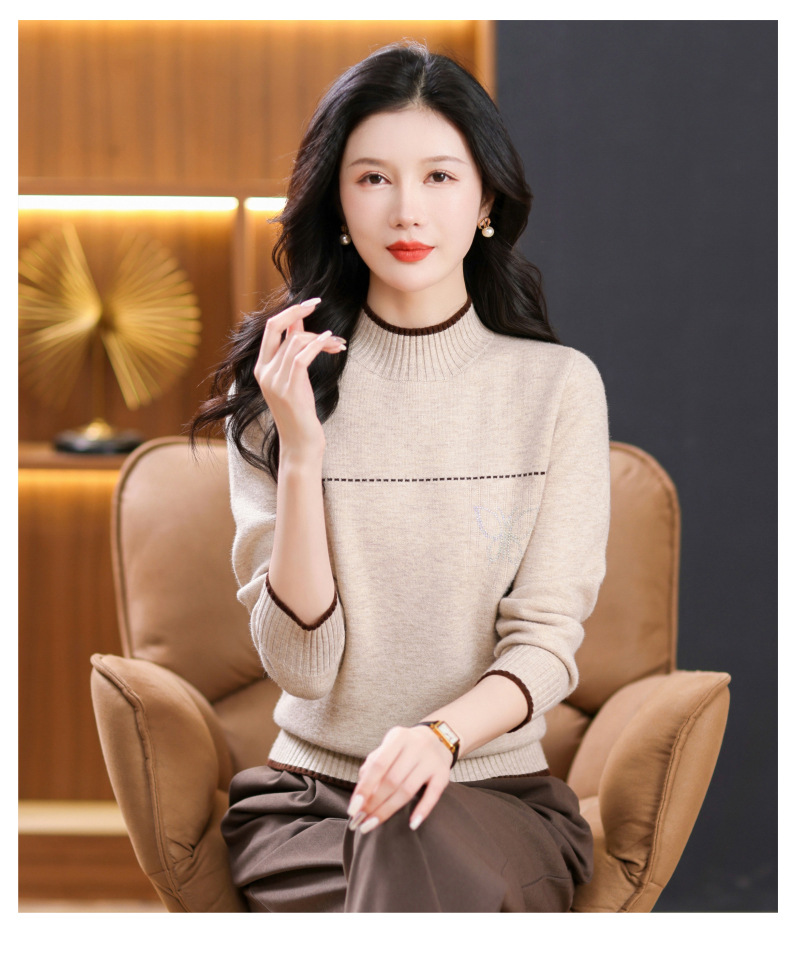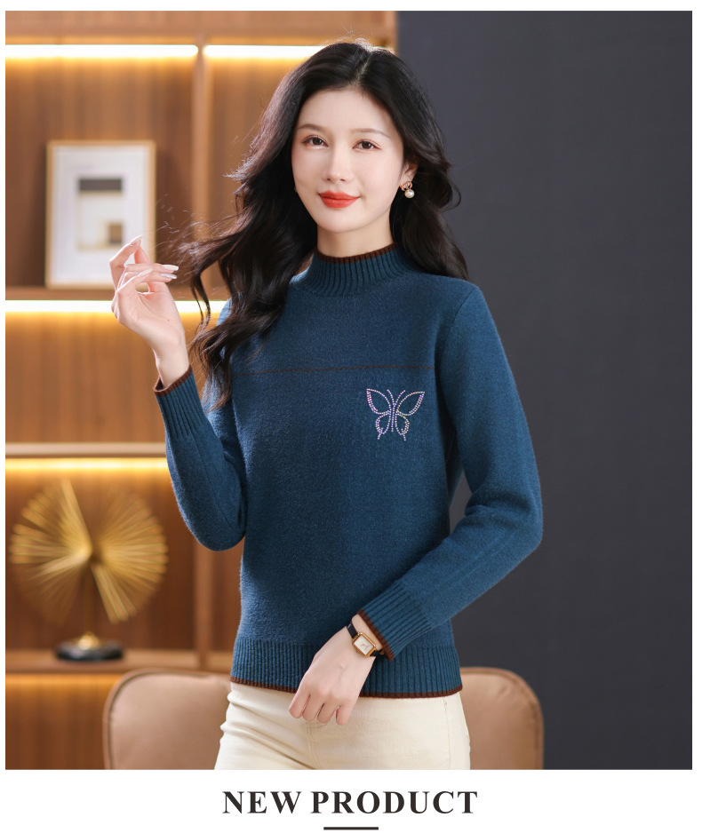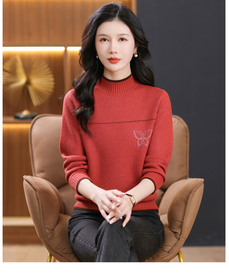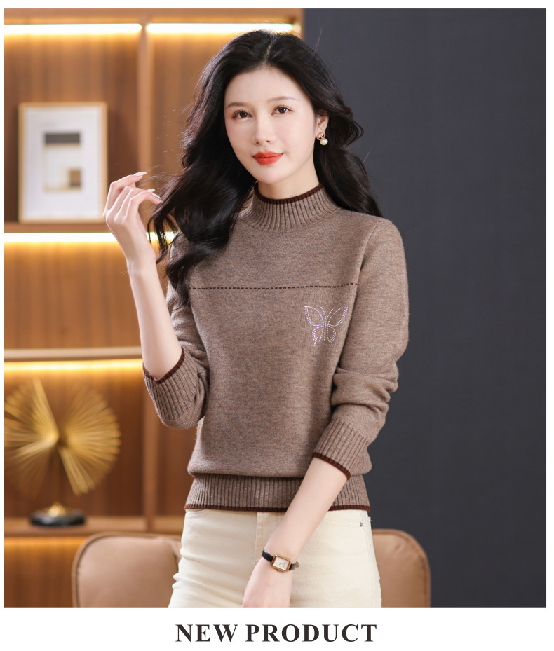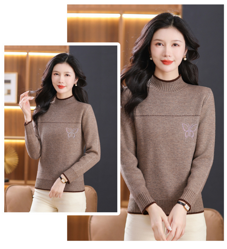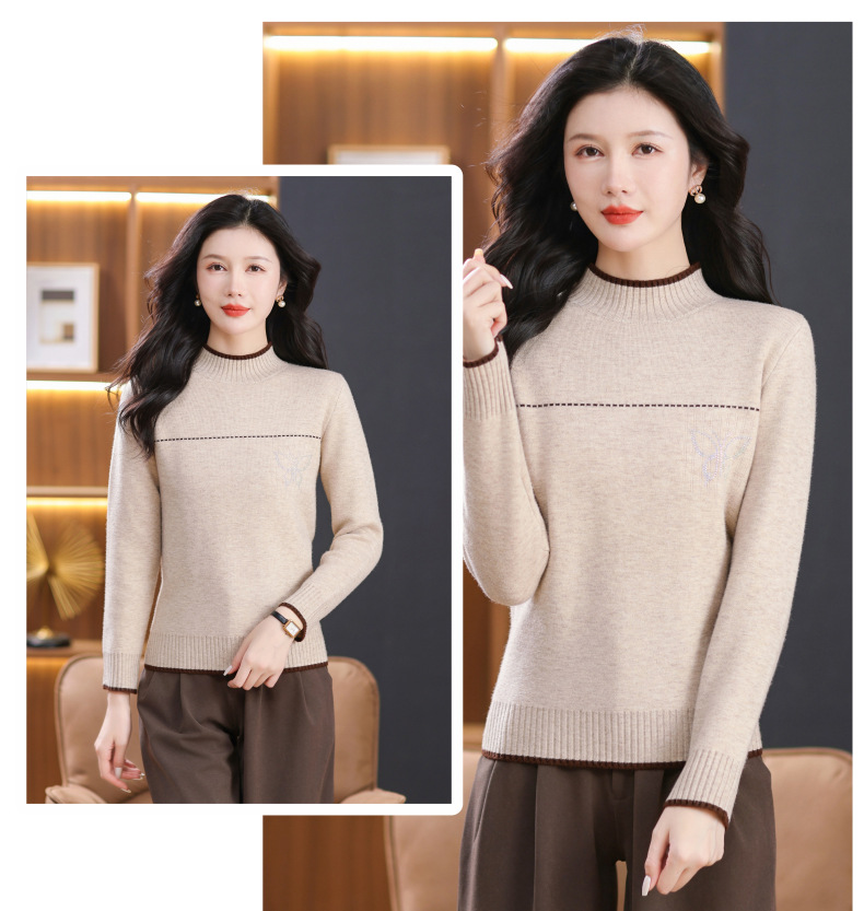 半高领加绒毛衣加厚,洋气宽松一体绒针织内搭打底衫CC-101-26037