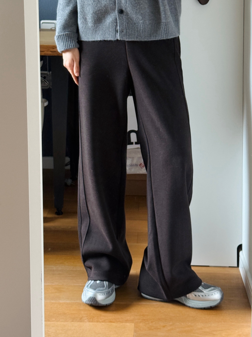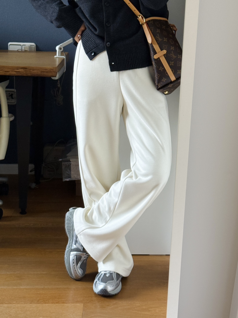 简单/大气/有腔调的一款,重点是它还不显胯宽,垂感指数满满,上身炒鸡舒服的直筒裤。裤腿是狠立体的,提升层次感。