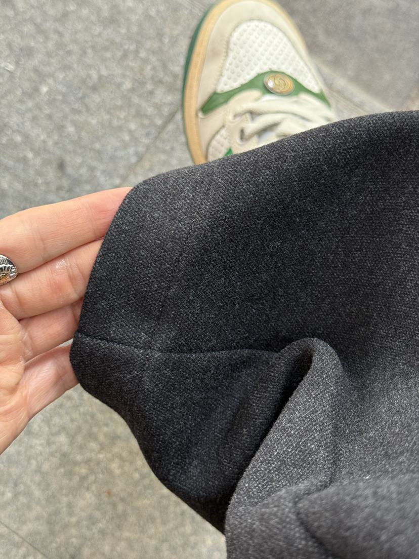 穿上它的第一视觉冲击感就是腿变长了!"腿型变直了!打破常规平裁的局限,裤身做利落分割设计,还有立体的捏褶造型显瘦显高,效果比普通的侧缝线更强,消化各种身材的顾虑,选用羊毛混纺面料,骨感利落有型 高及悬垂抗皱质地紧密 丰满挺括 有骨手感,干爽柔顺亲肤不扎厚薄适中,免熨烫!
