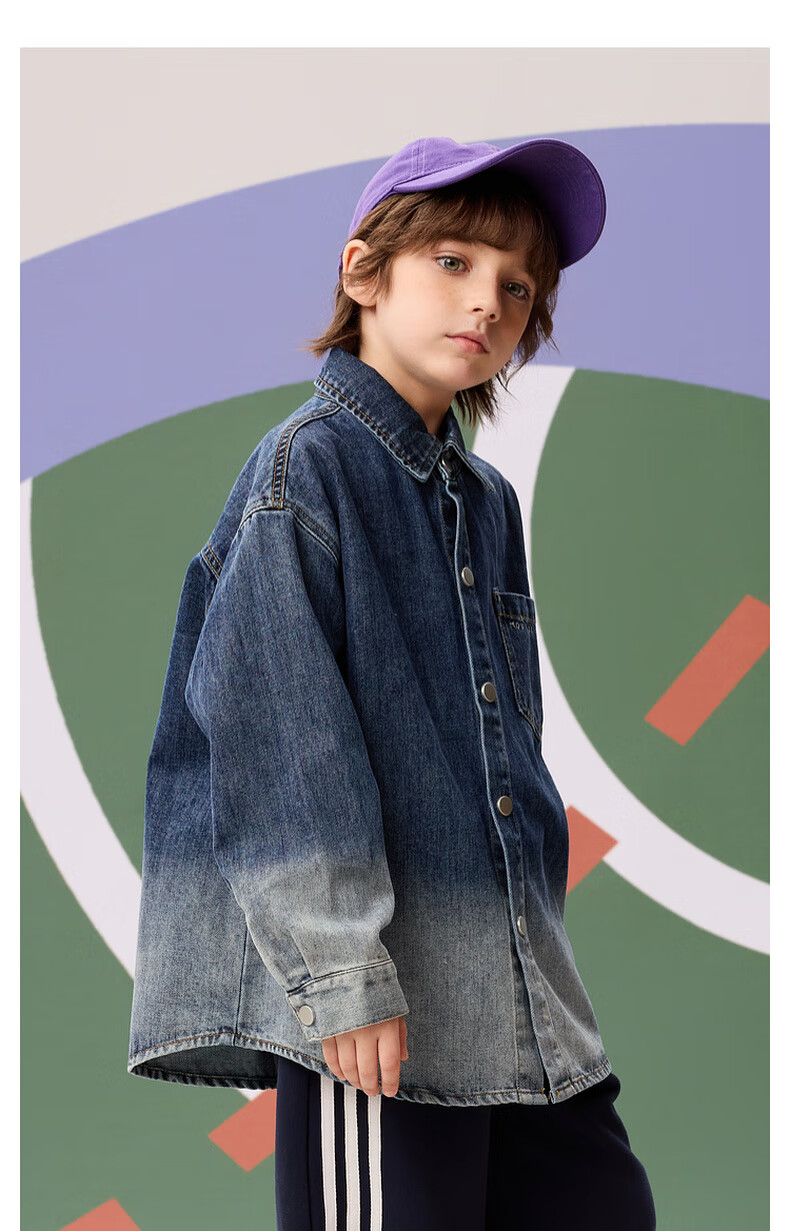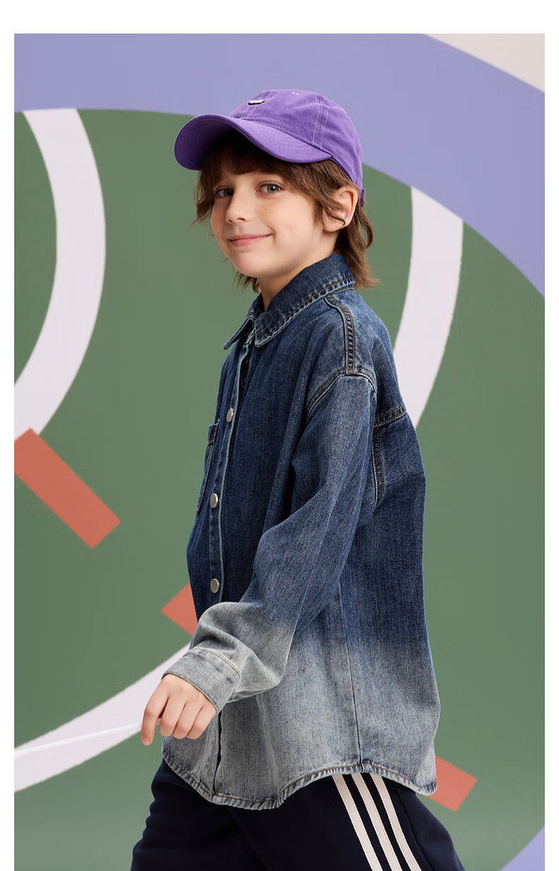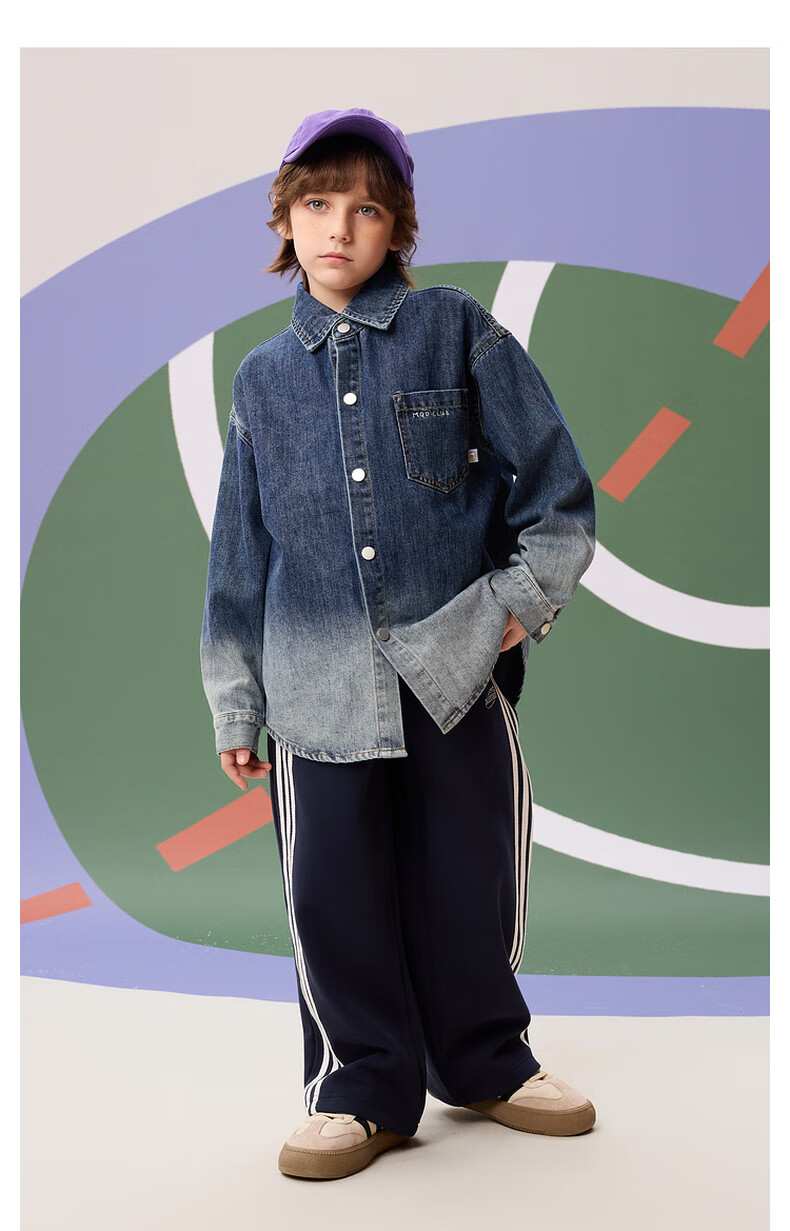 【MQD】秋季男大童经典休闲学院风渐变牛仔外套