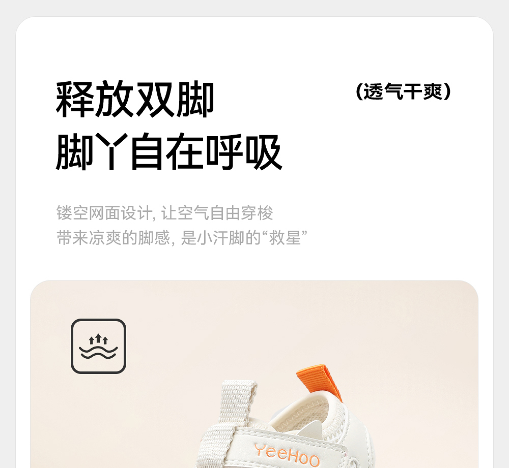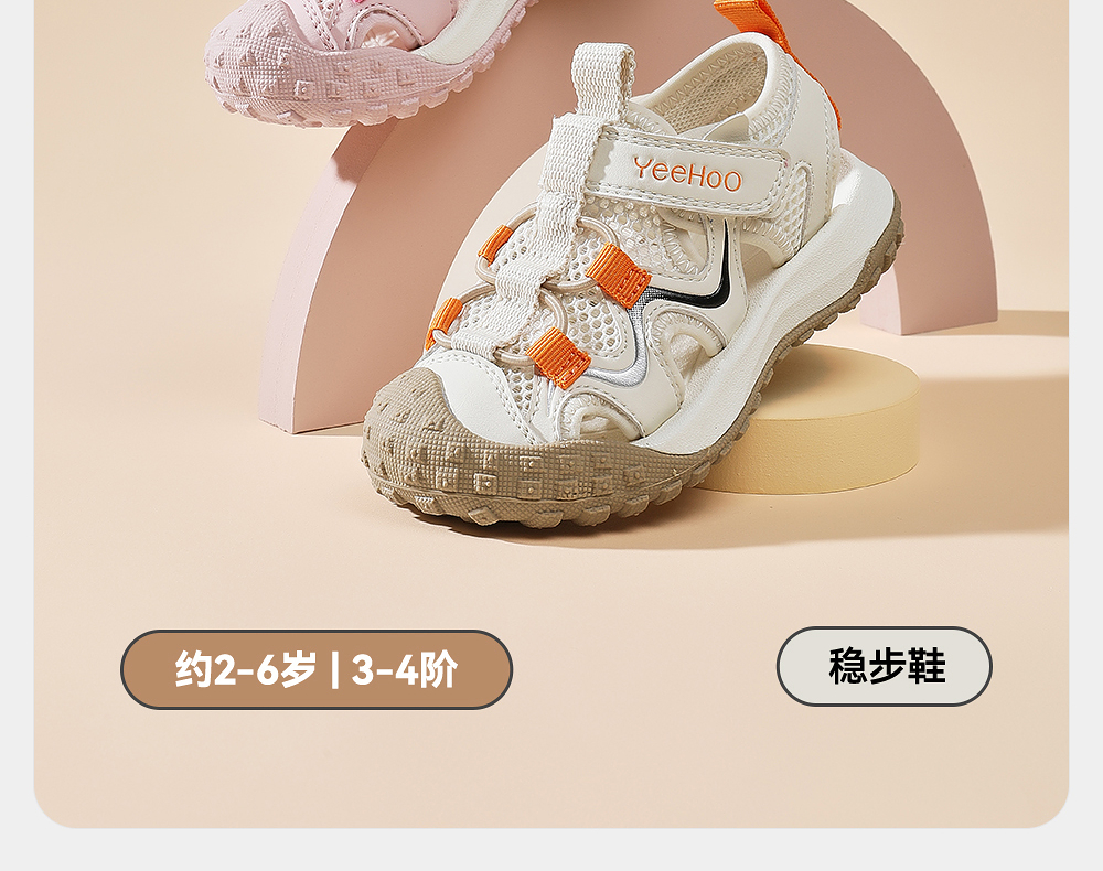 英氏童鞋儿童凉鞋女童夏季新款透气宝宝软底防滑男宝宝鞋子魔术贴