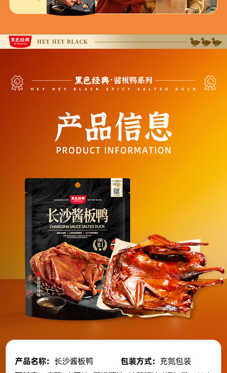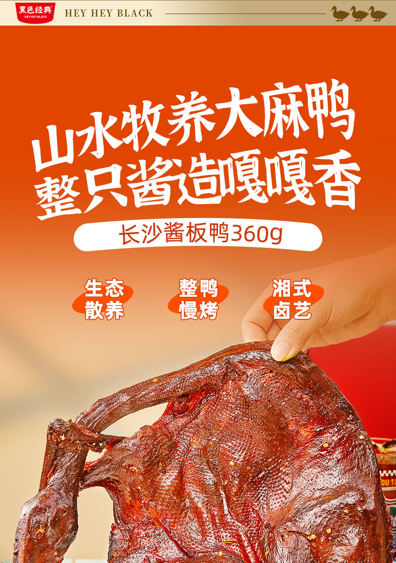【湖南特产】黑色经典长沙手撕酱板鸭茶油香辣味 360g/袋