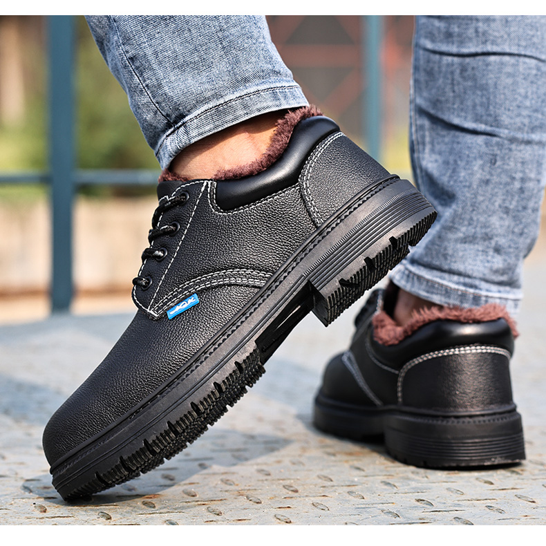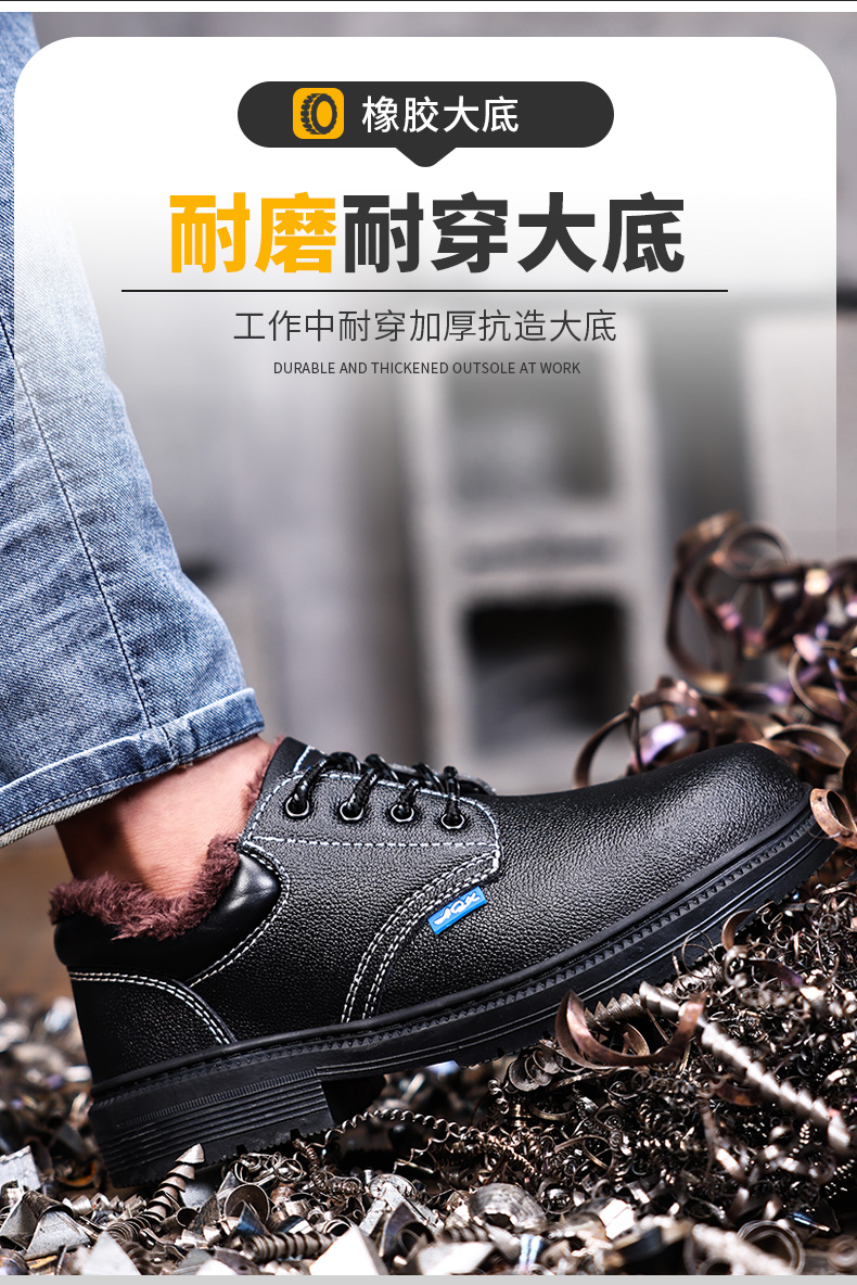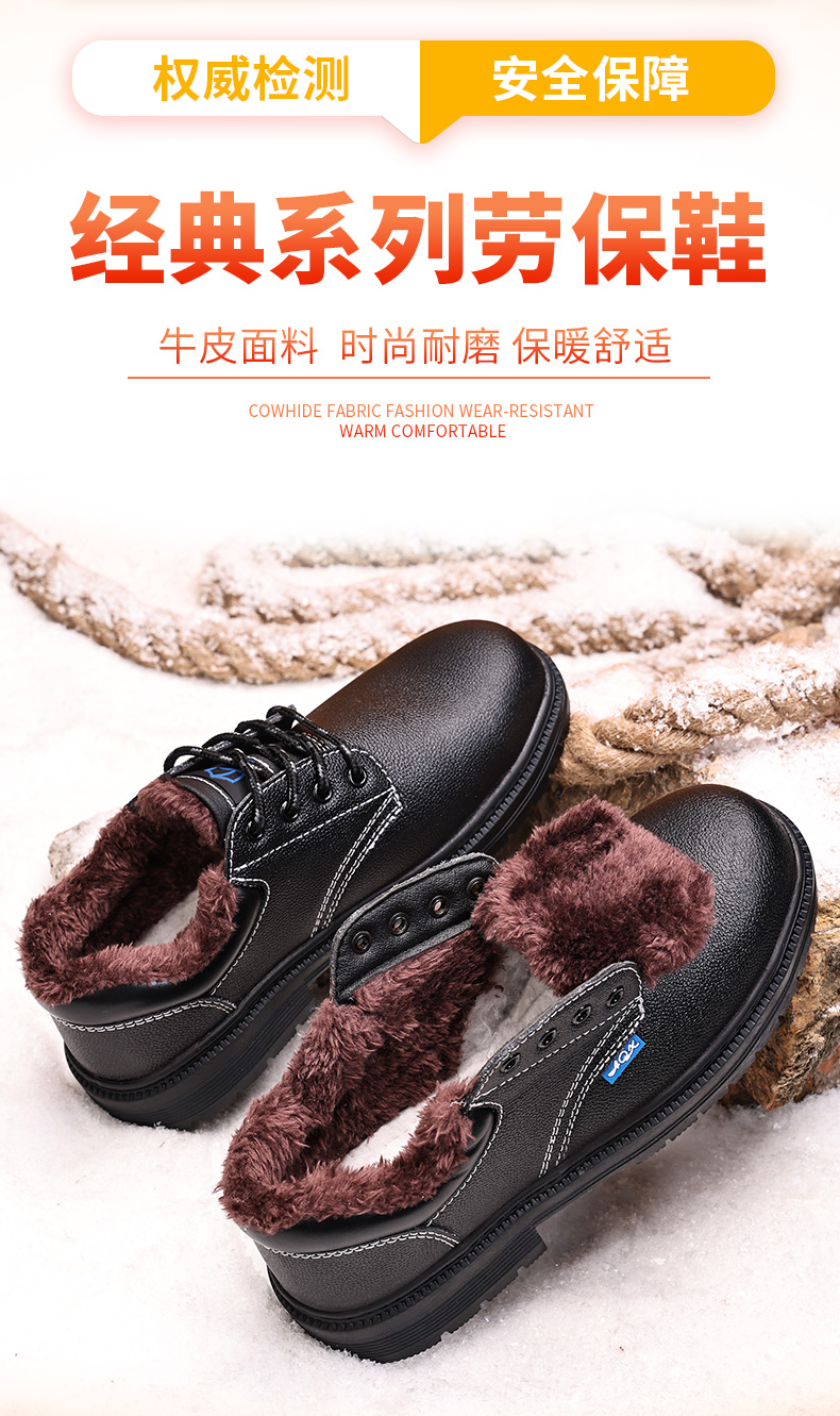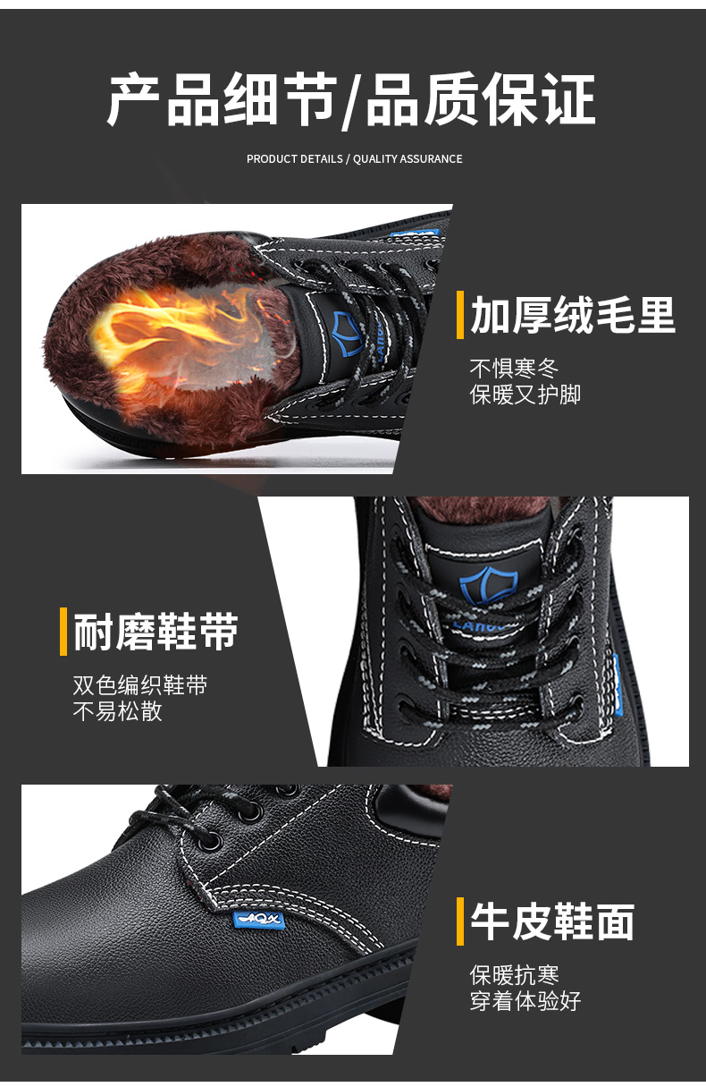 蓝鸥盾冬季加绒皮鞋防砸防刺劳保鞋钢包头牛皮安全鞋工作鞋