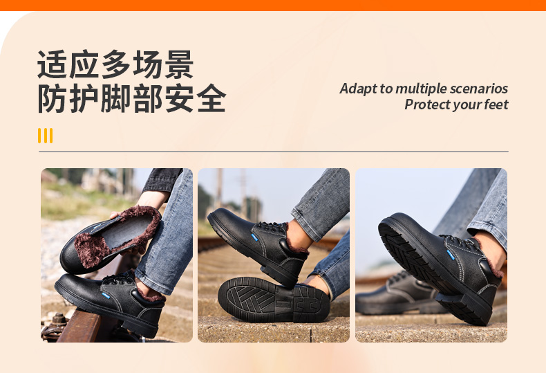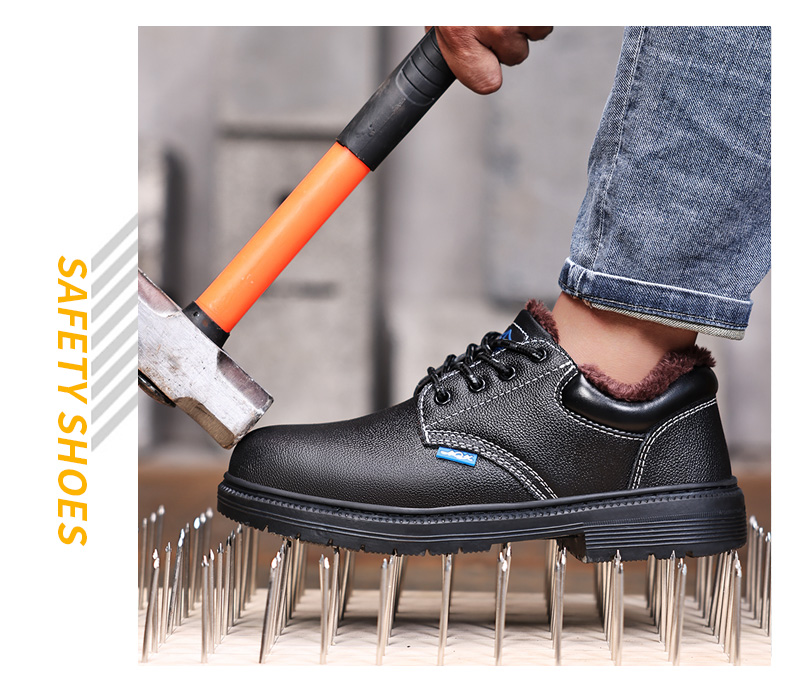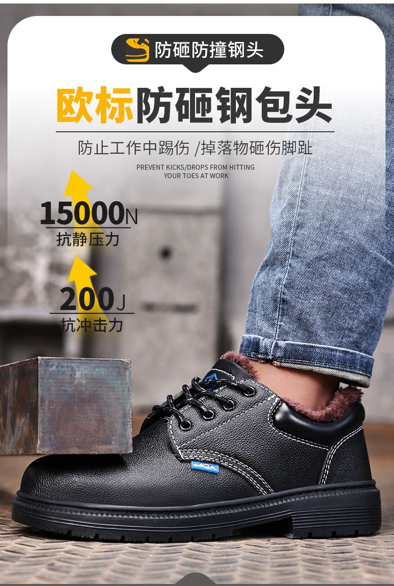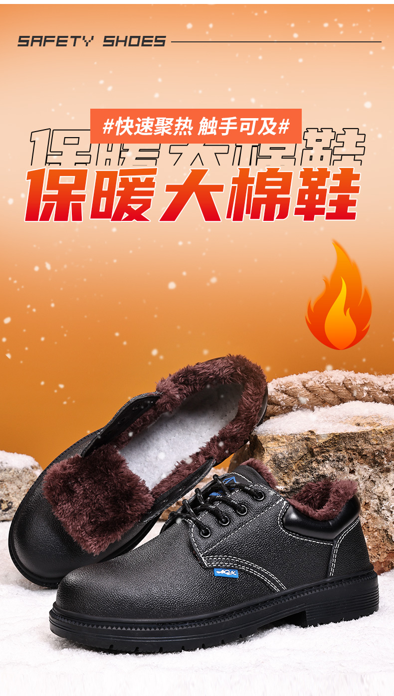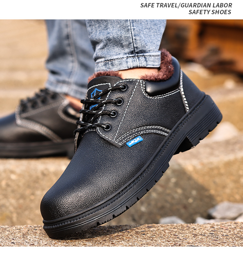 蓝鸥盾冬季加绒皮鞋防砸防刺劳保鞋钢包头牛皮安全鞋工作鞋