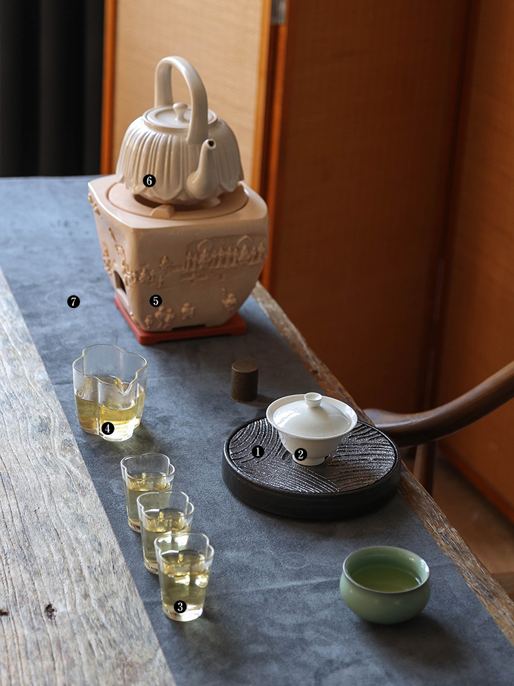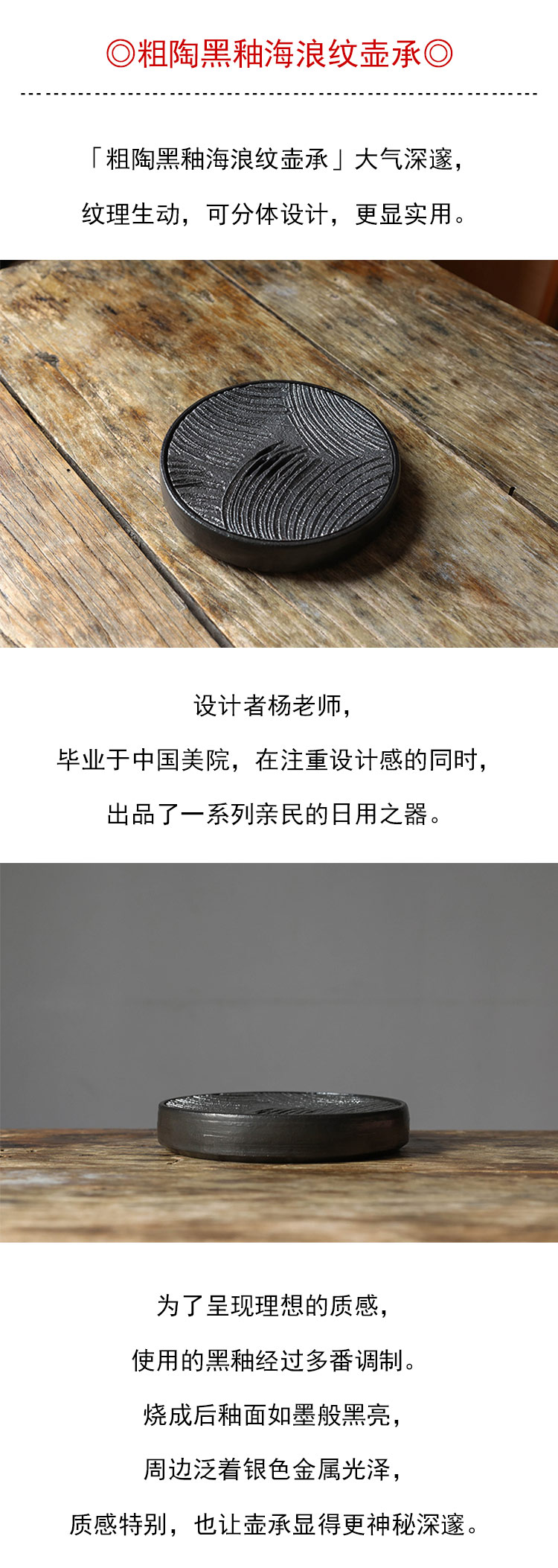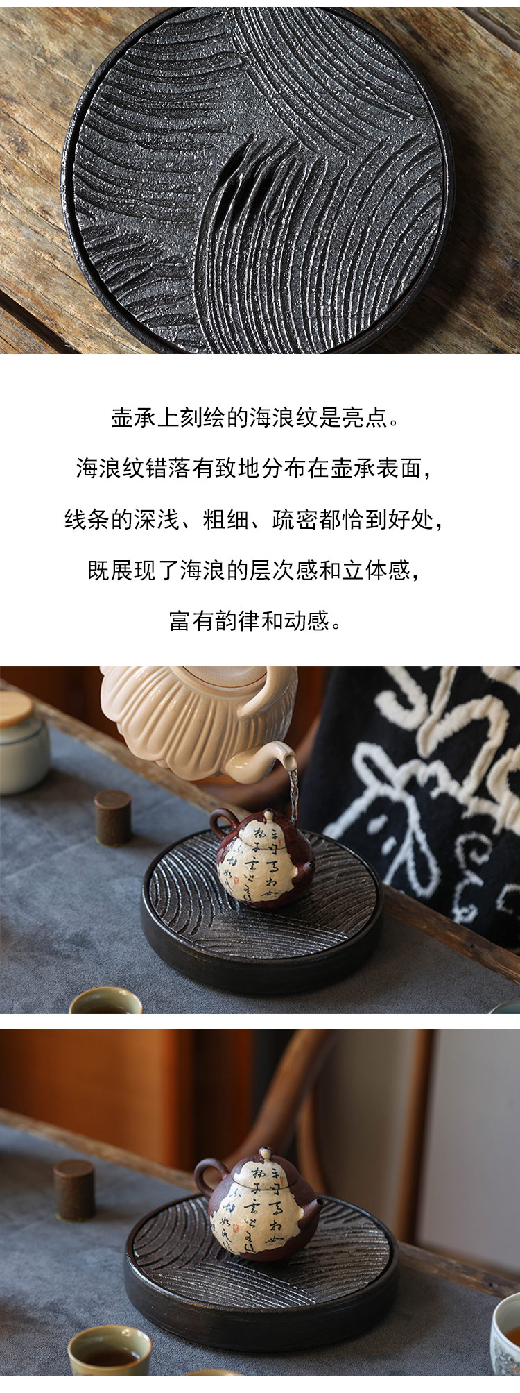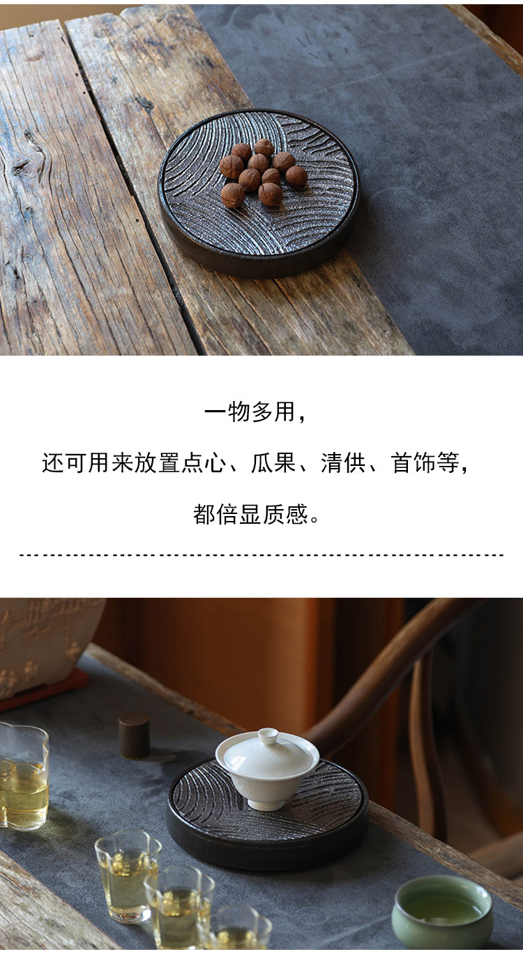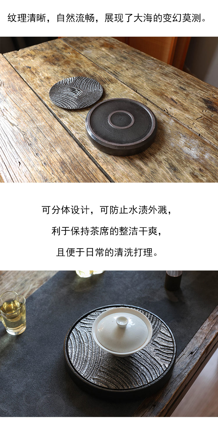 茶香记 粗陶黑釉海浪纹壶承干泡台茶道配件大气沉稳分体设计多用盘