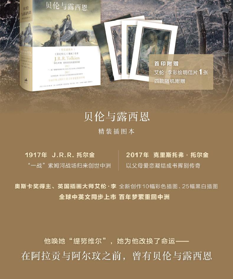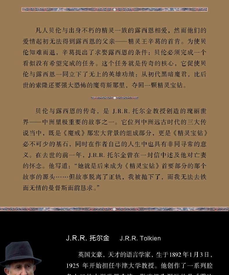 ★ 《霍比特人》《魔戒》作者J.R.R. 托尔金毕生所寄,世间至美的爱情诗篇,人类与精灵首联姻,结合作者自身爱恋经历,夫妇合葬墓碑上镌有贝伦与露西恩之名