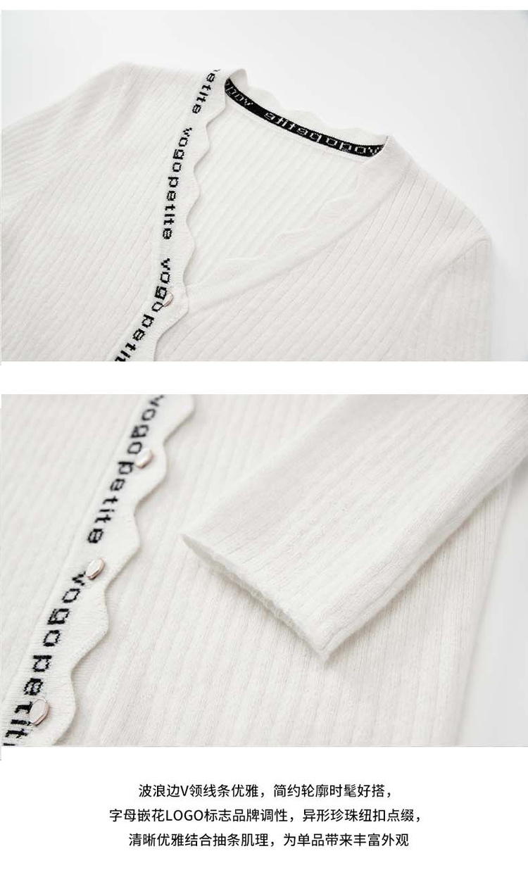 VogoPetite 撞色v领logo开衫100%山羊绒衫 BP131E1504