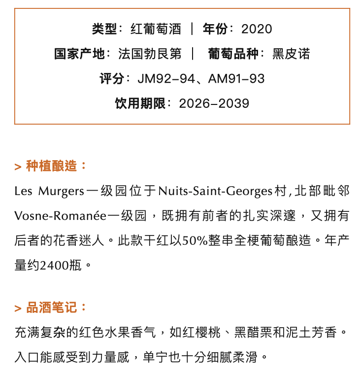 蜜露酒庄夜圣乔治穆尔格斯一级园干红葡萄酒 Virgile Lignier Michelot Nuits Saint Georges 1er Cru Les Murgers