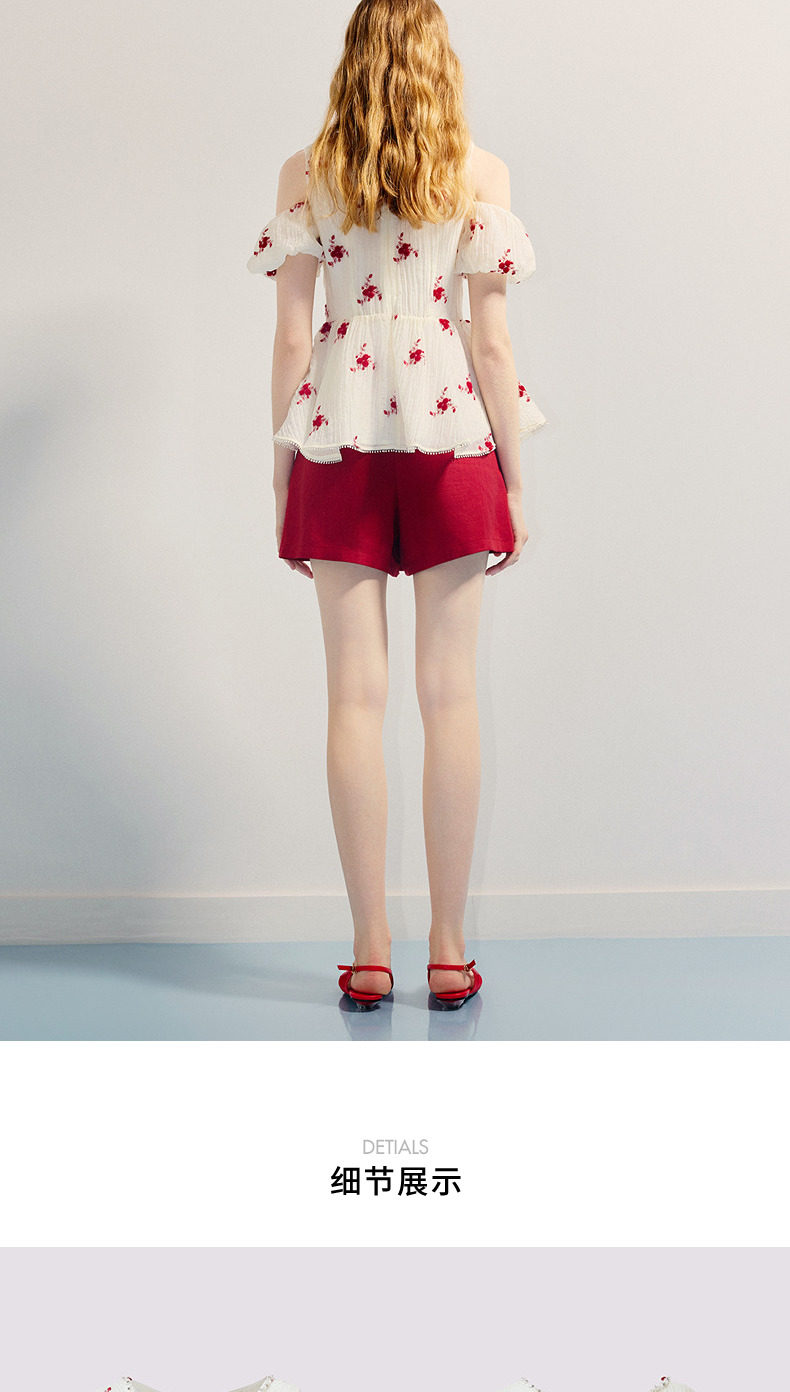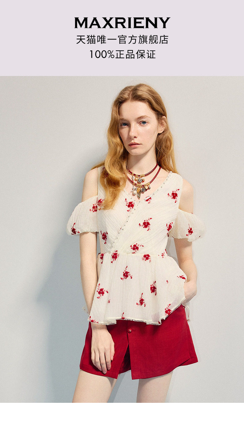 【商场同款】MAXRIENY精致浪漫感x型收腰露肩泡泡袖上衣25夏款(货号:MC86TP264)