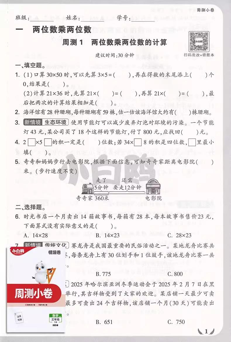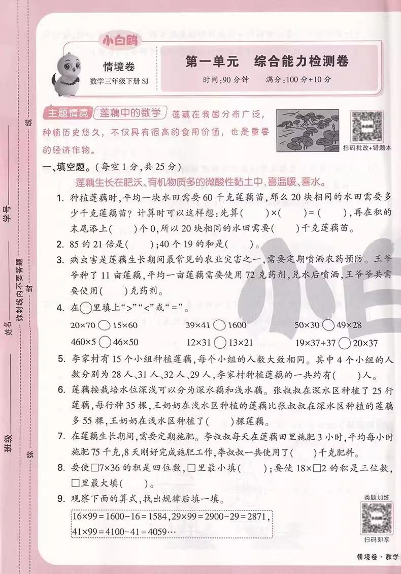 万唯小白鸥小学情境卷2025同步单元下册期末测试卷人教