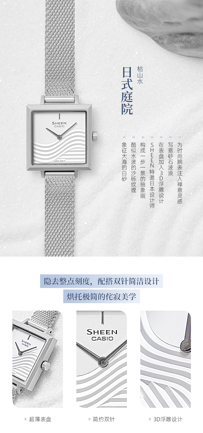 【时计廊】卡西欧 casio女士石英手表对表 枯山水系列SHE-C121M-7AUPFK