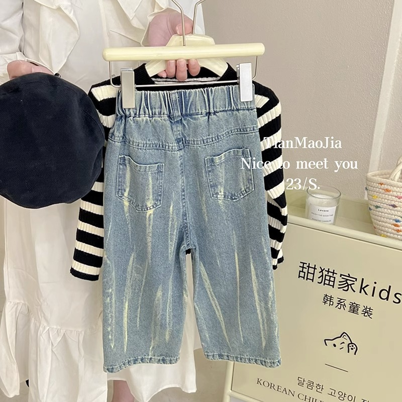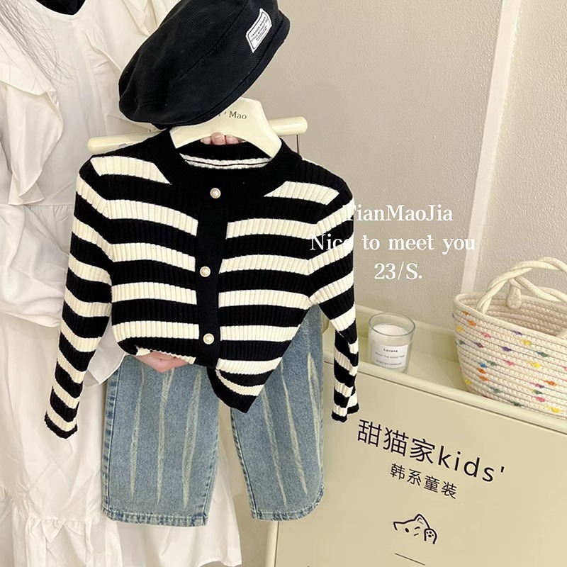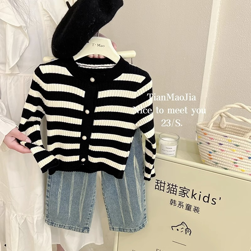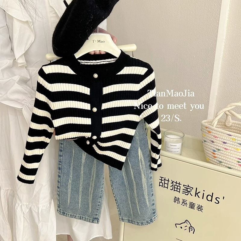 【女童开衫套装,条纹上衣搭配牛仔裤,时髦百搭】春秋新款儿童时髦条纹上衣 女孩宝宝牛仔裤 外穿潮流新款 让你的小公主成为街头时尚焦点-QQ