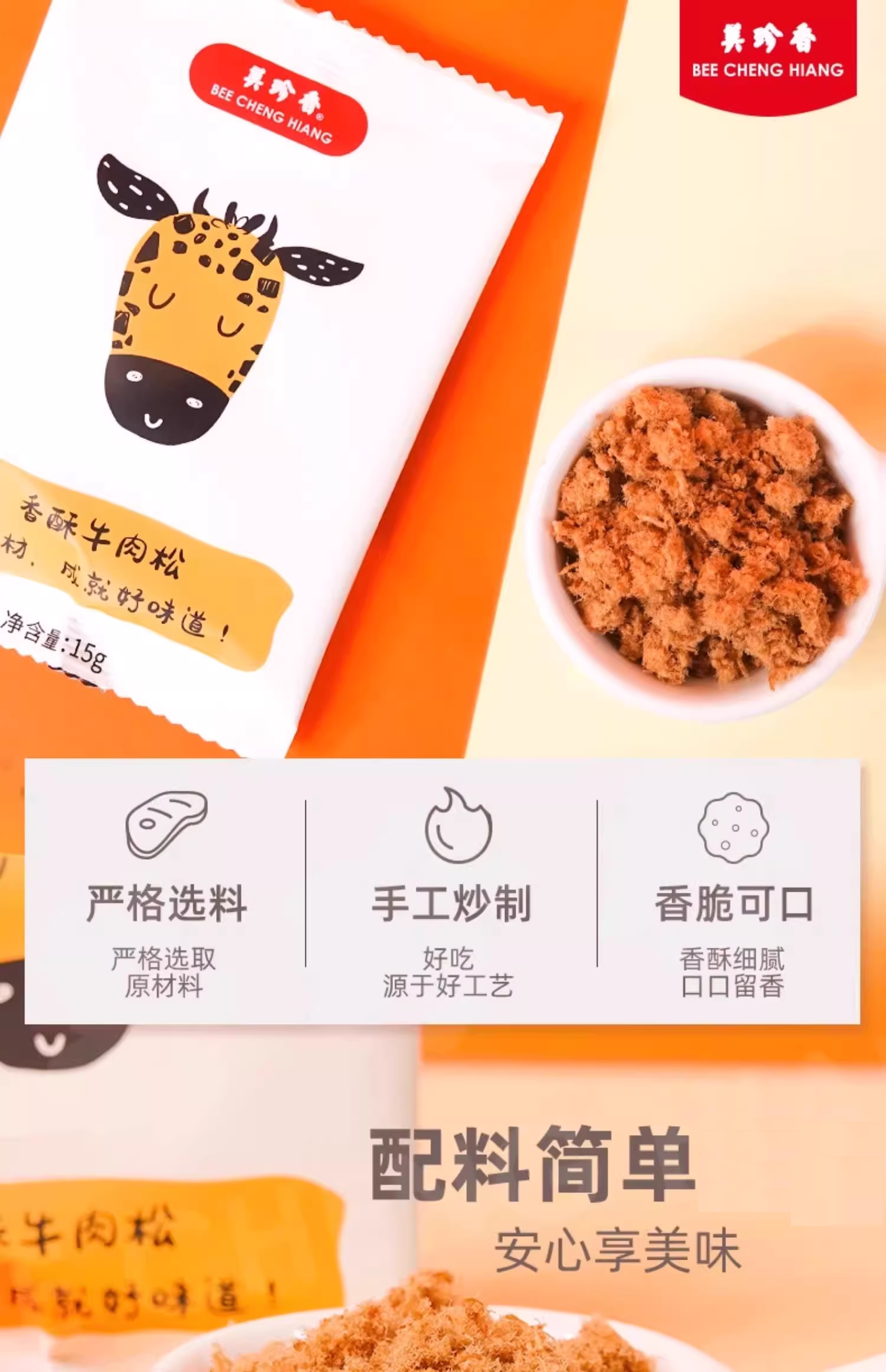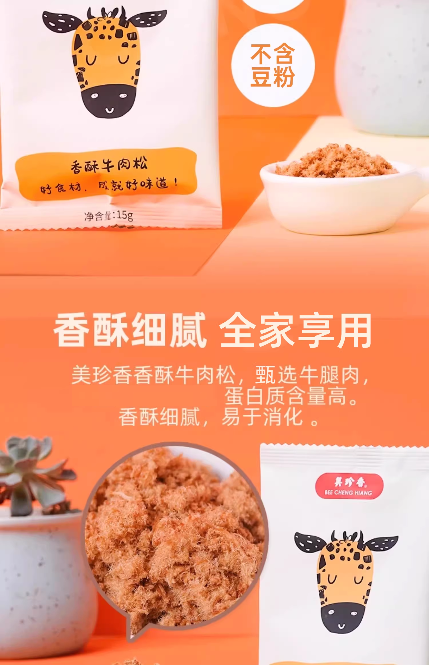 美珍香香酥牛肉松120g(15gx8)独立袋装美味即食零食全家享用