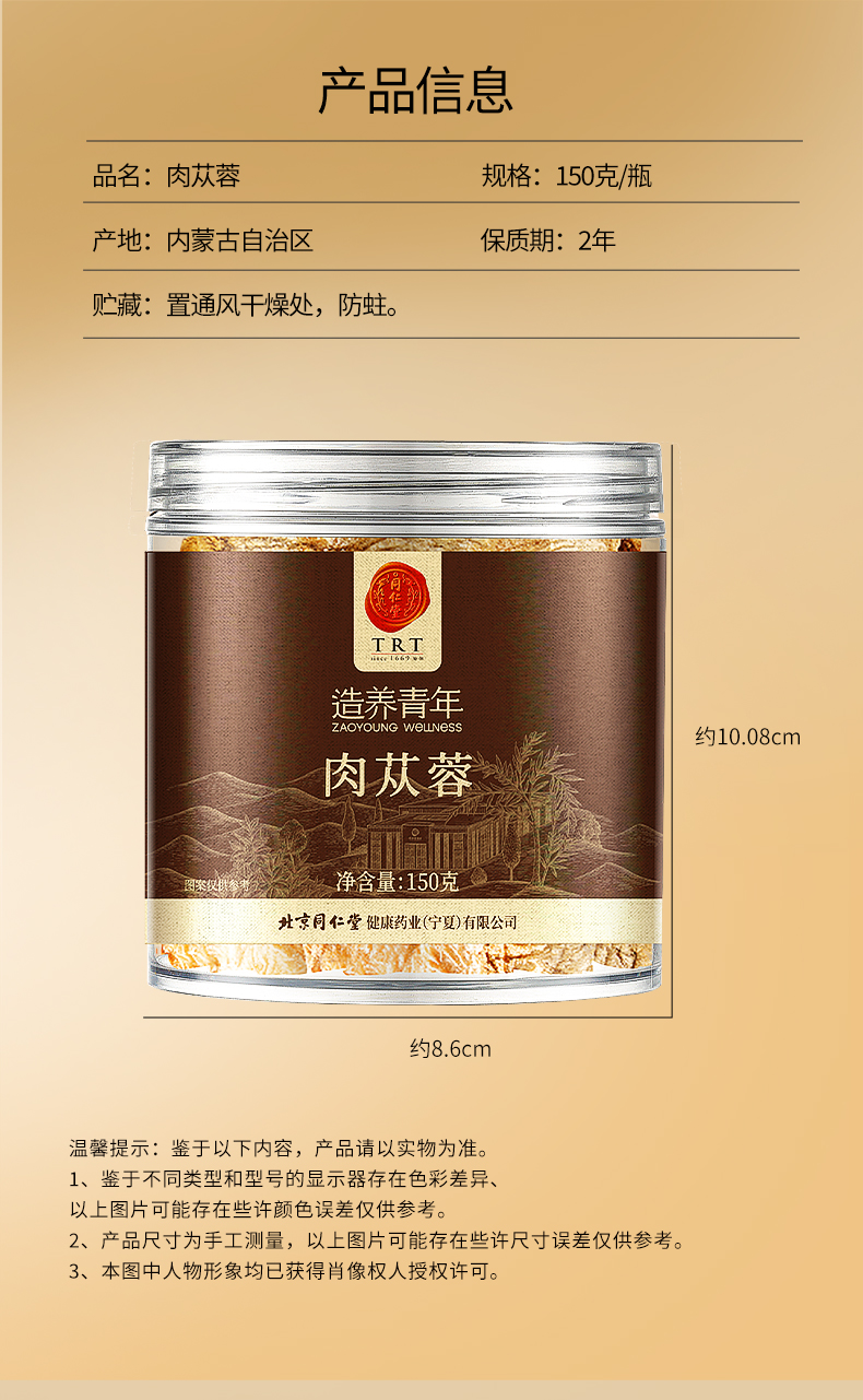 【正宗同仁堂品牌】北京同仁堂 肉苁蓉150克 泡茶泡酒 男性滋补品 非野生整根切片SY