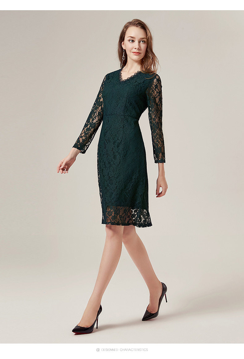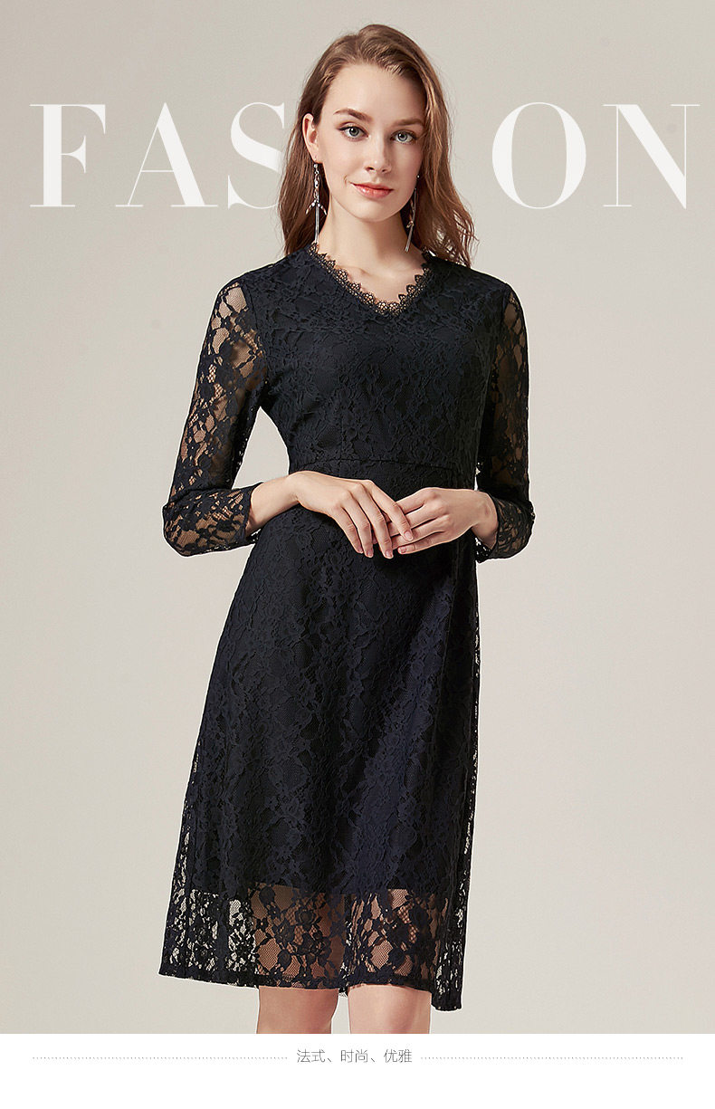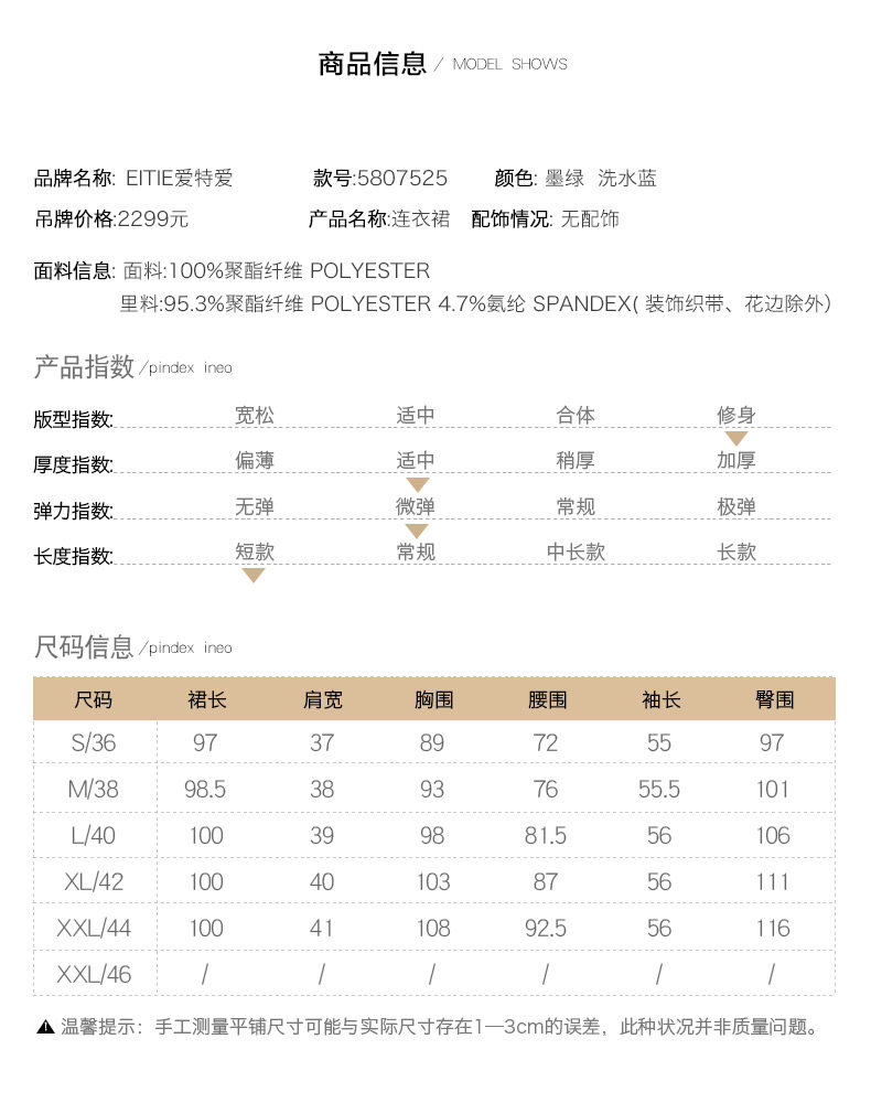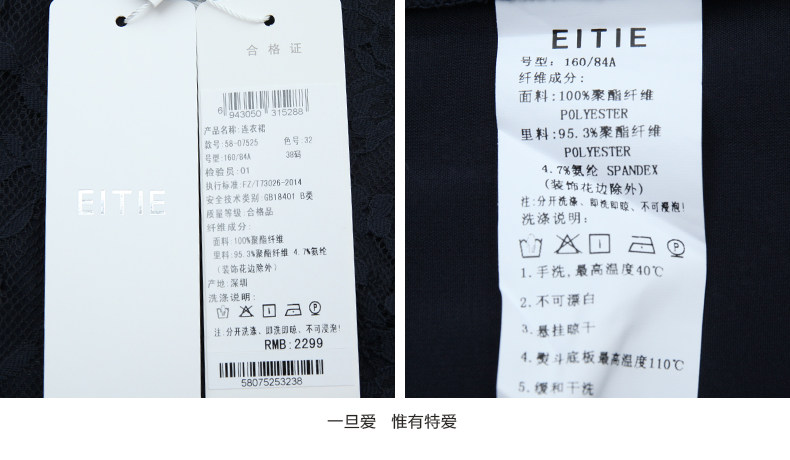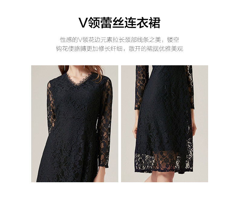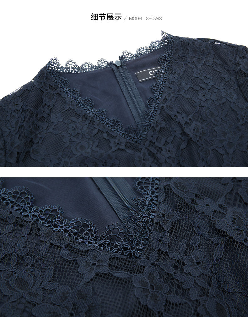 EITIE爱特爱品牌女装秋季商场同款时尚修身V领蕾丝连衣裙短裙5807525