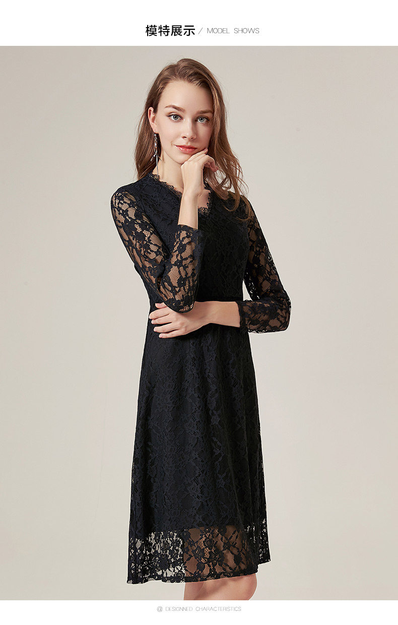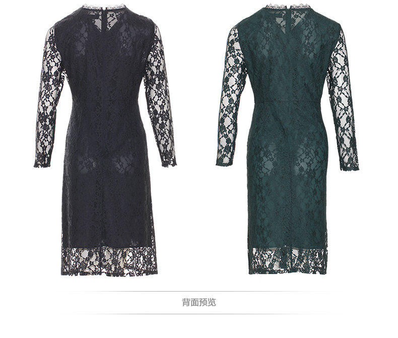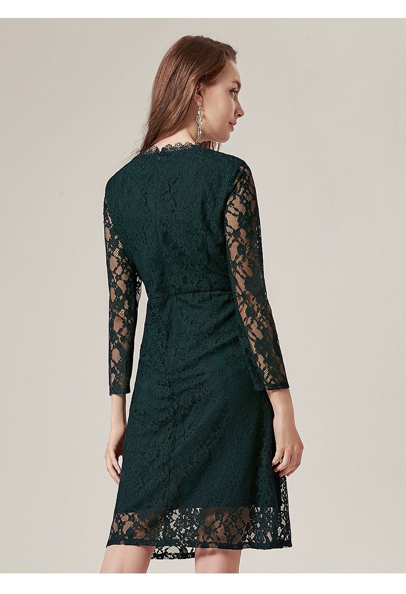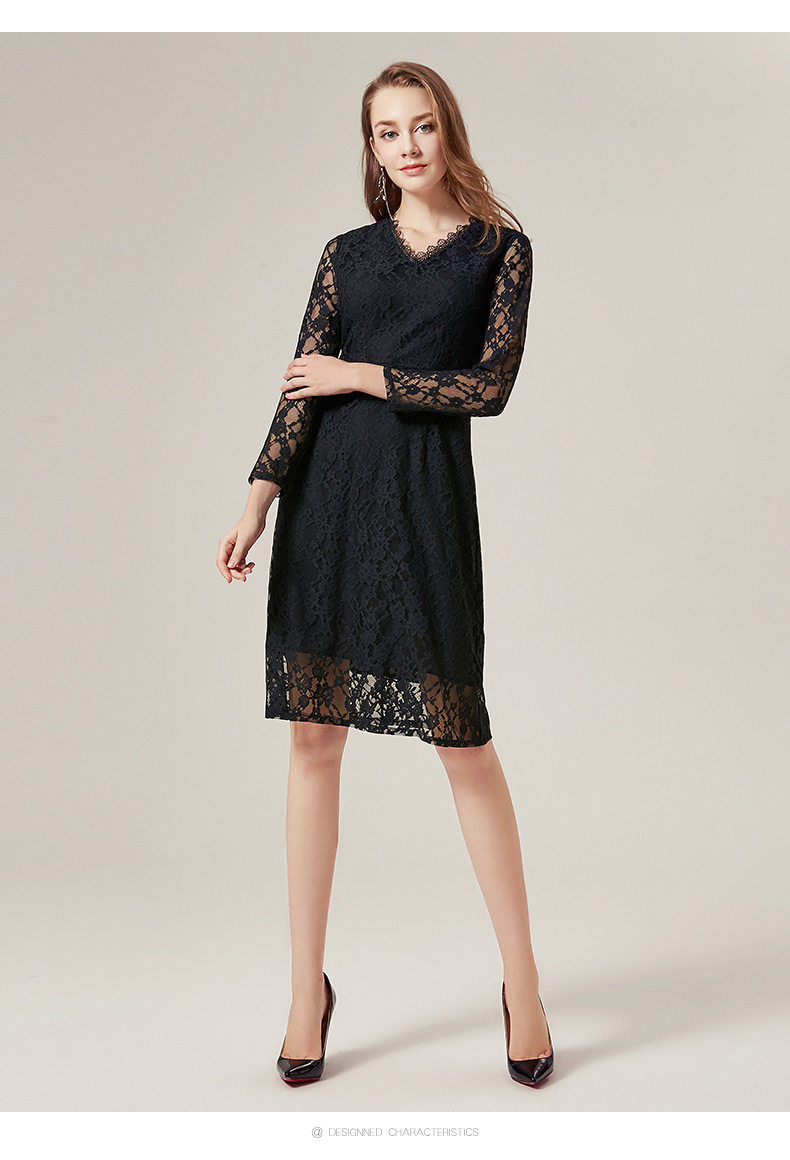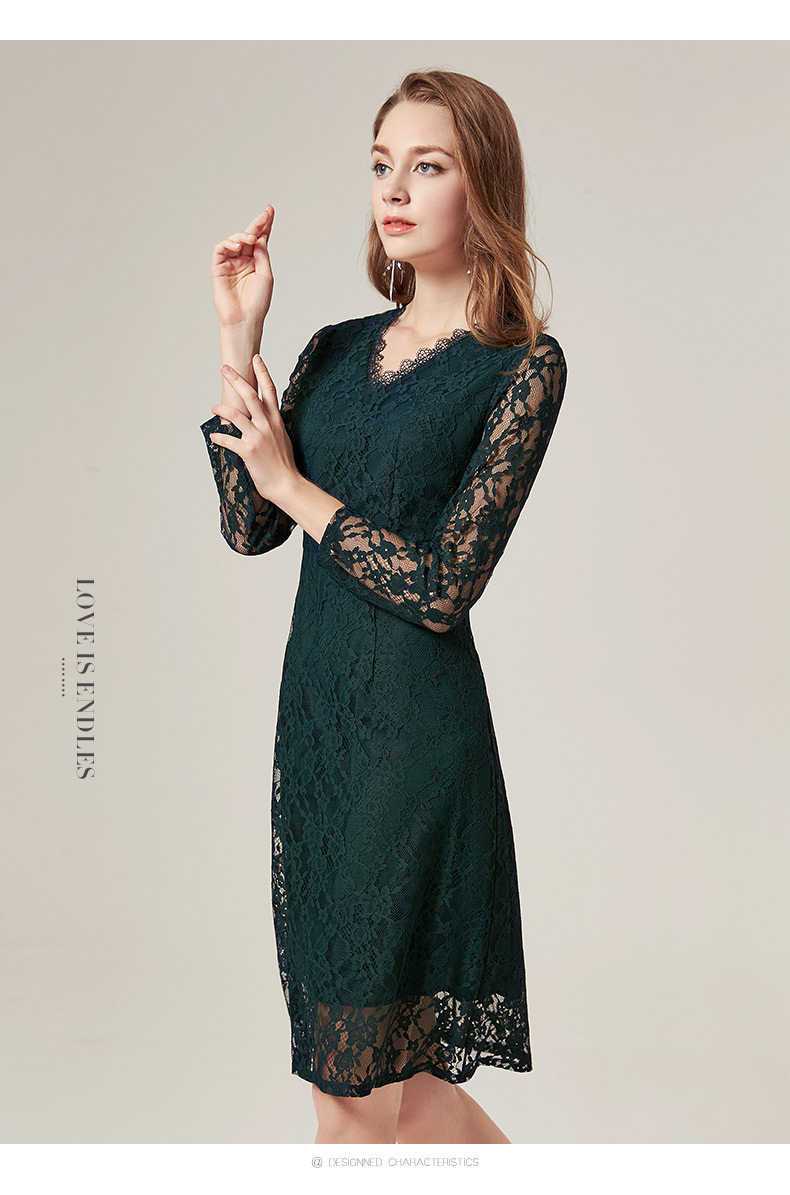 EITIE爱特爱品牌女装秋季商场同款时尚修身V领蕾丝连衣裙短裙5807525