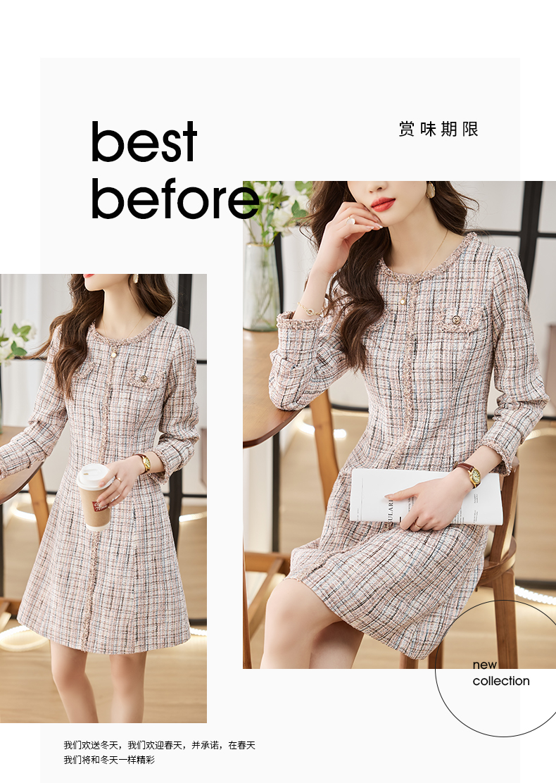 春装新款,时尚显瘦小香风连衣裙HR-ZYF2301