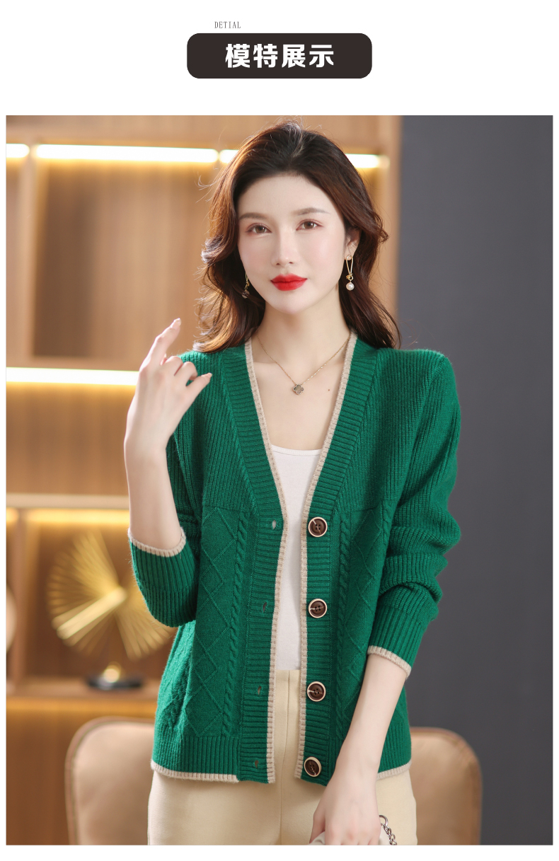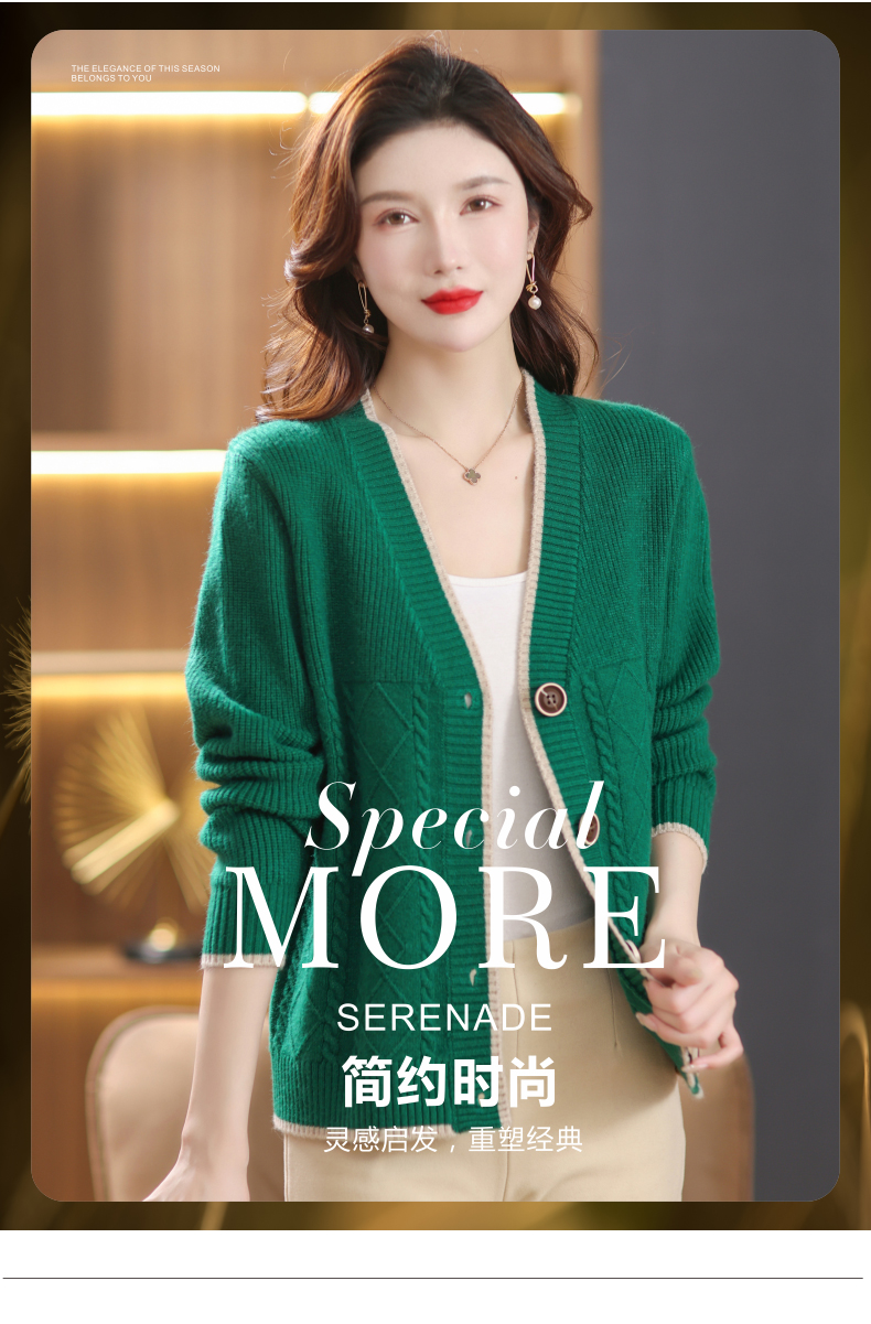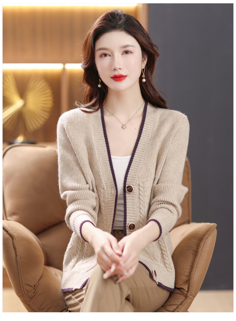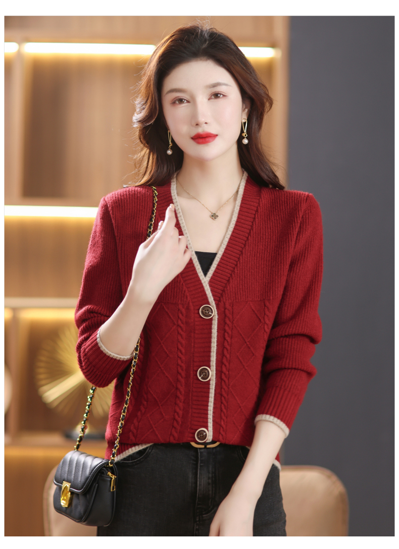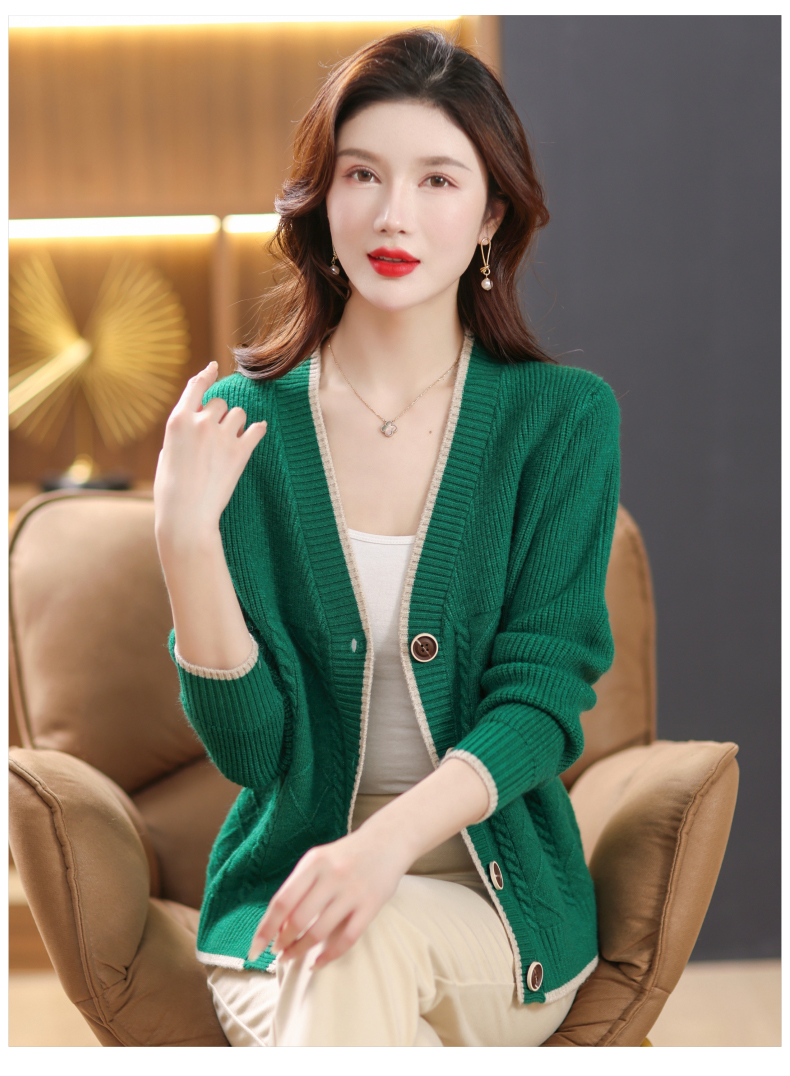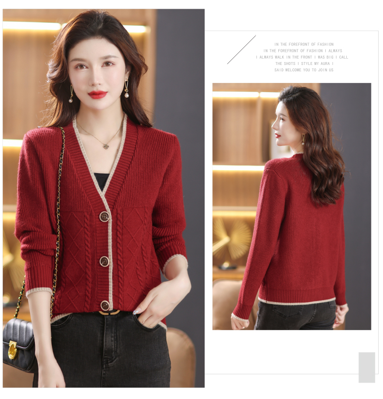 软糯风长袖毛衣女春秋,V领针织开衫外套短款单排扣外穿上衣CC-101-16892