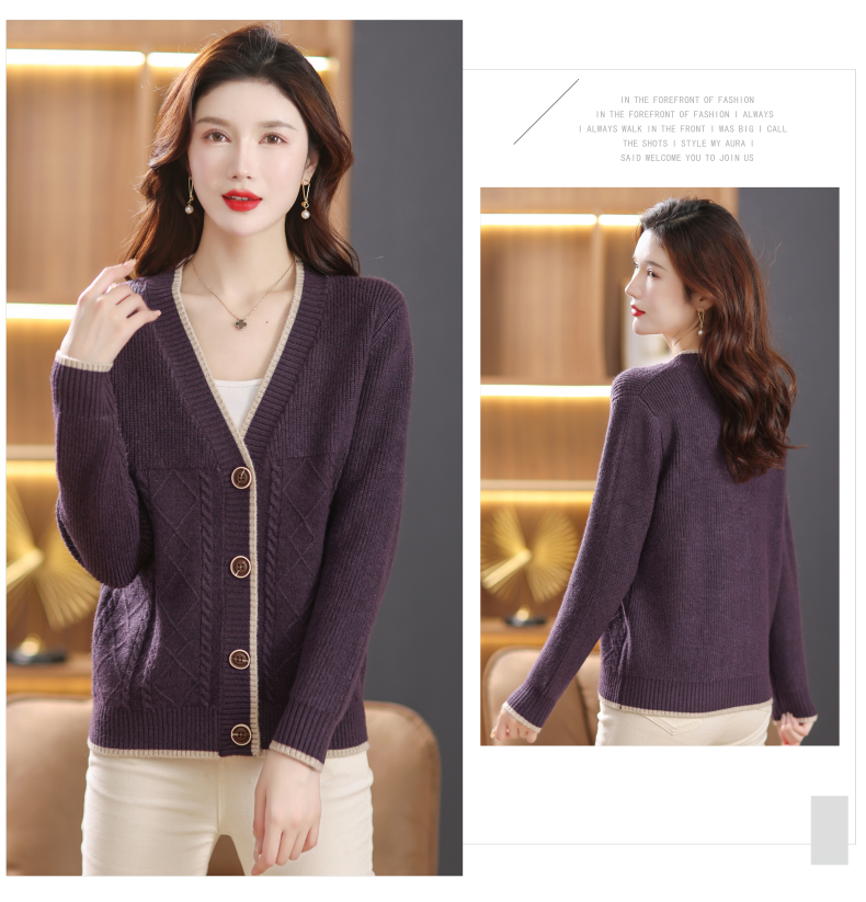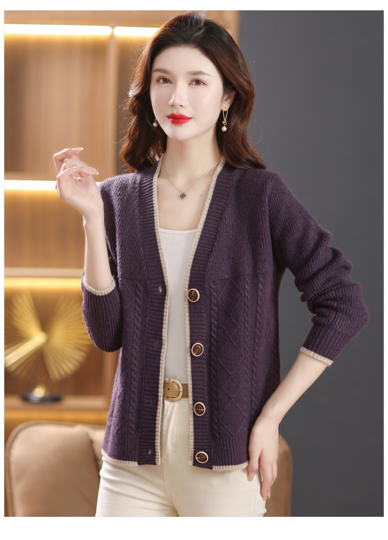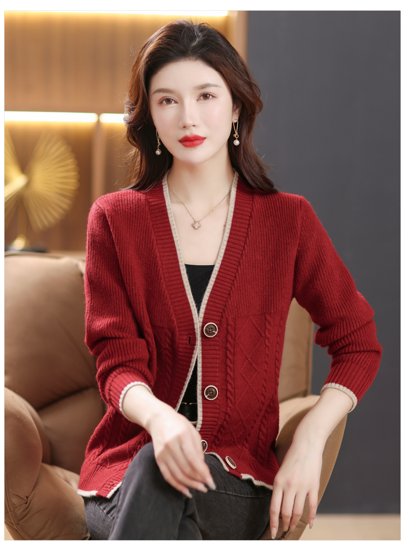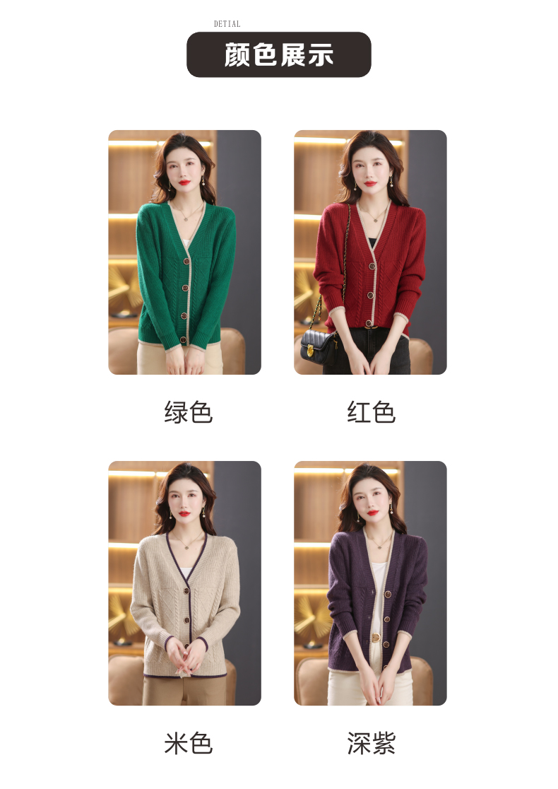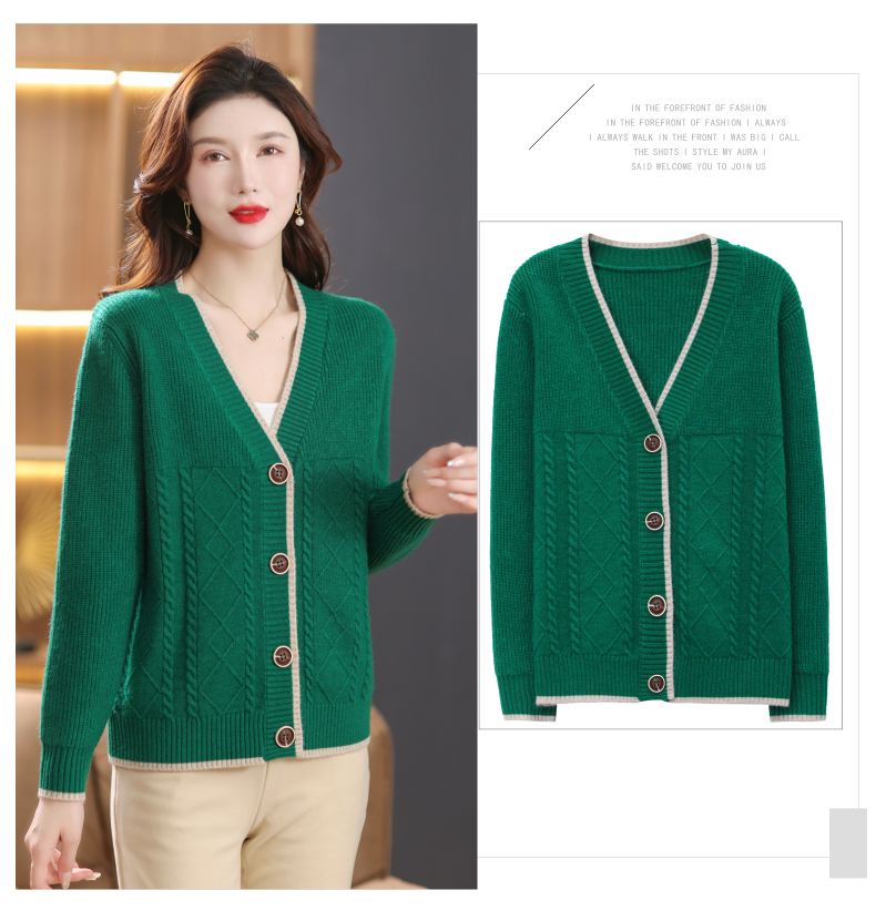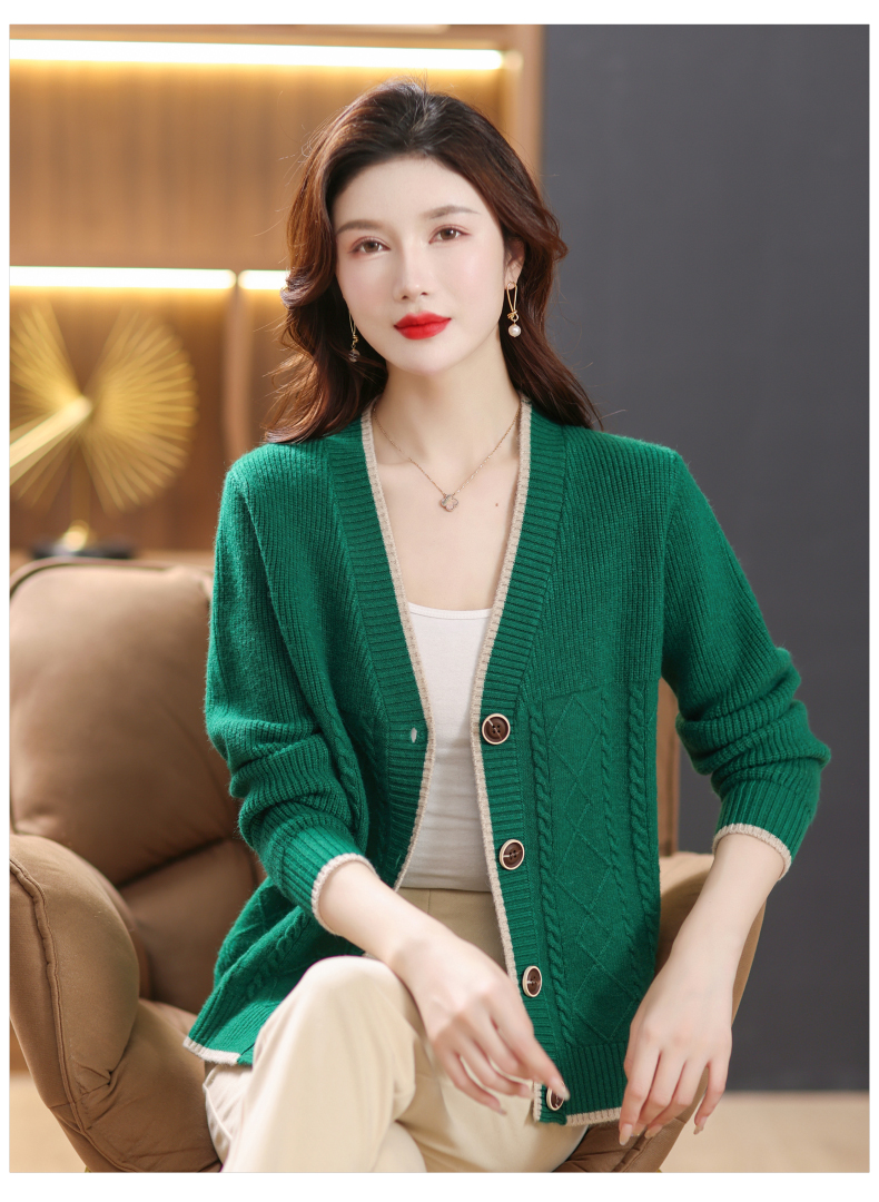 软糯风长袖毛衣女春秋,V领针织开衫外套短款单排扣外穿上衣CC-101-16892