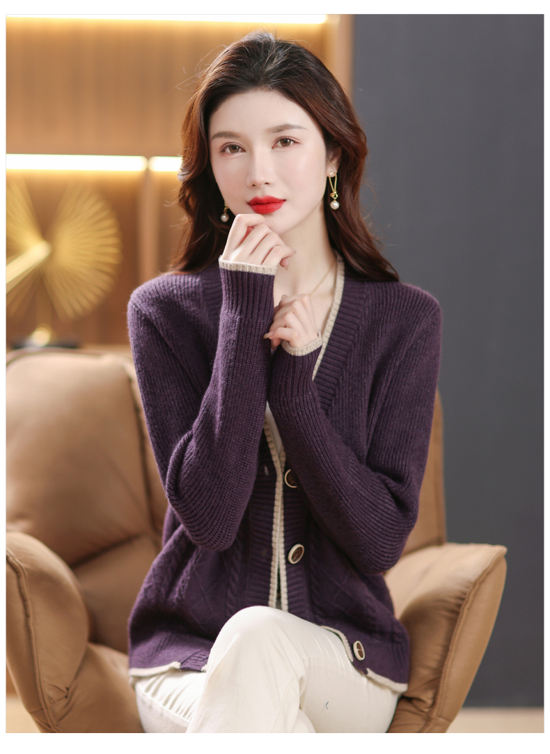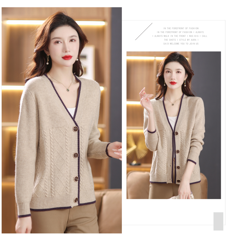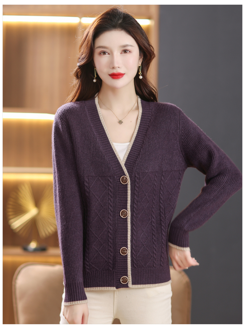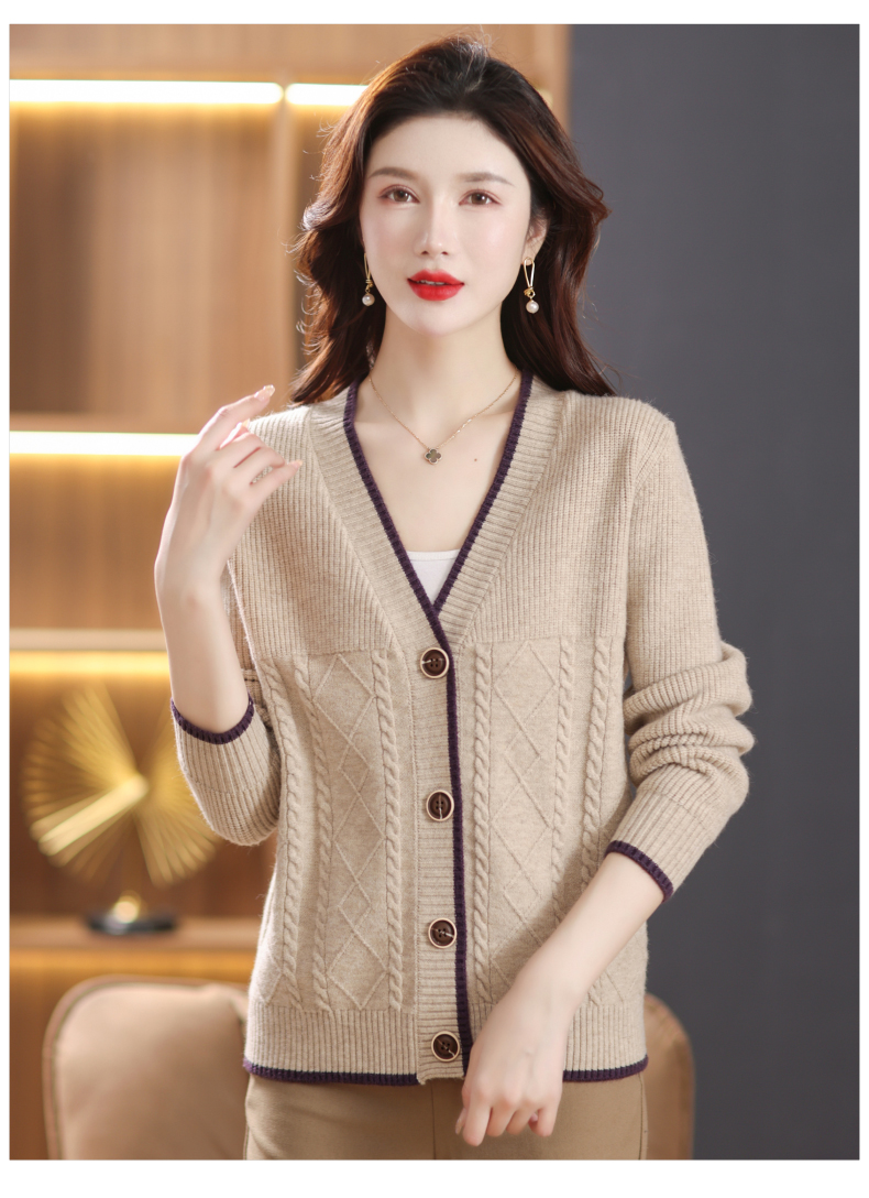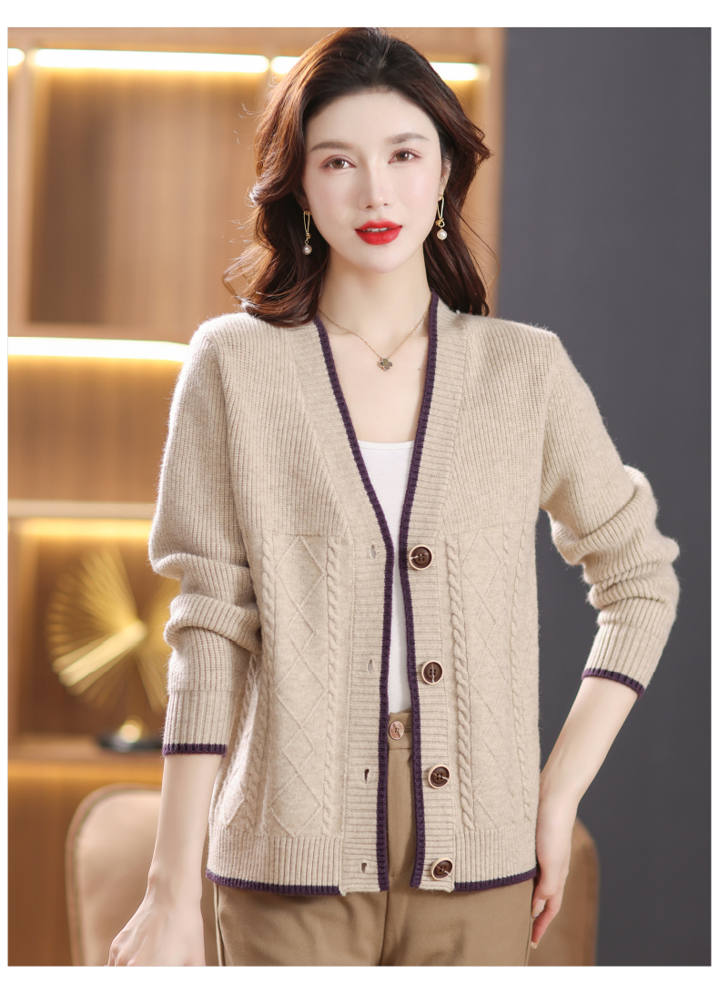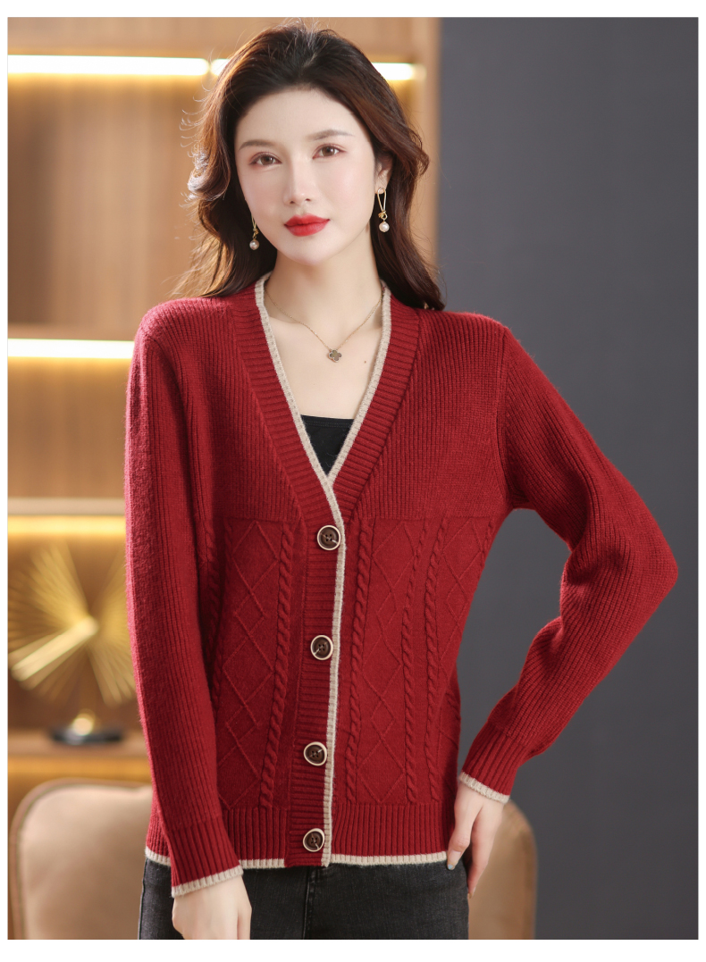 软糯风长袖毛衣女春秋,V领针织开衫外套短款单排扣外穿上衣CC-101-16892