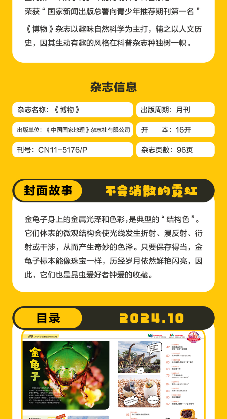博物杂志 2024年10月刊 金龟子 精美大拉页 博物大学 青少年科普杂志