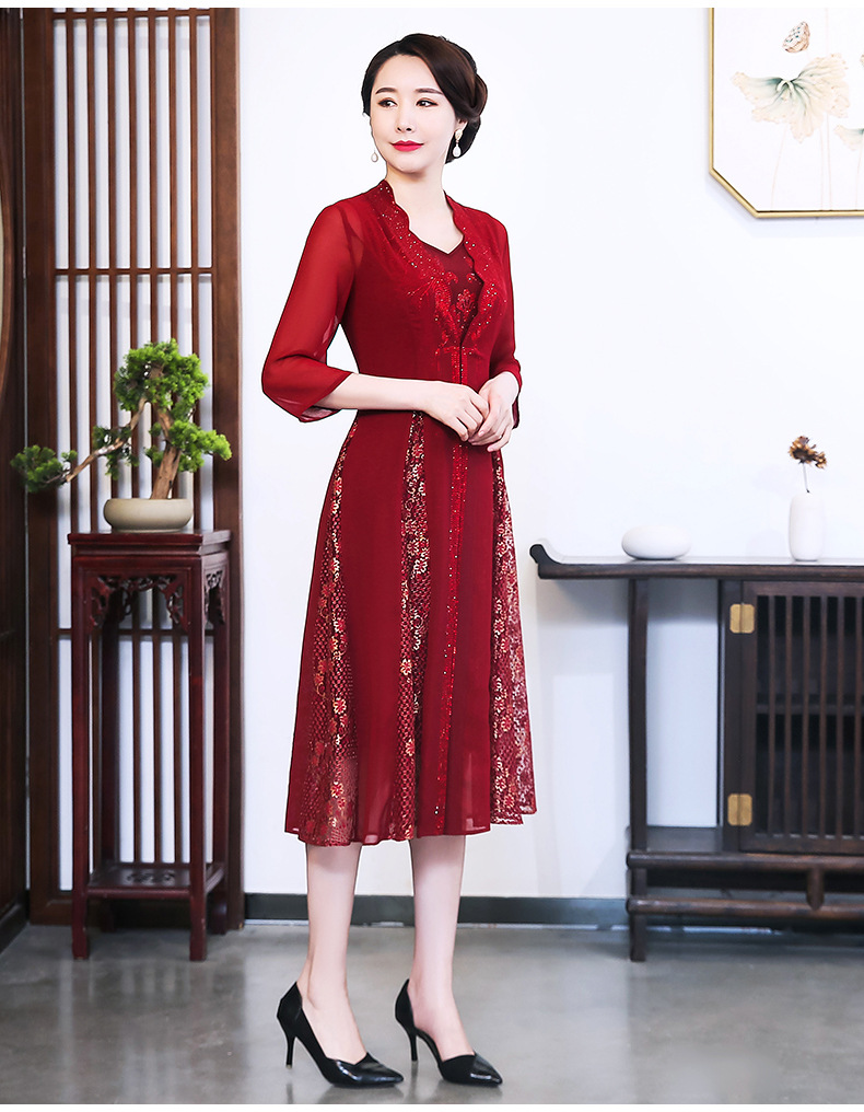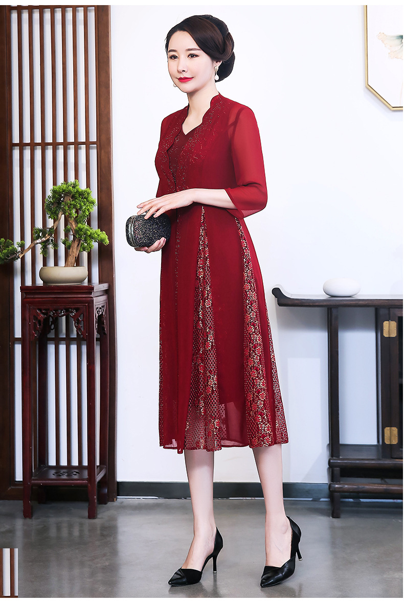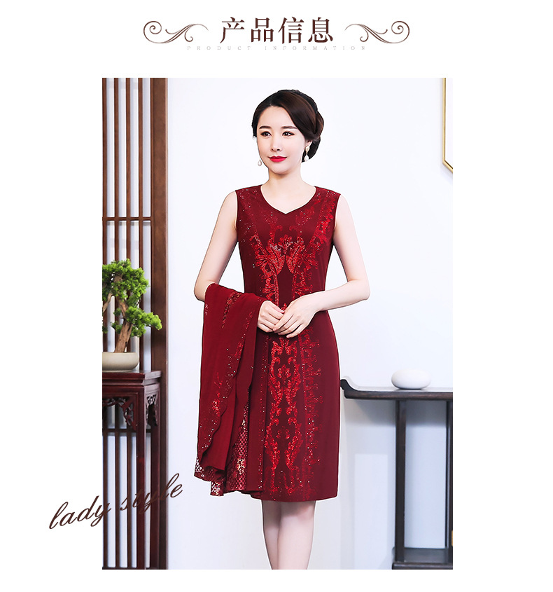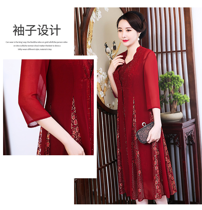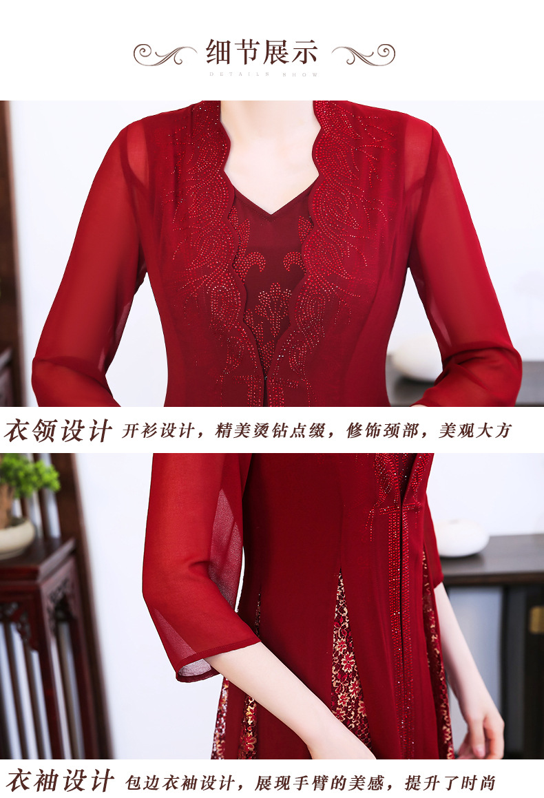 MY-80376新款妈妈装外套烫钻绣花婚宴长款两件套
